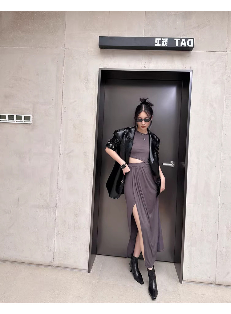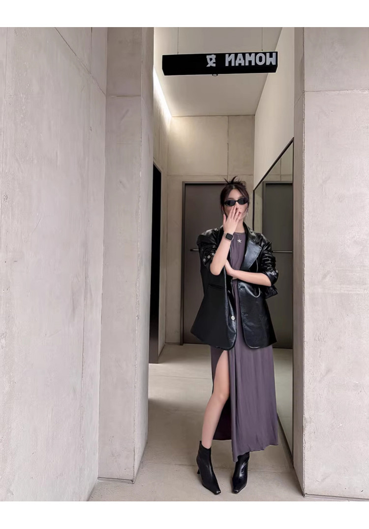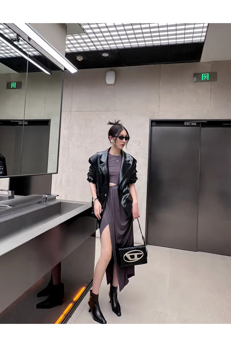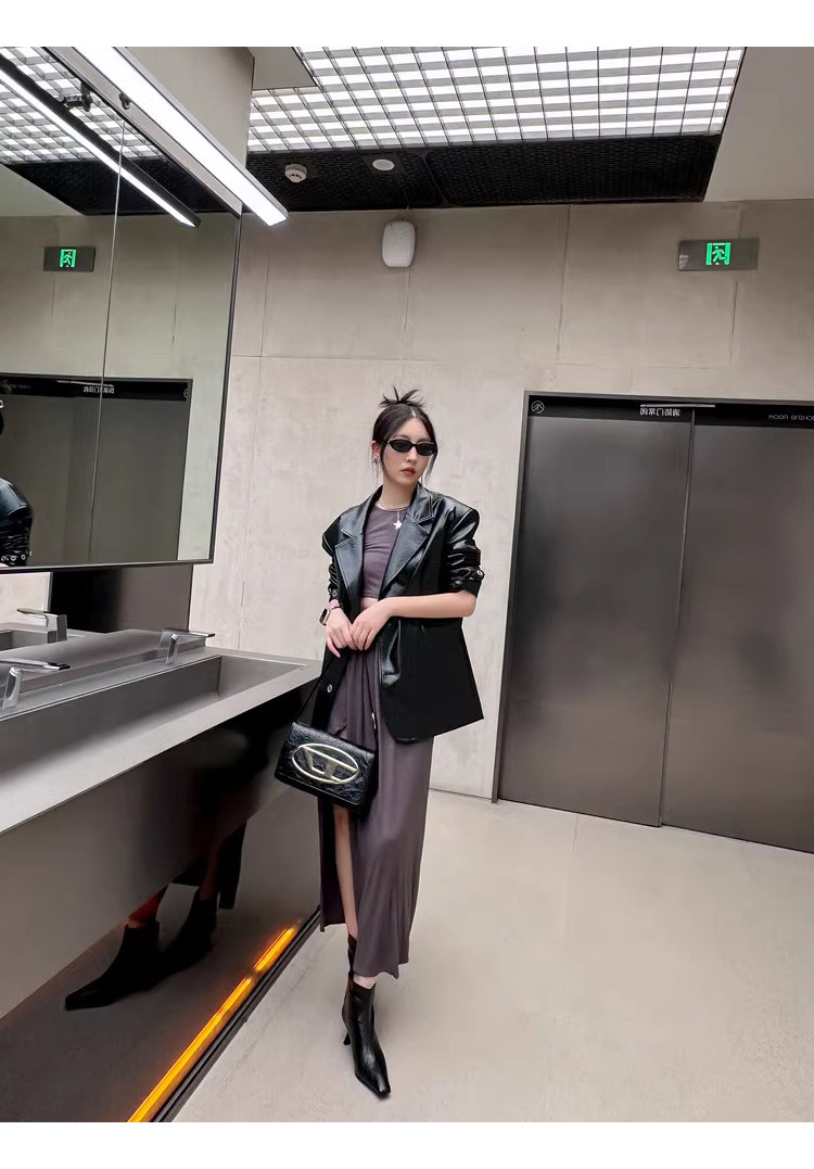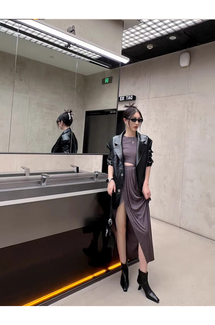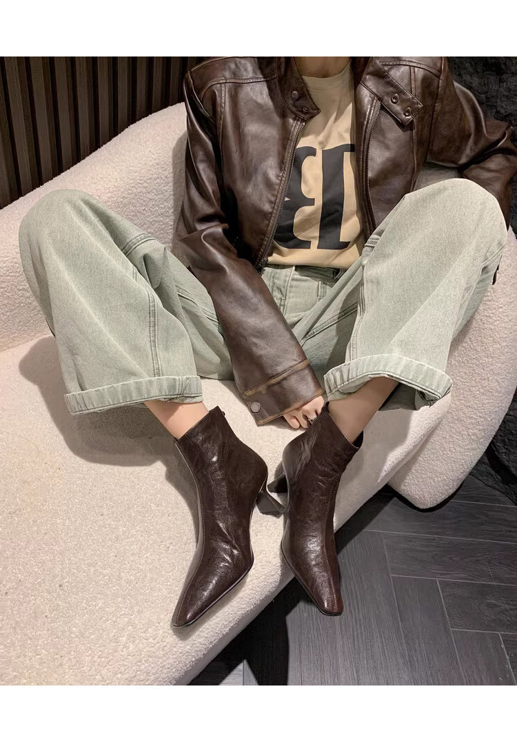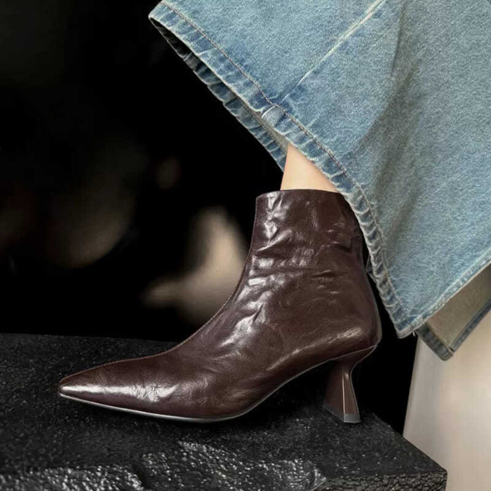 牛皮版~秋冬新款褶皺方頭瘦瘦靴細跟高跟真皮裸靴後拉鍊短靴女