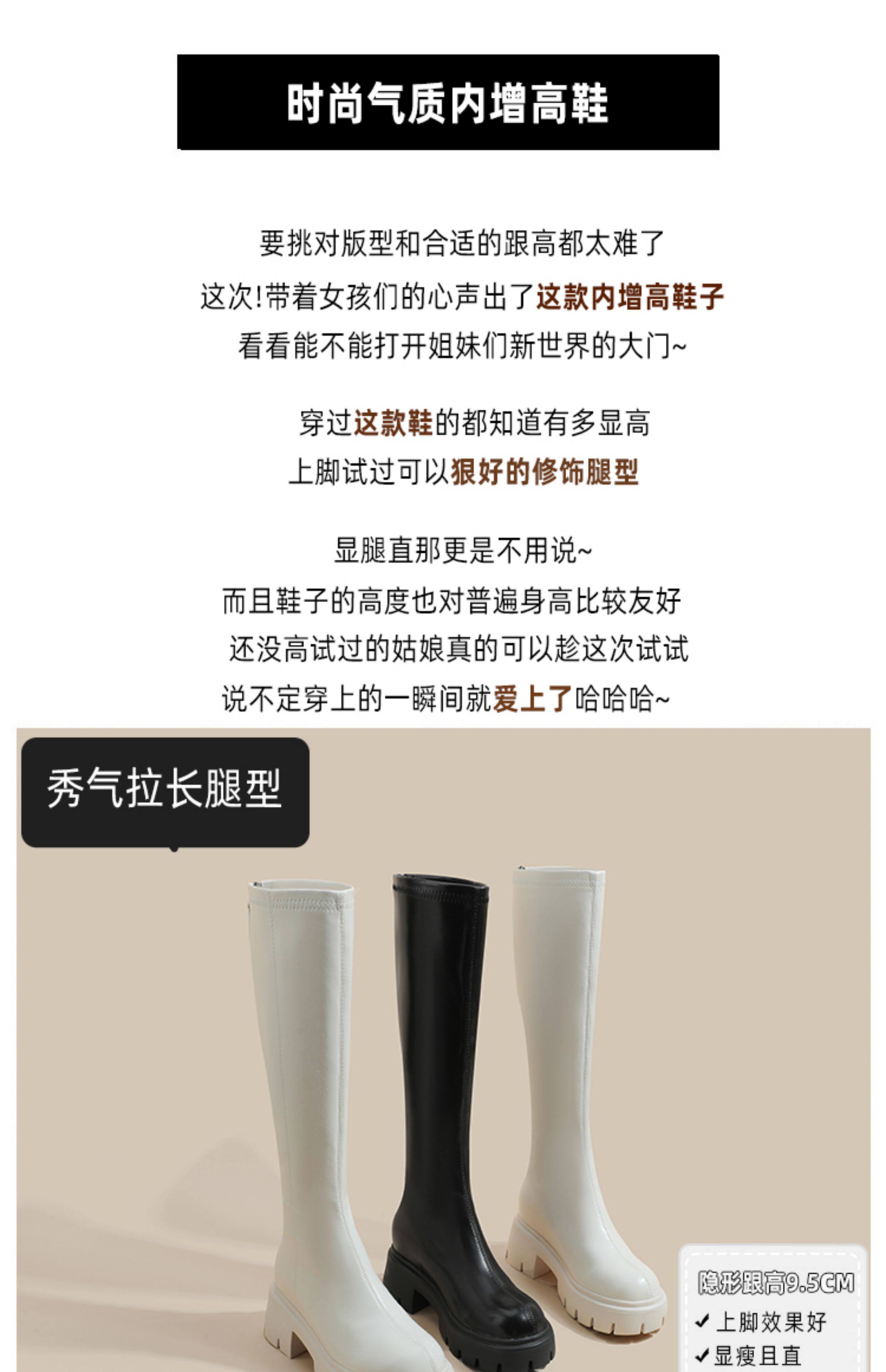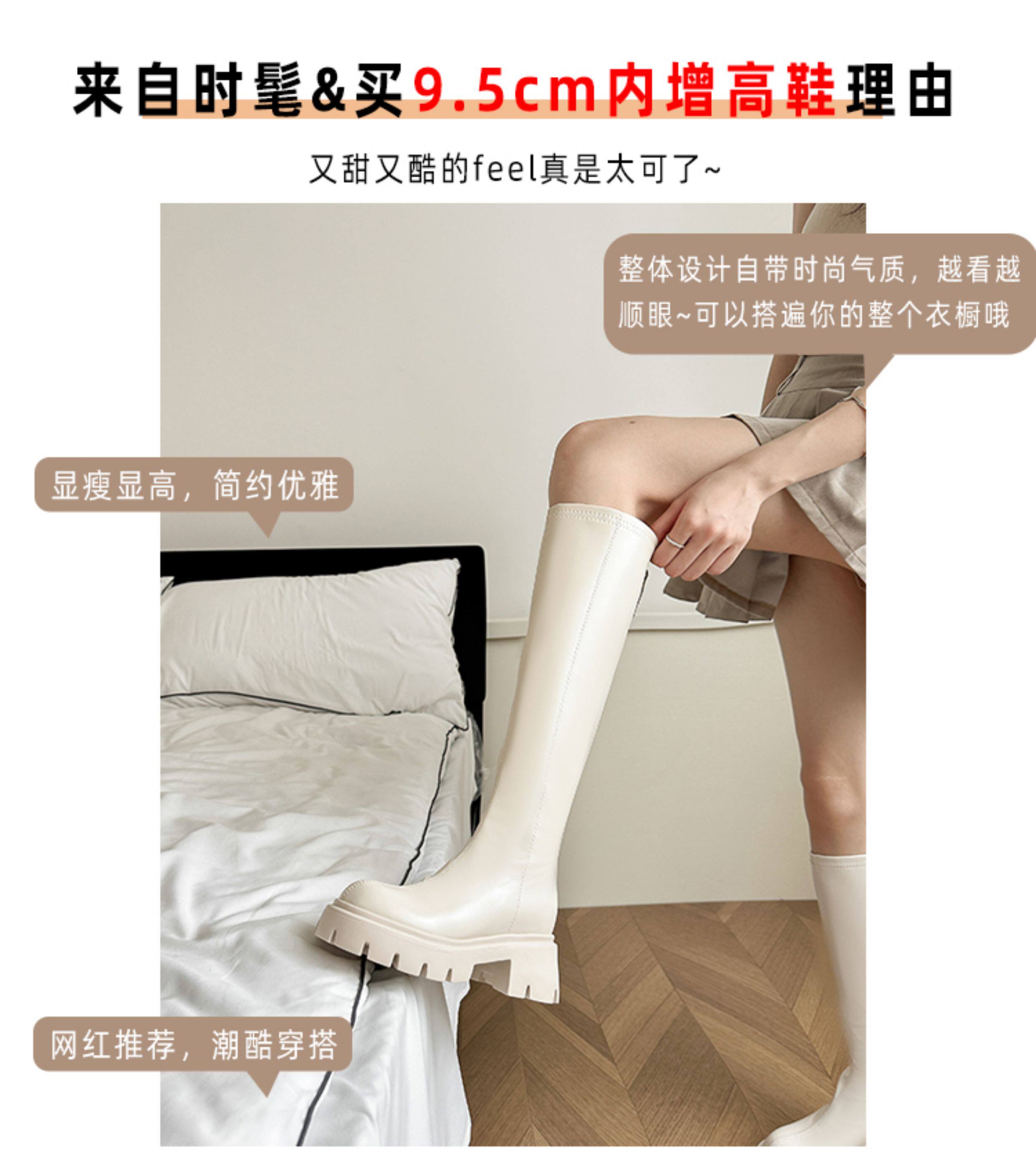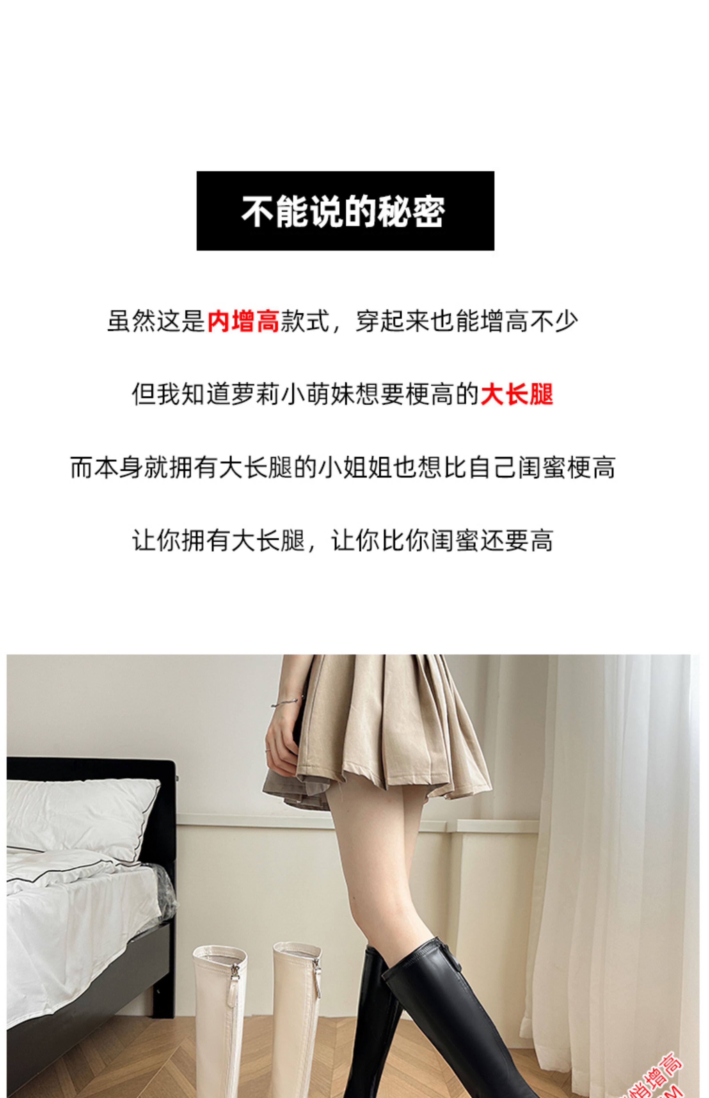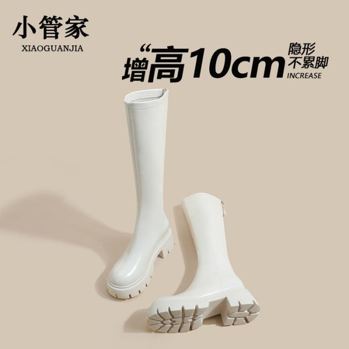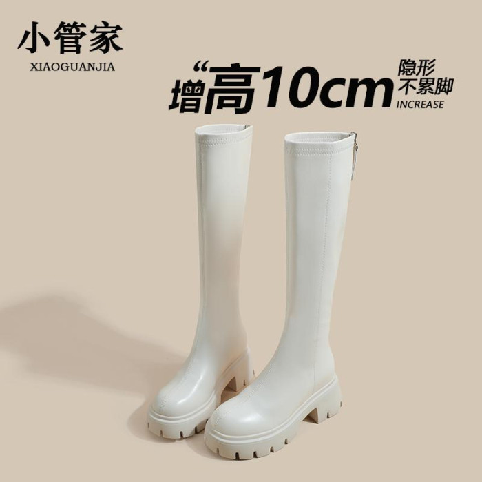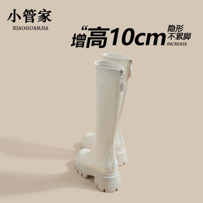 秋冬季白色靴子女騎士靴不過膝長筒靴高跟小個子內增高後拉鍊長靴