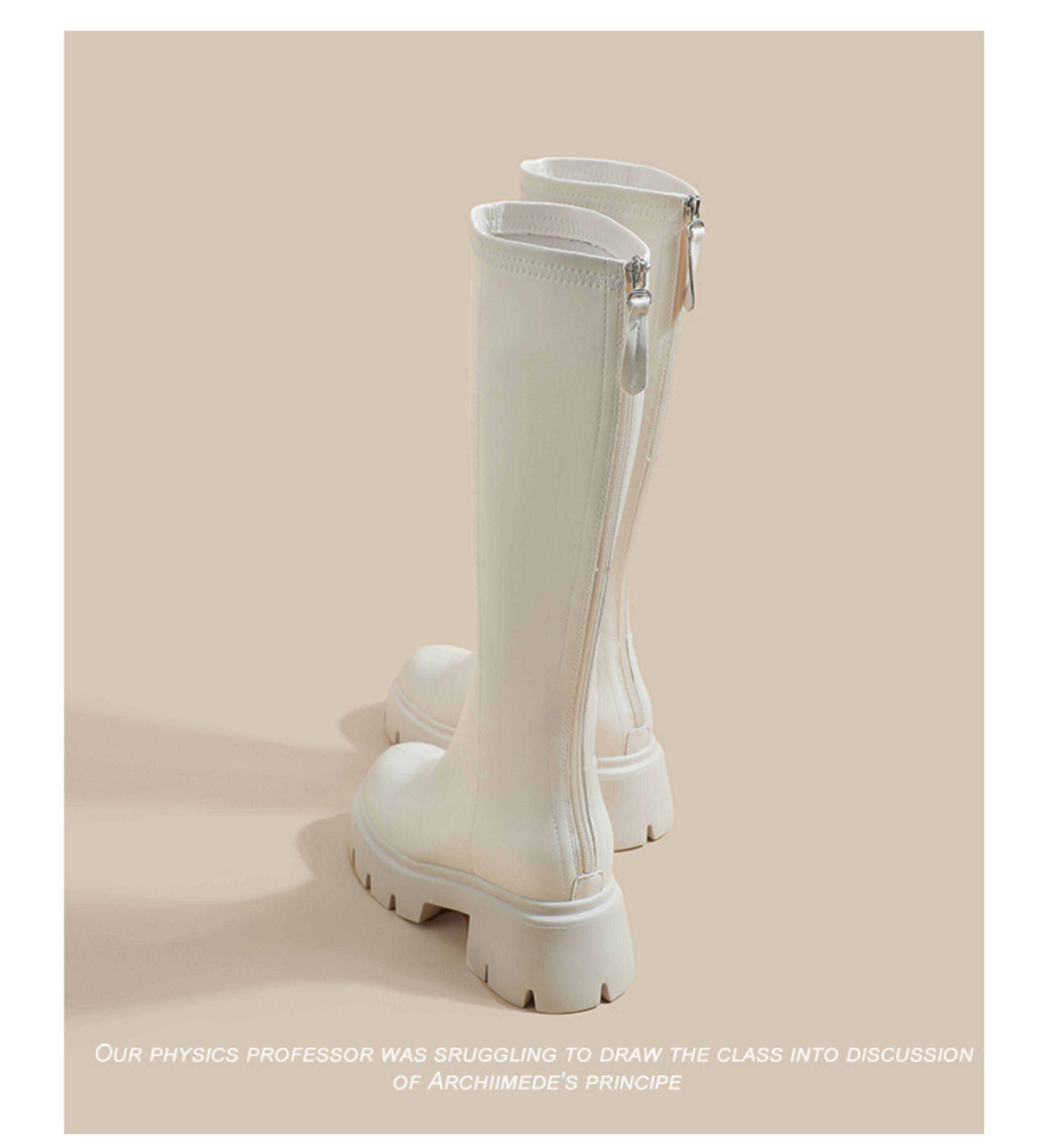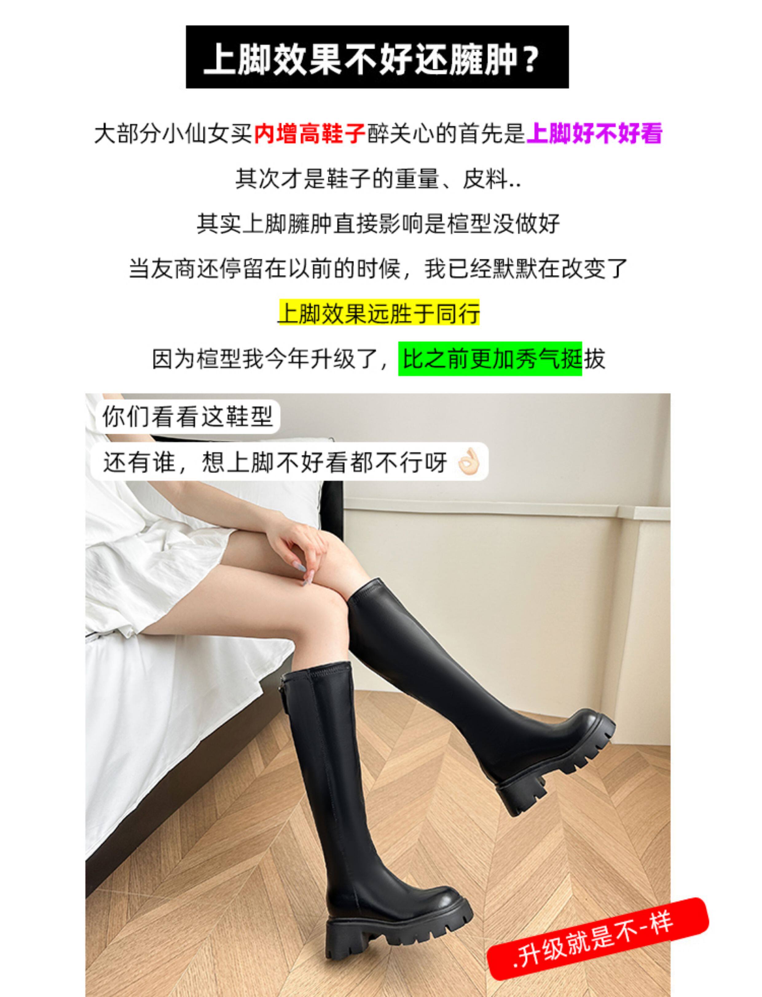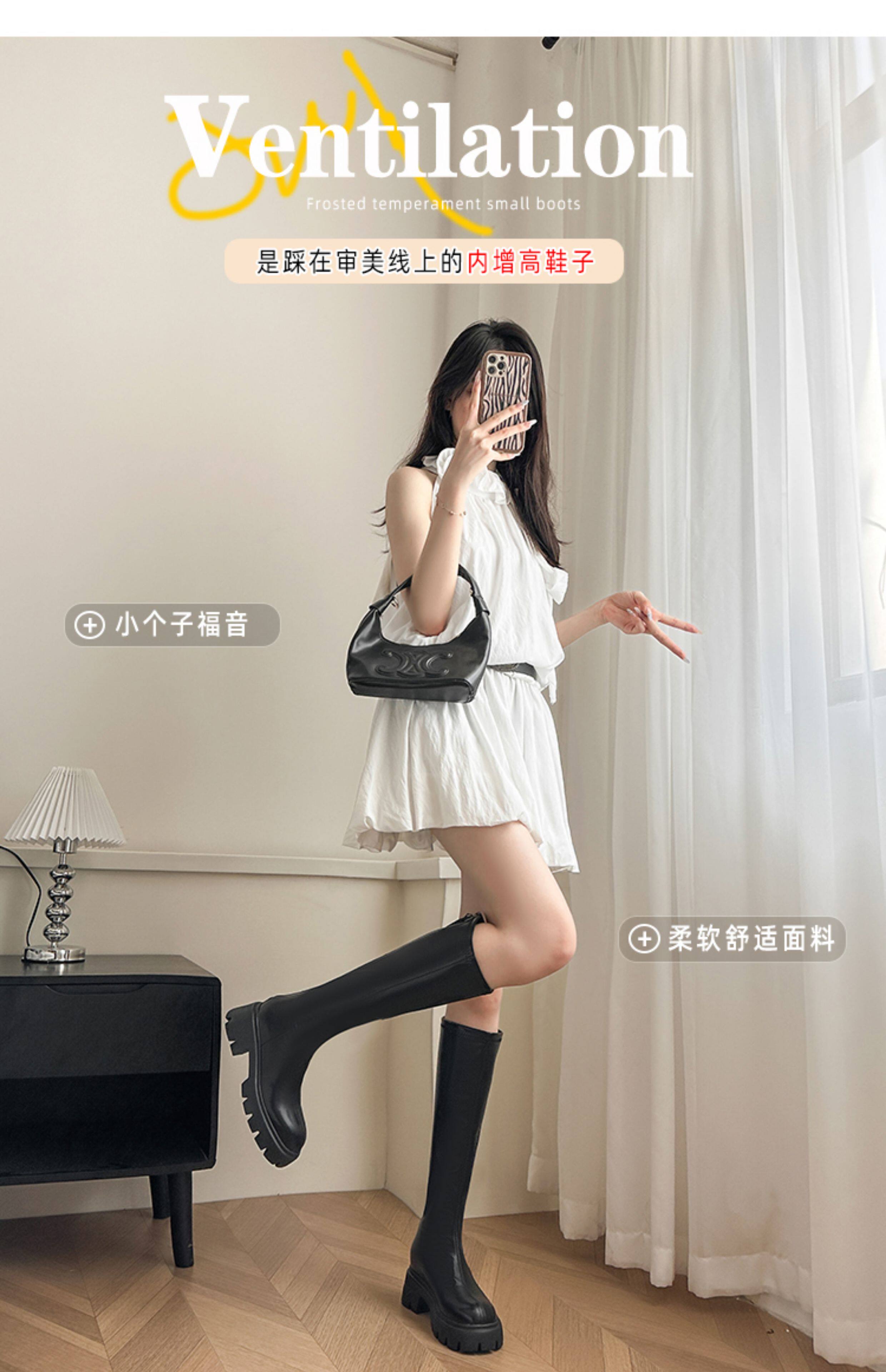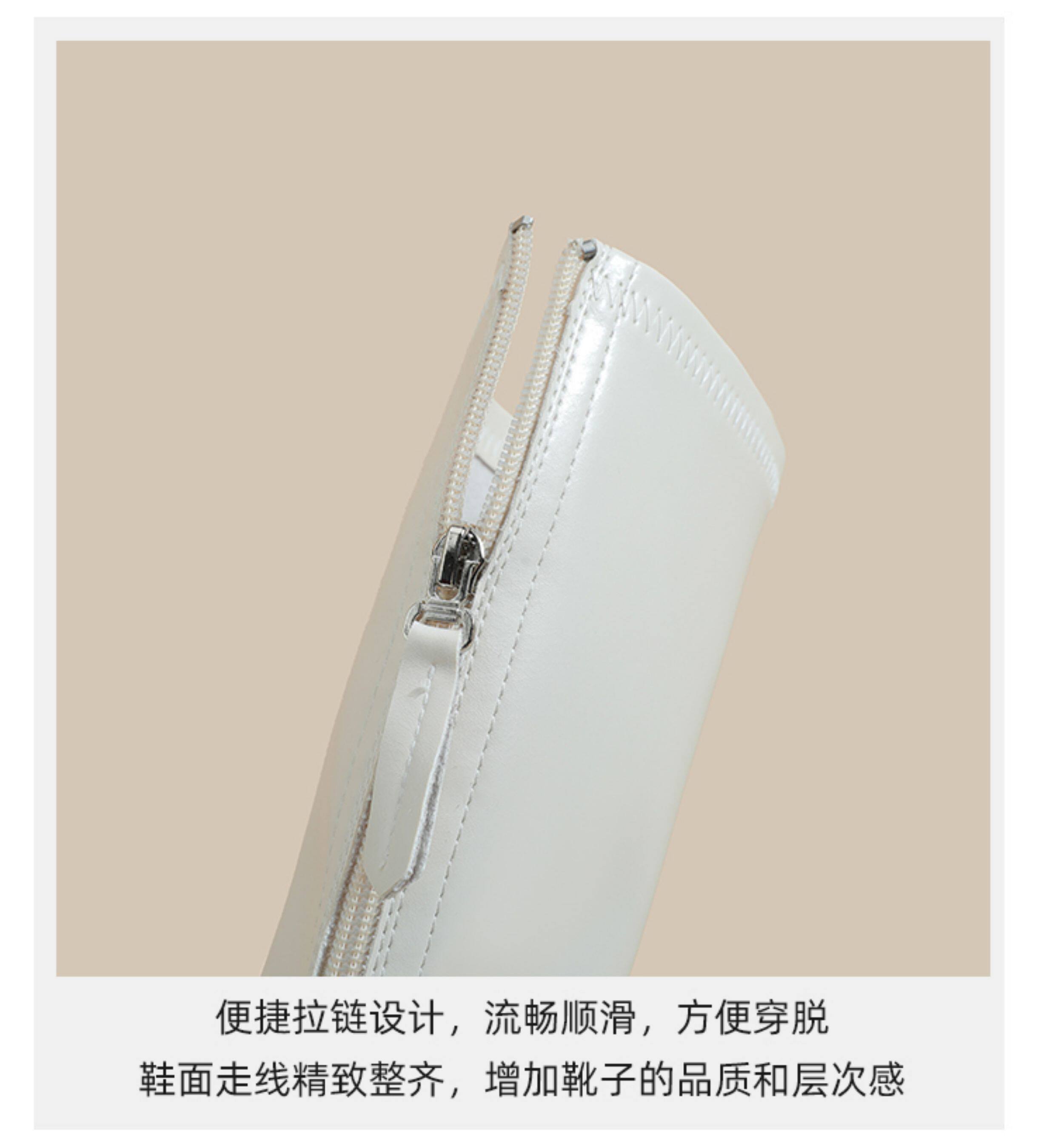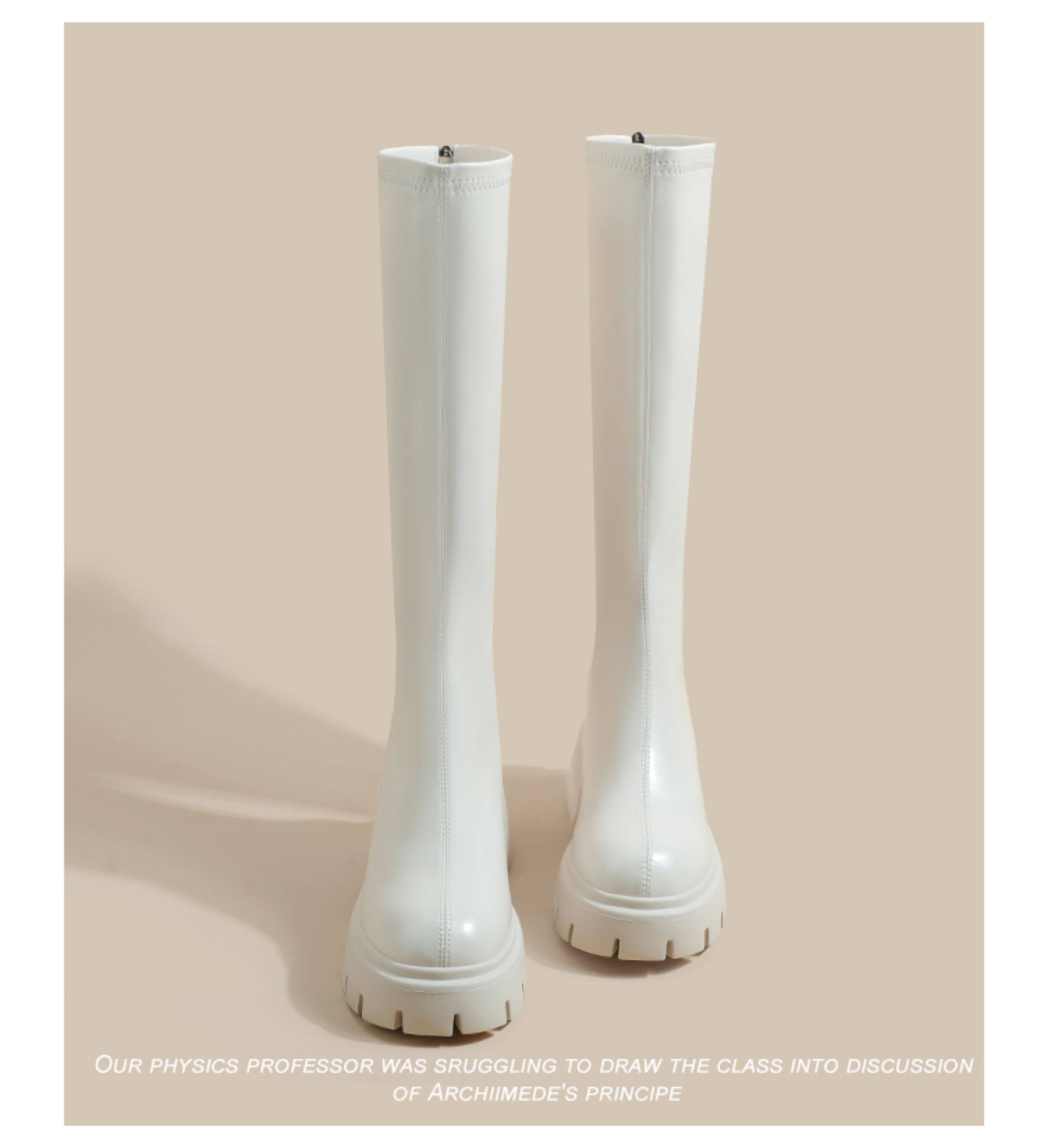 秋冬季白色靴子女騎士靴不過膝長筒靴高跟小個子內增高後拉鍊長靴