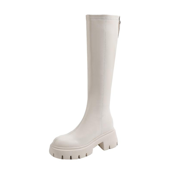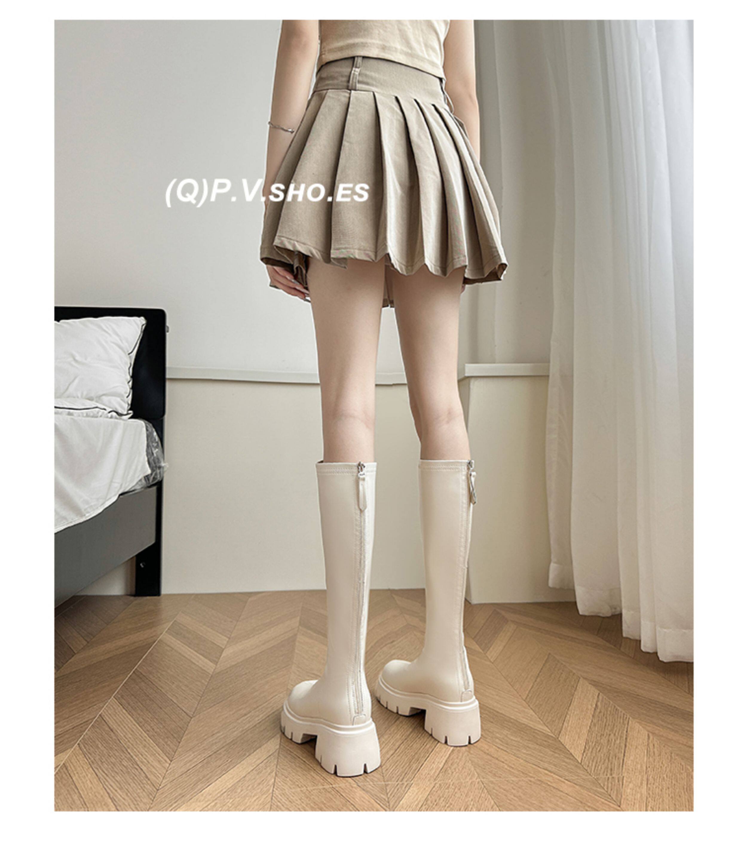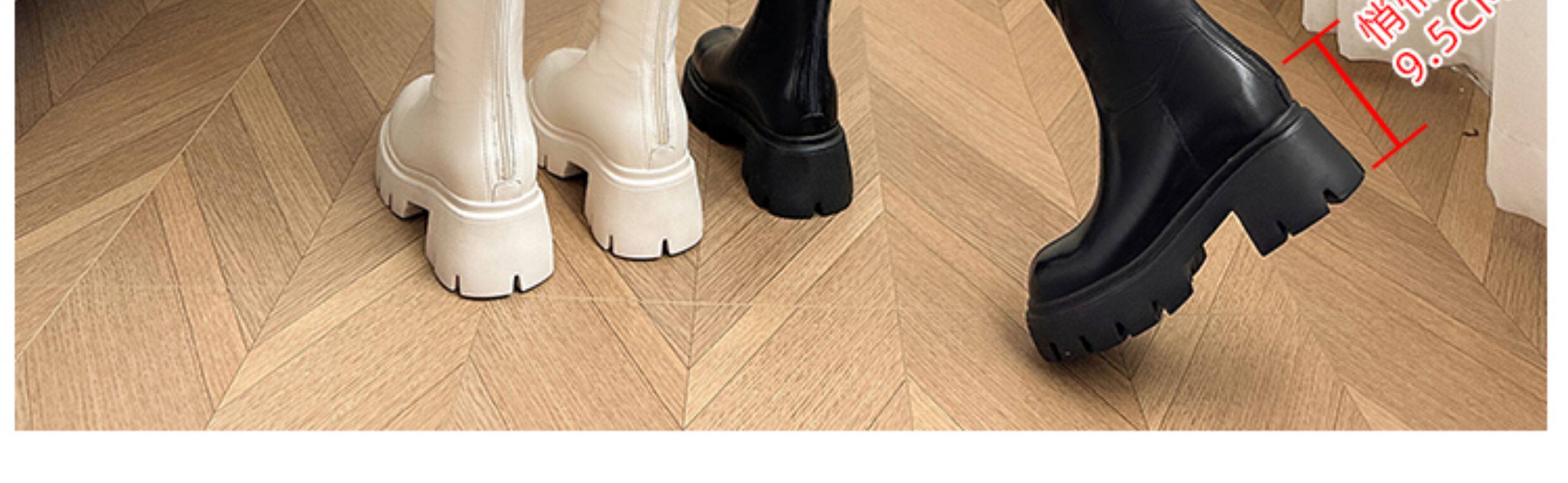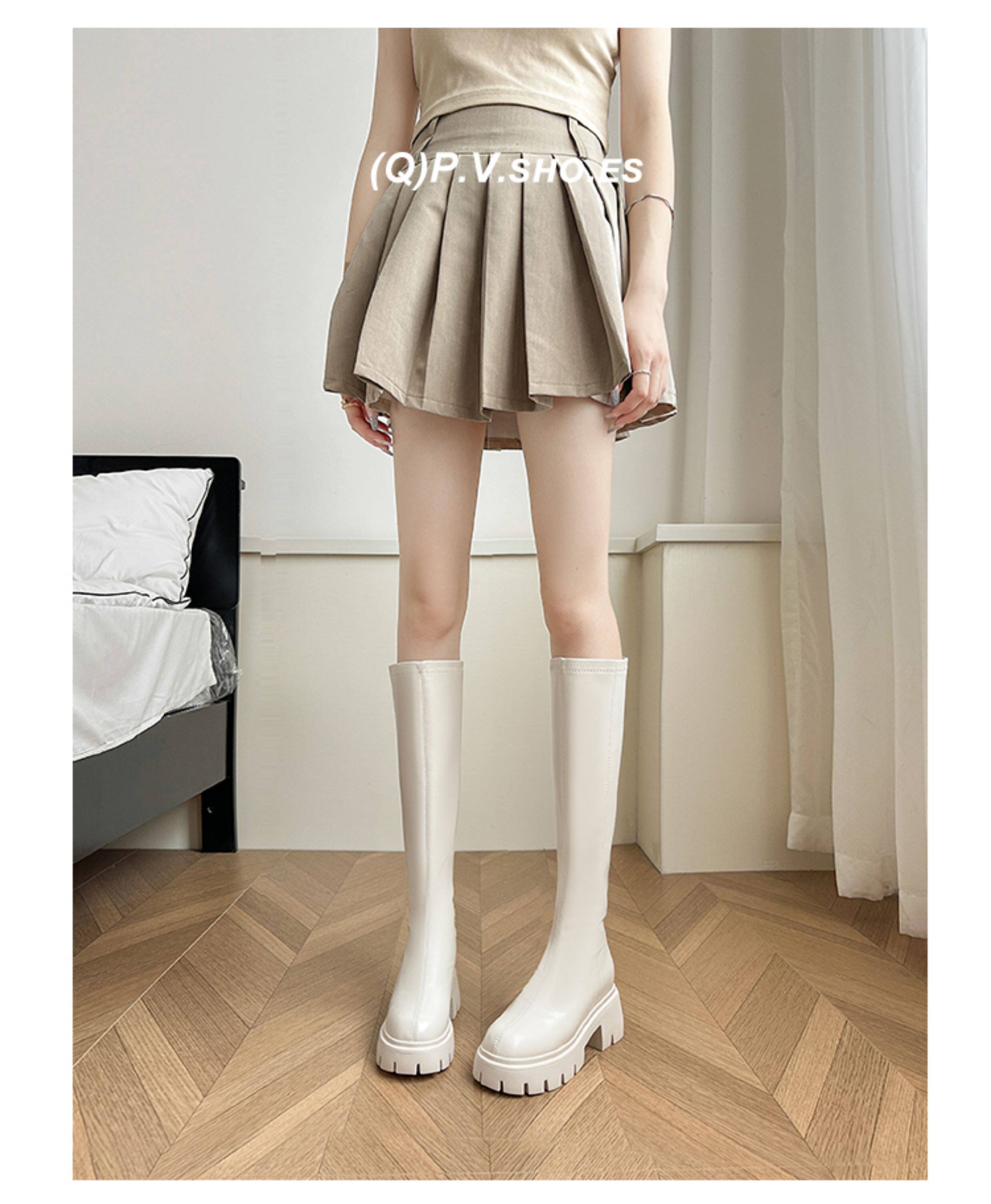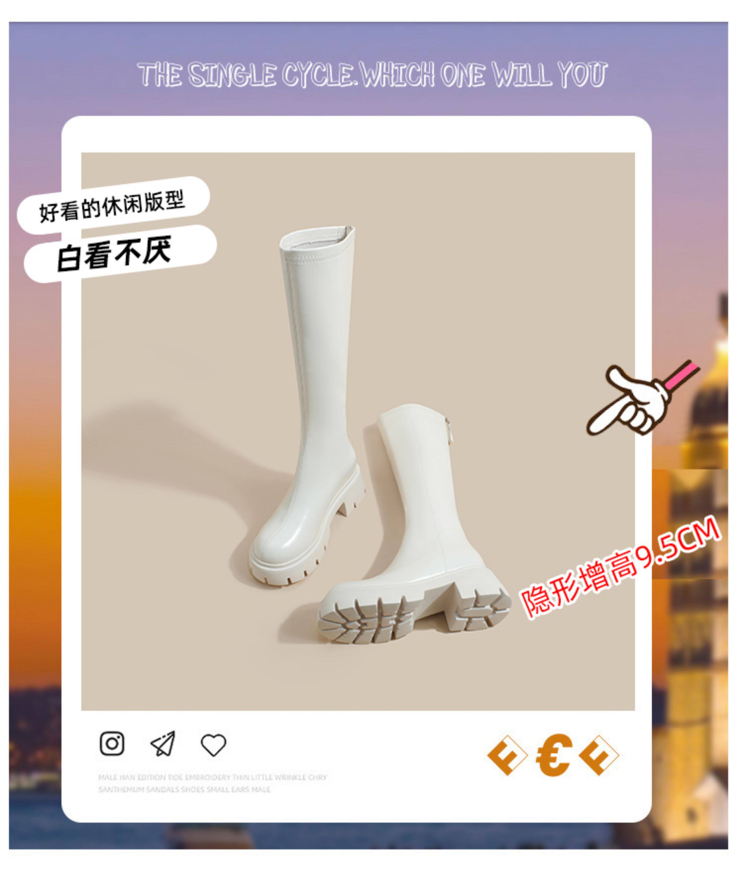 秋冬季白色靴子女騎士靴不過膝長筒靴高跟小個子內增高後拉鍊長靴