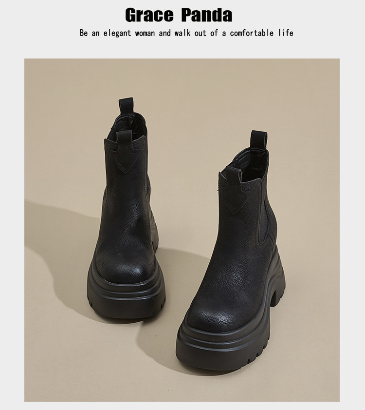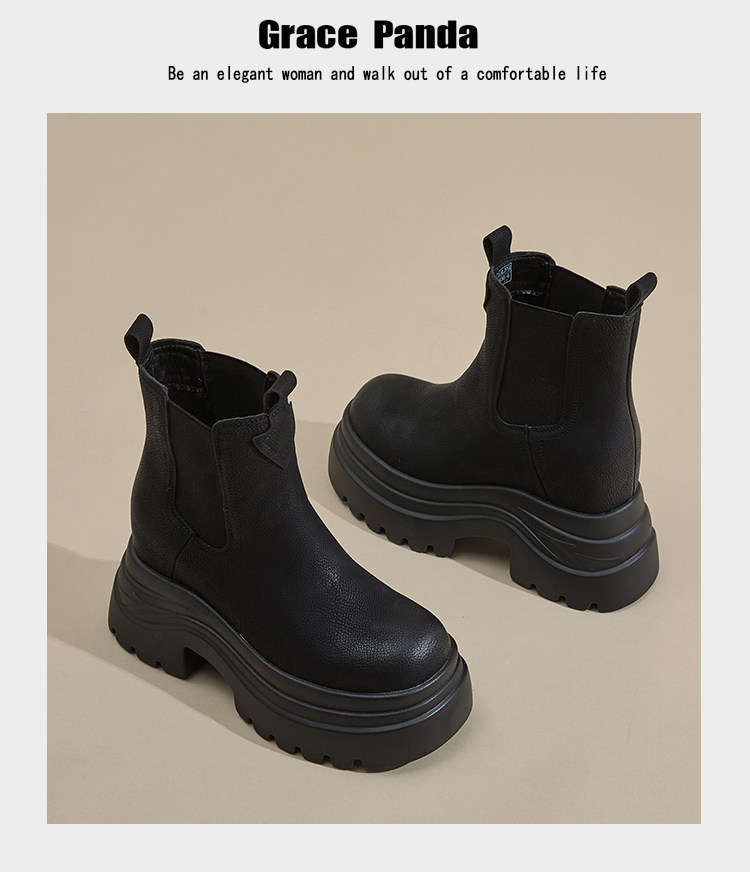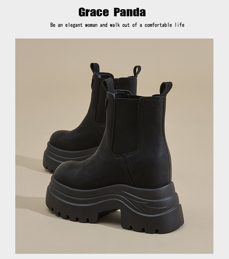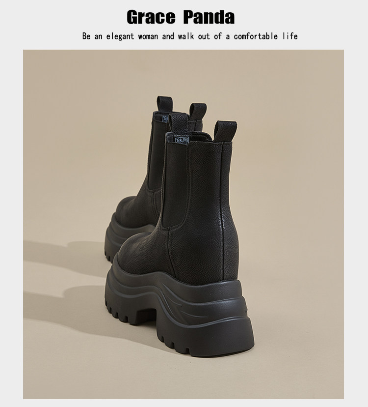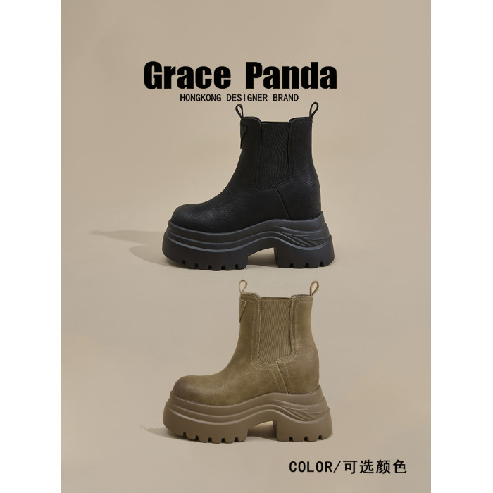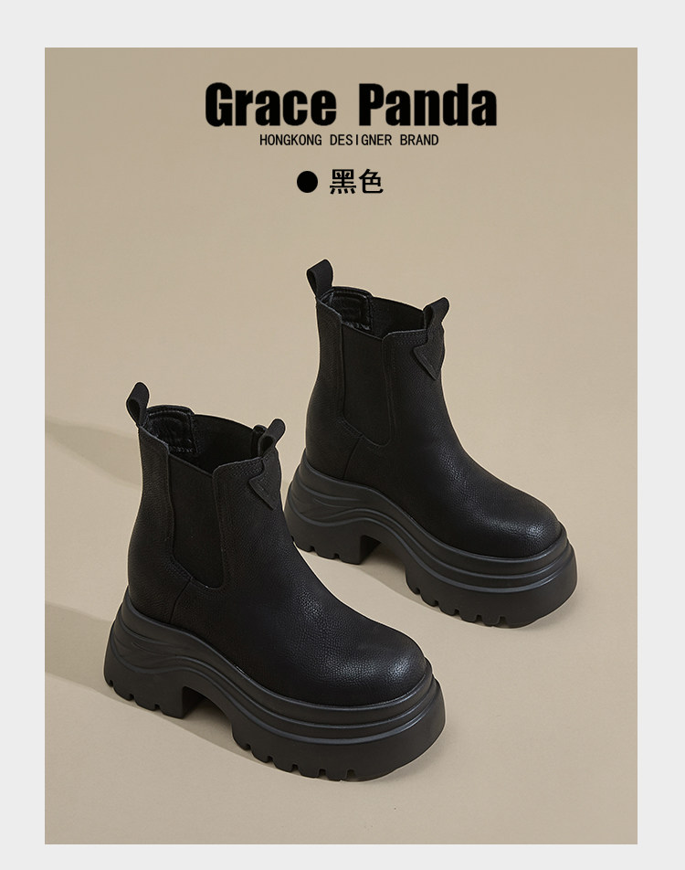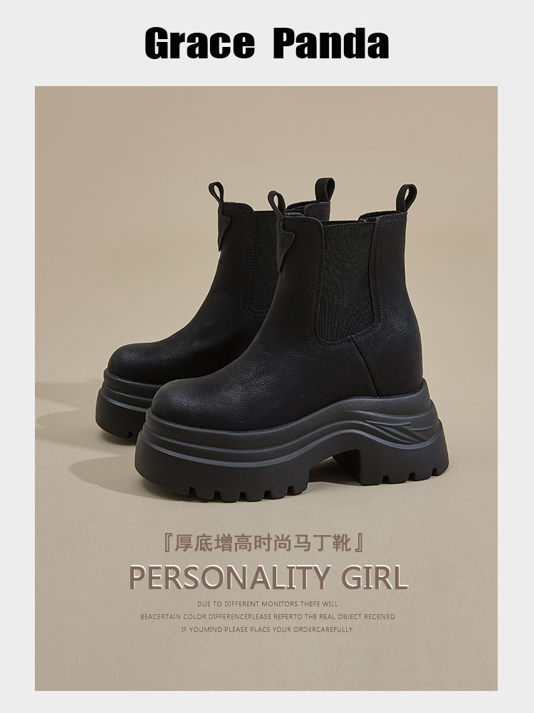 香港GP2025新款秋冬矮個子內增高9CM馬丁靴真皮厚底機車短筒靴女