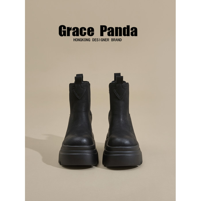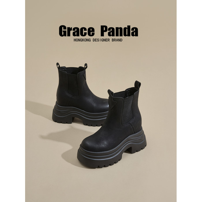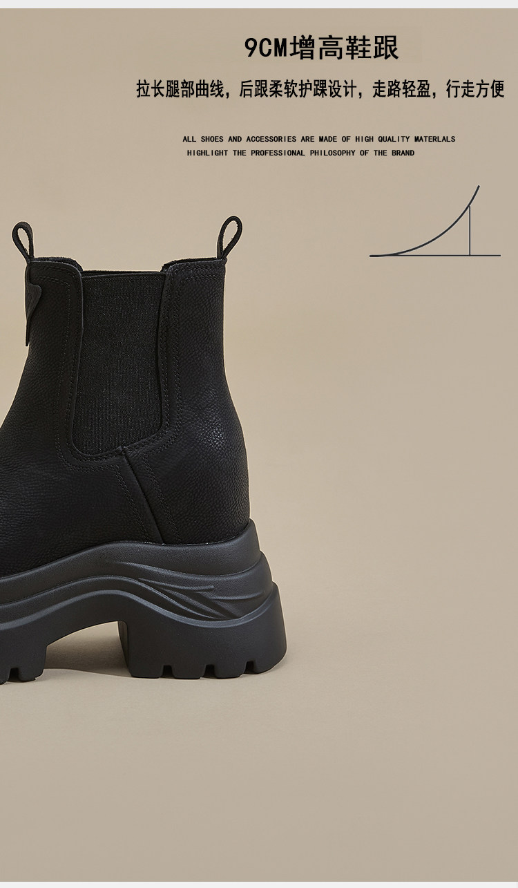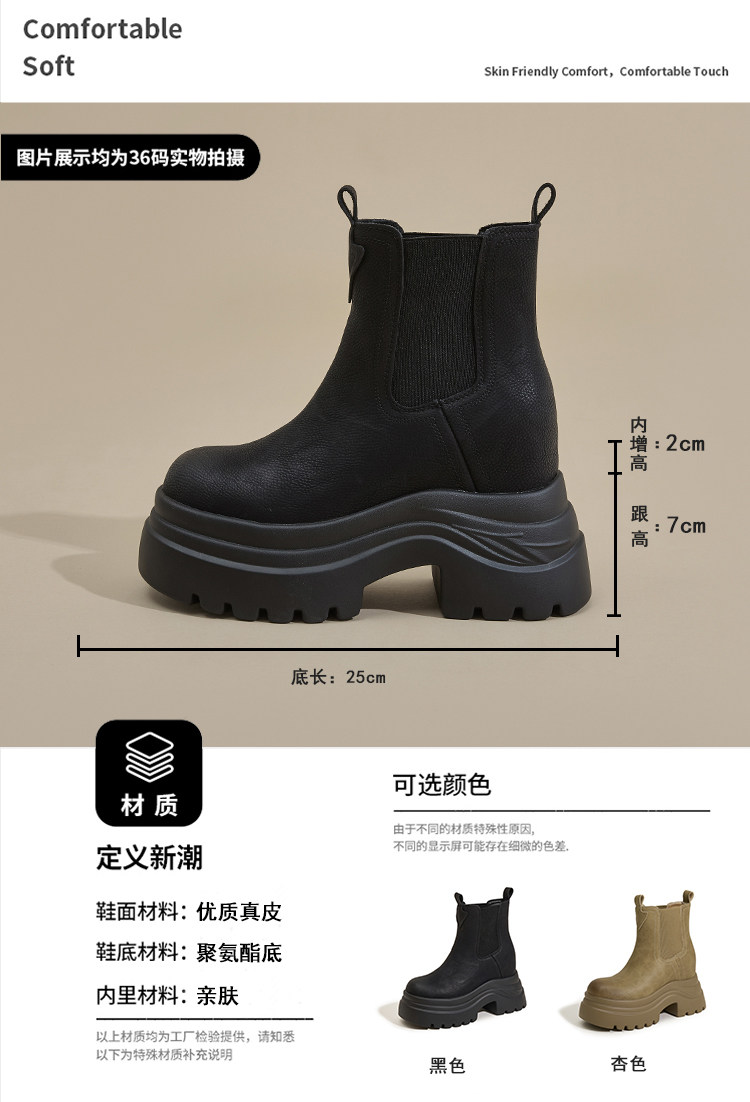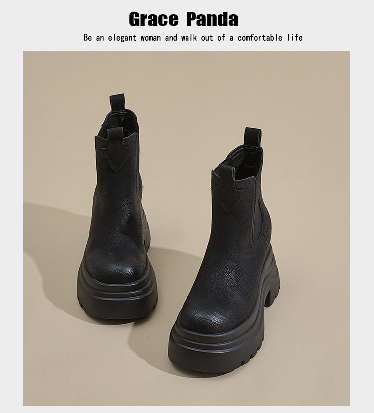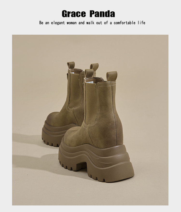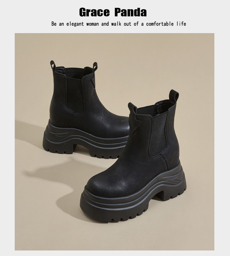香港GP2025新款秋冬矮個子內增高9CM馬丁靴真皮厚底機車短筒靴女