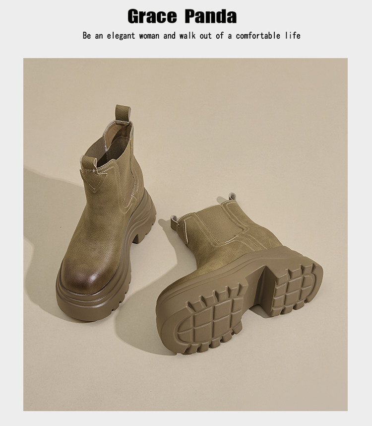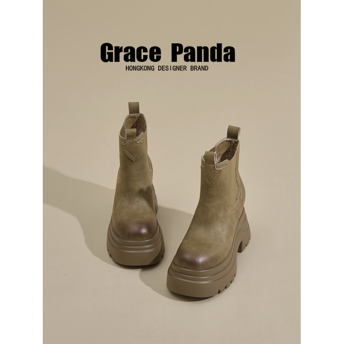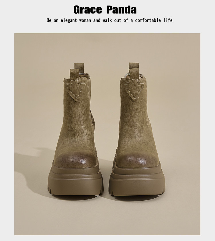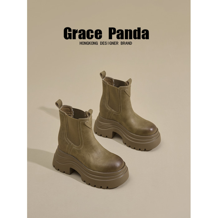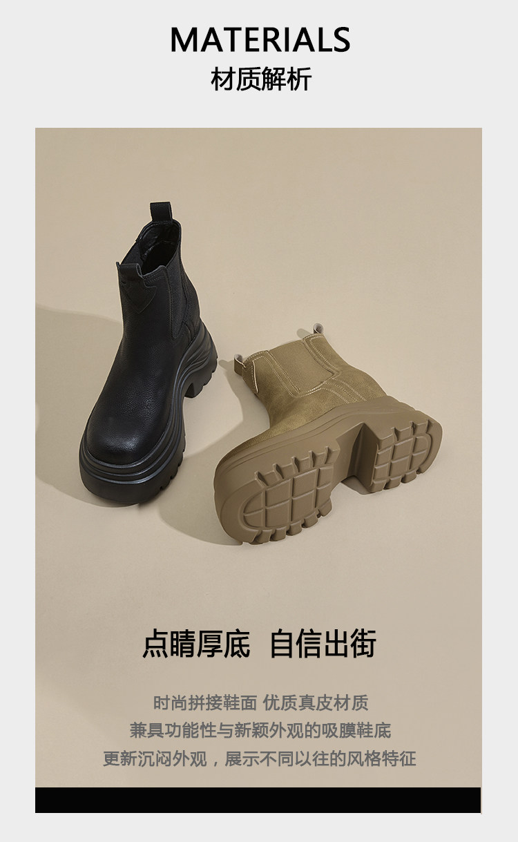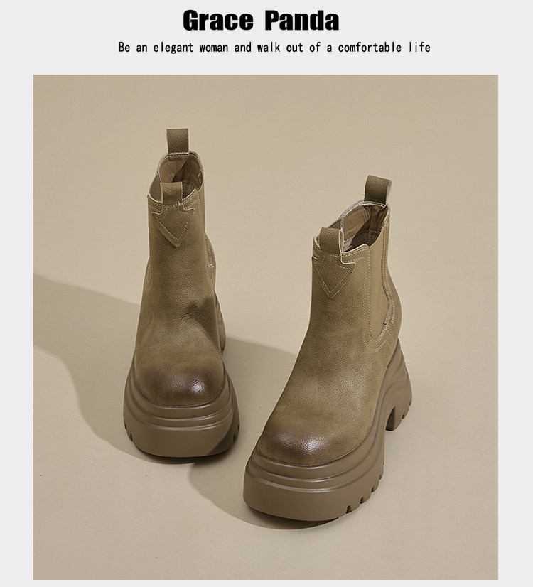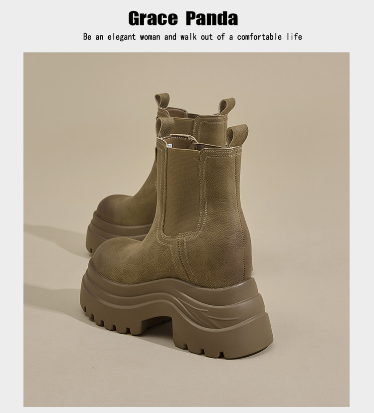 香港GP2025新款秋冬矮個子內增高9CM馬丁靴真皮厚底機車短筒靴女