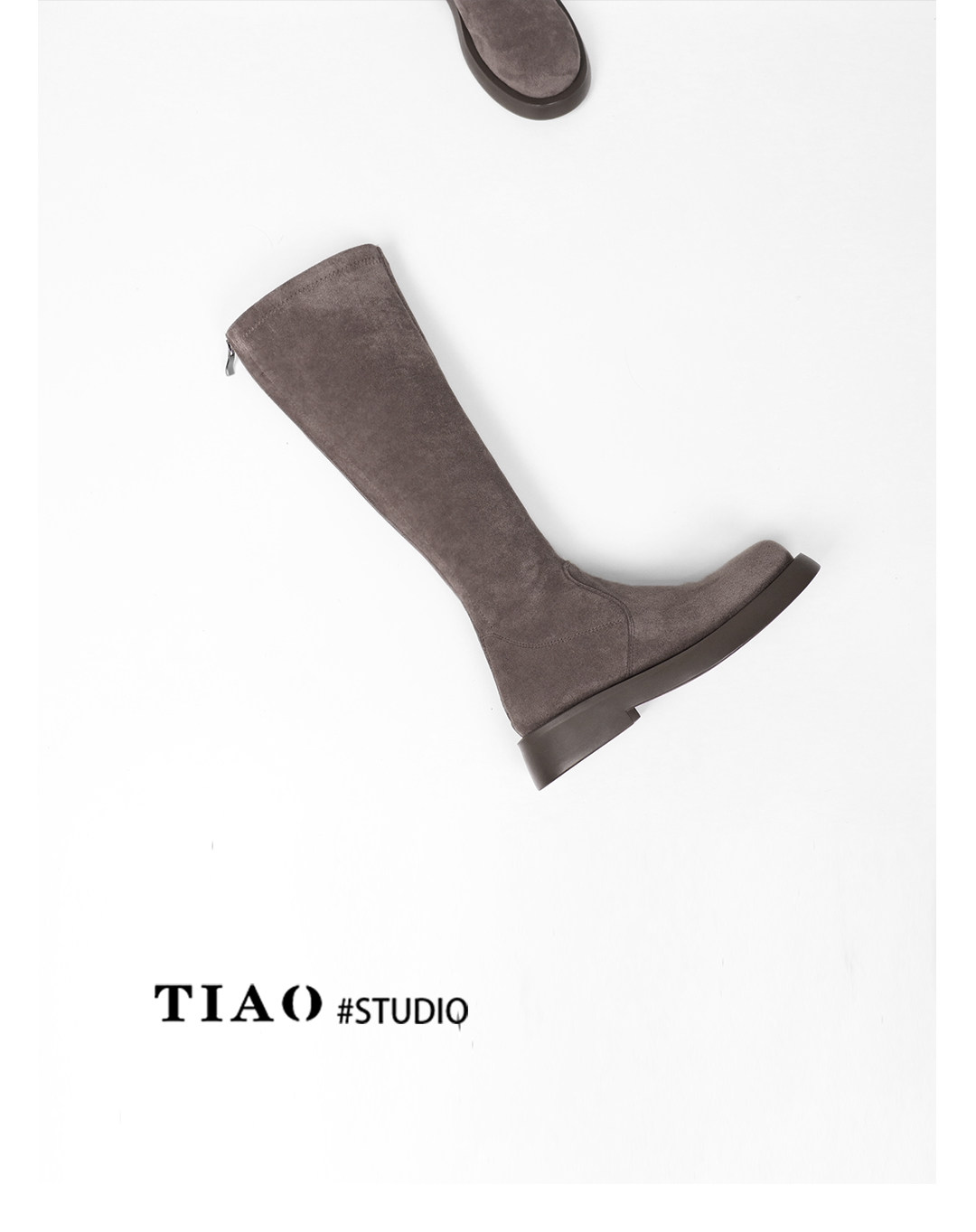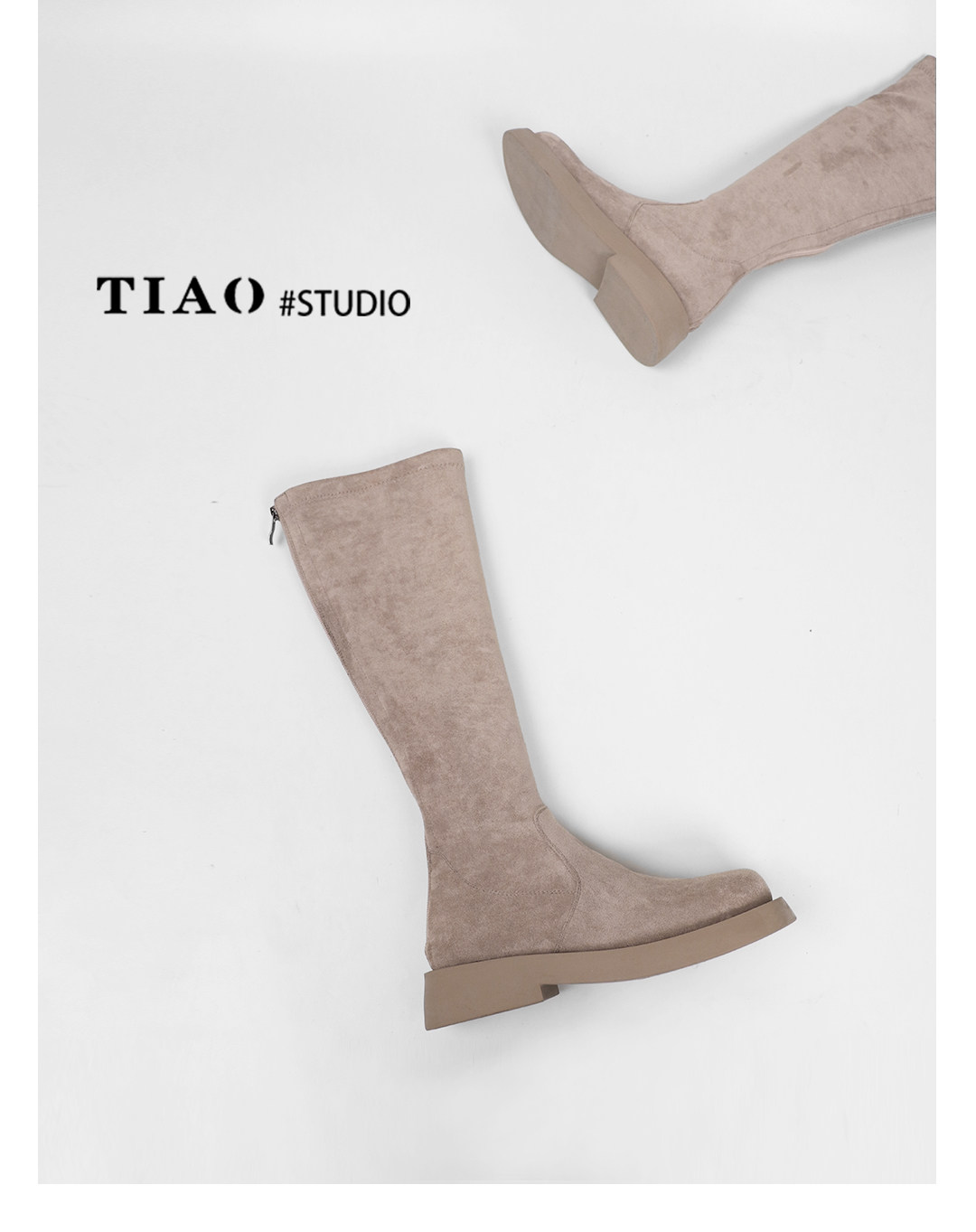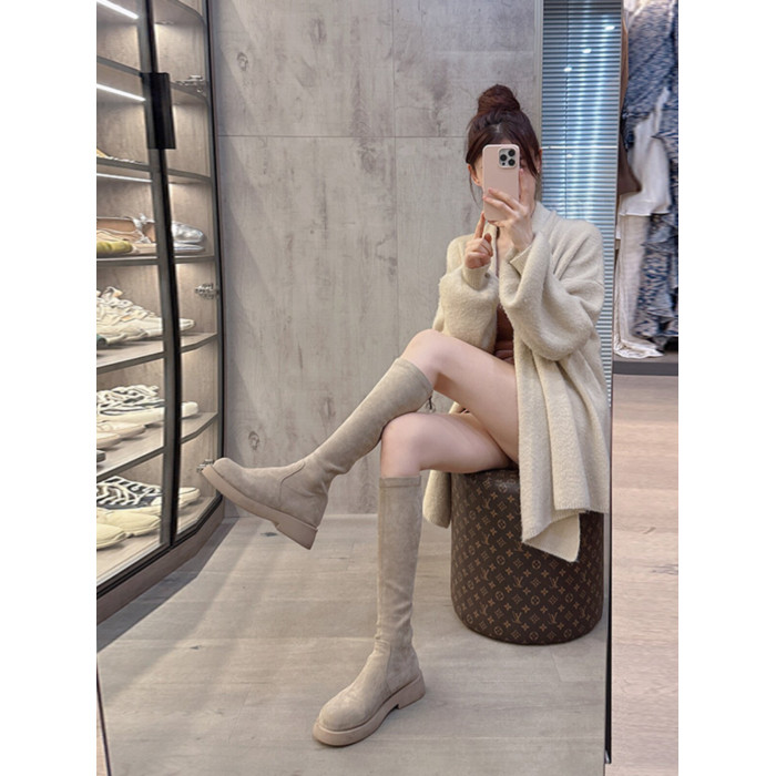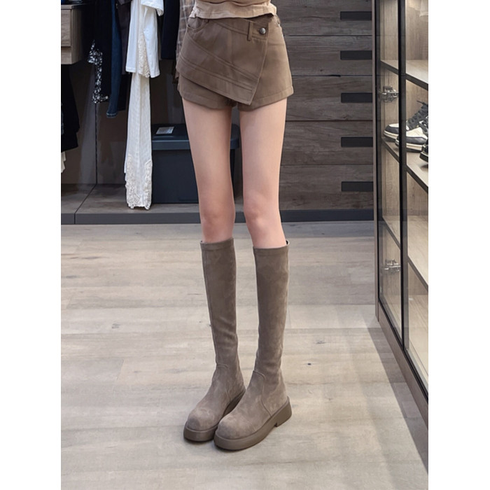 混凝草後拉鍊顯瘦長靴子女中筒春夏平底騎士靴厚底不過膝瘦瘦靴