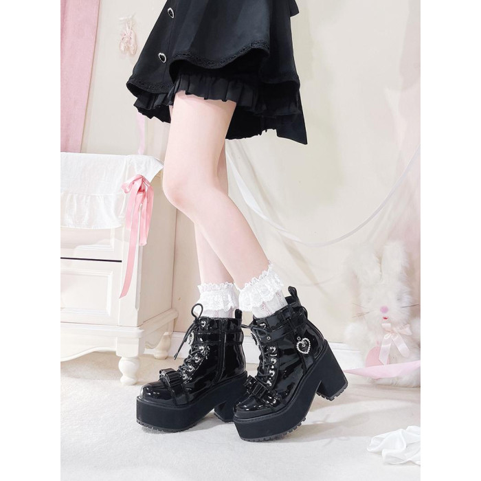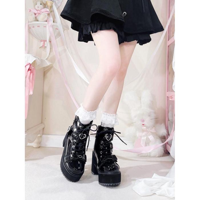 轉校生 暗夜地偶 原創蕾系馬丁靴日系量産型短靴厚底甜酷靴子女