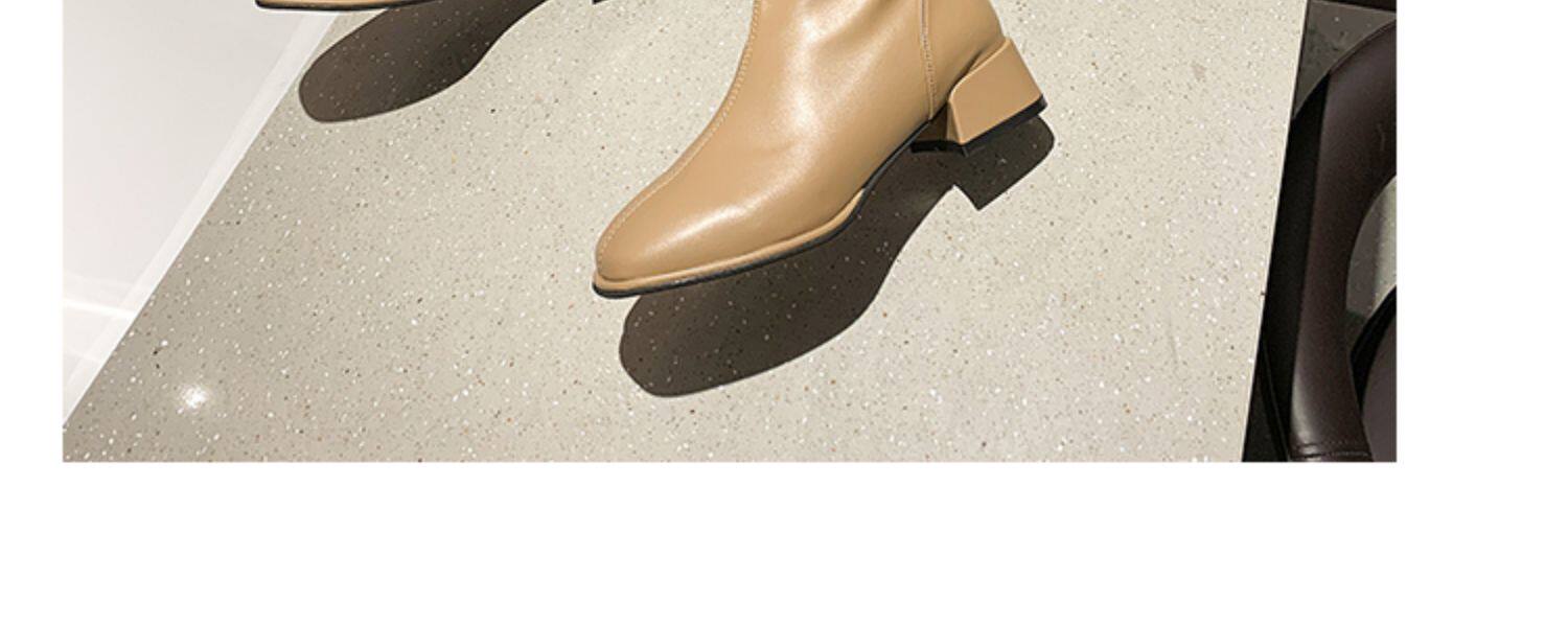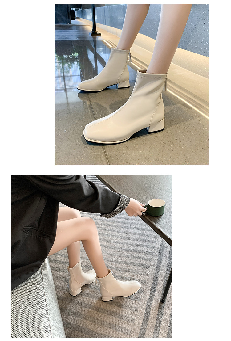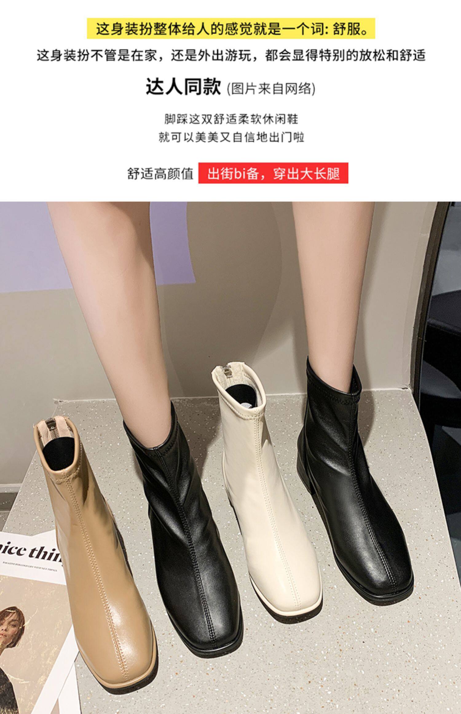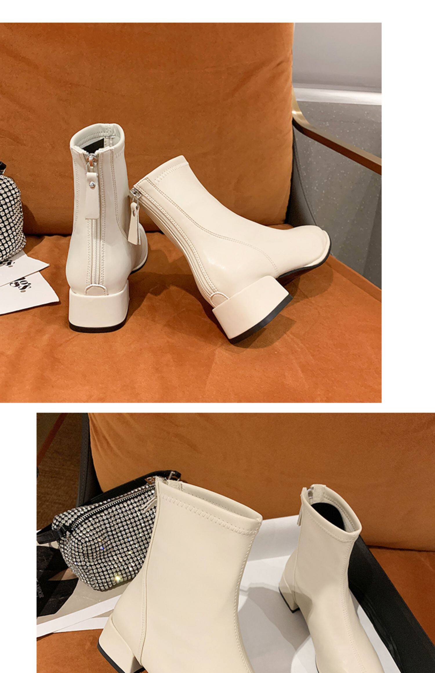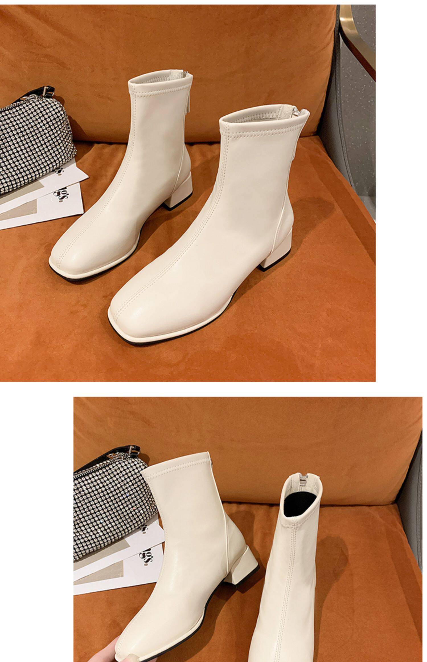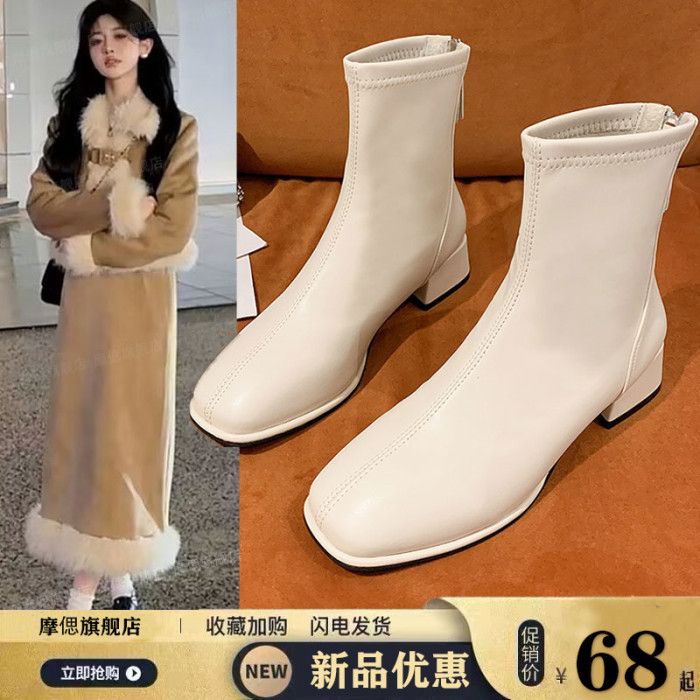 粗跟短靴子女2026新款秋冬季加絨法式白色瘦瘦靴韓系小踝靴馬丁靴