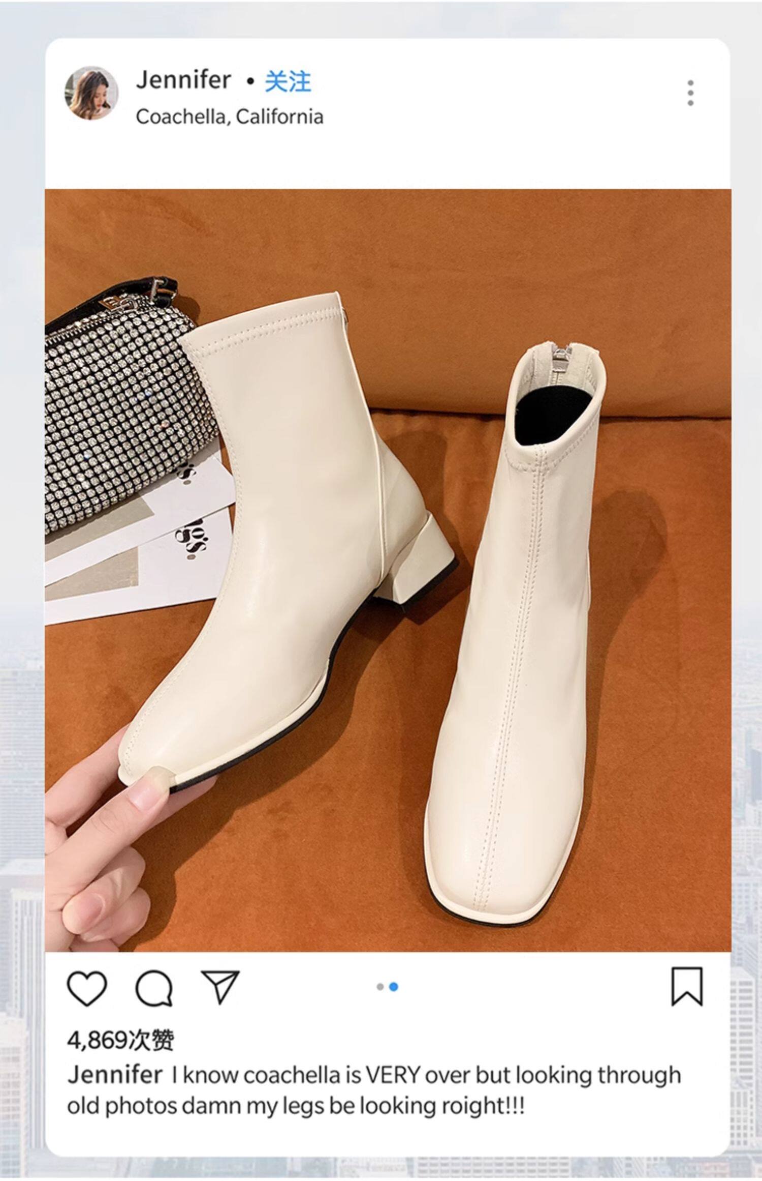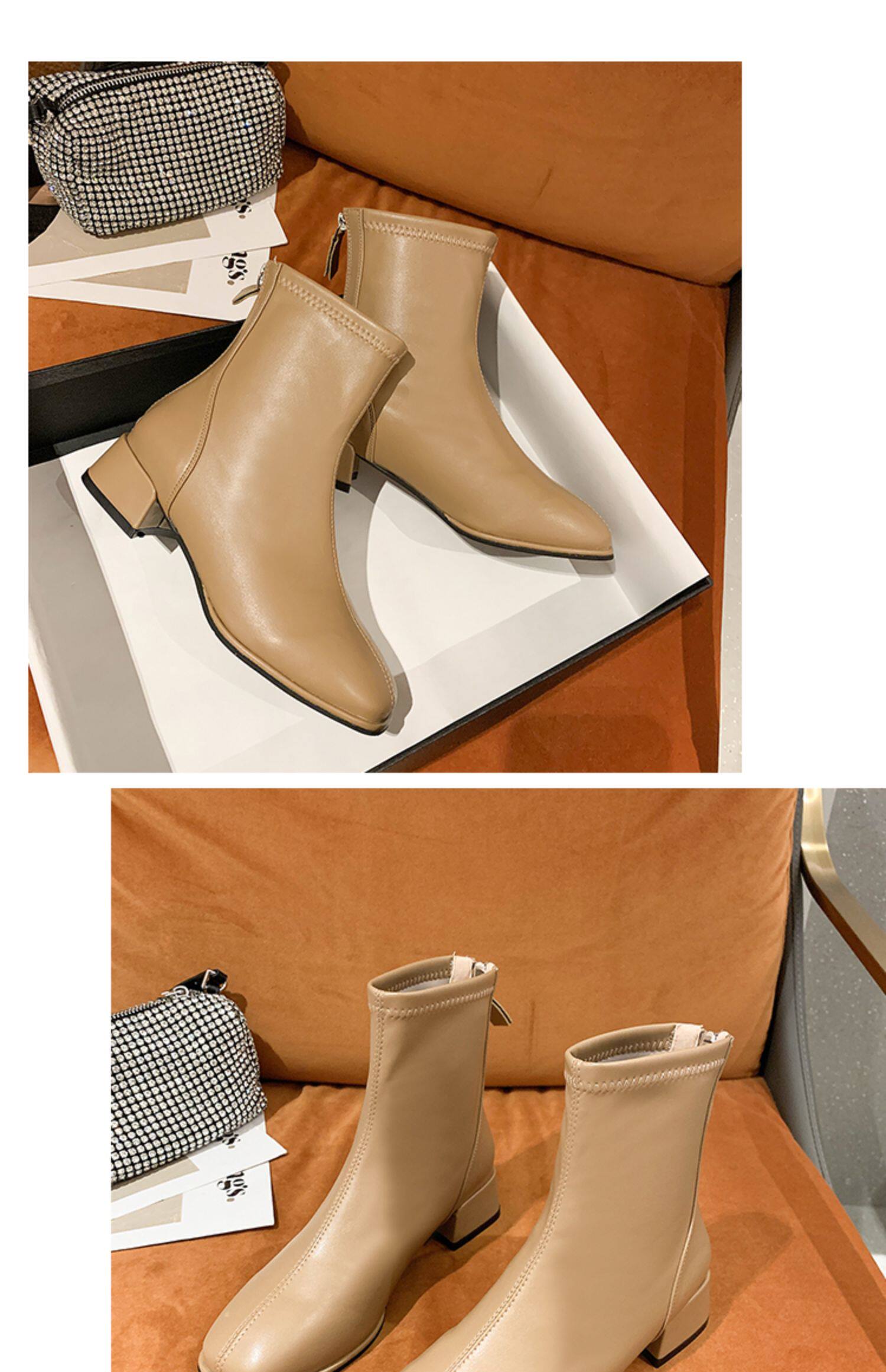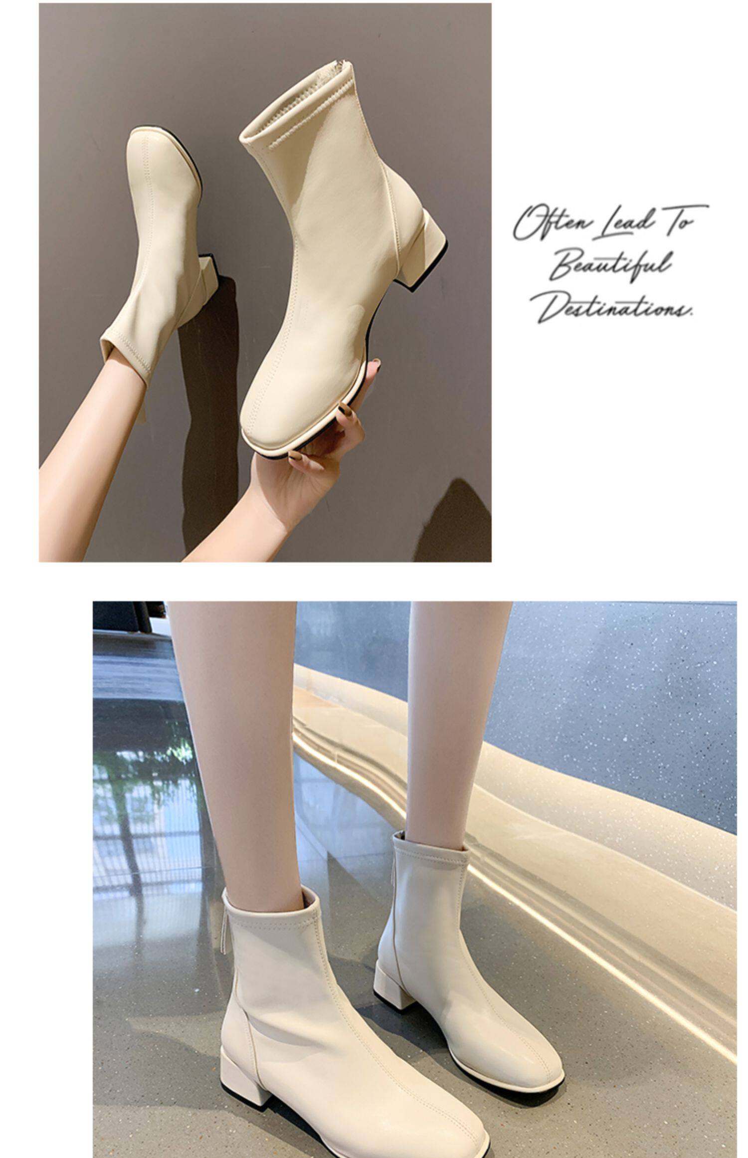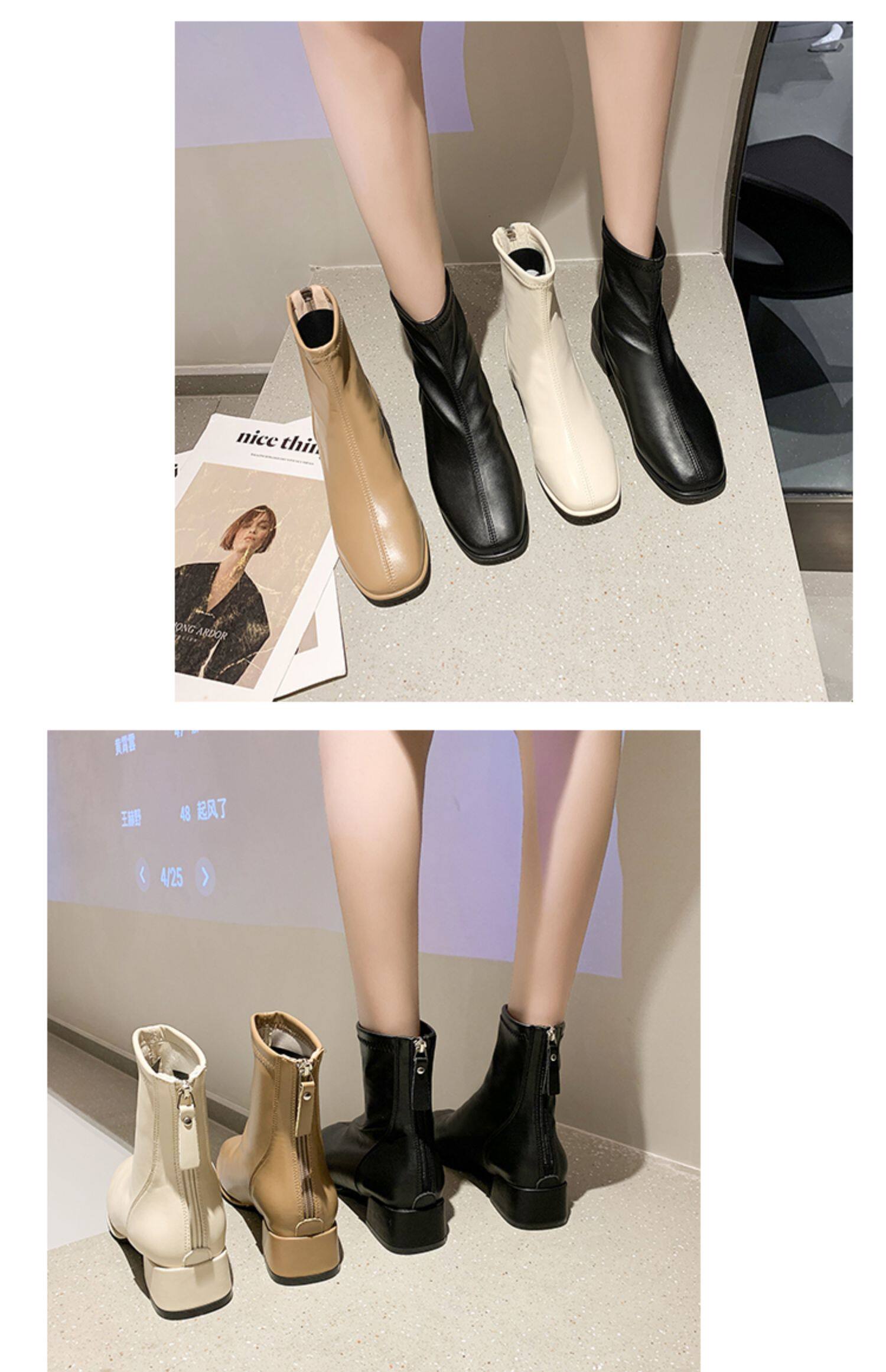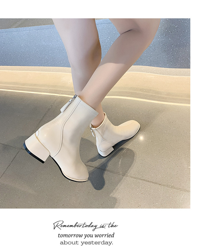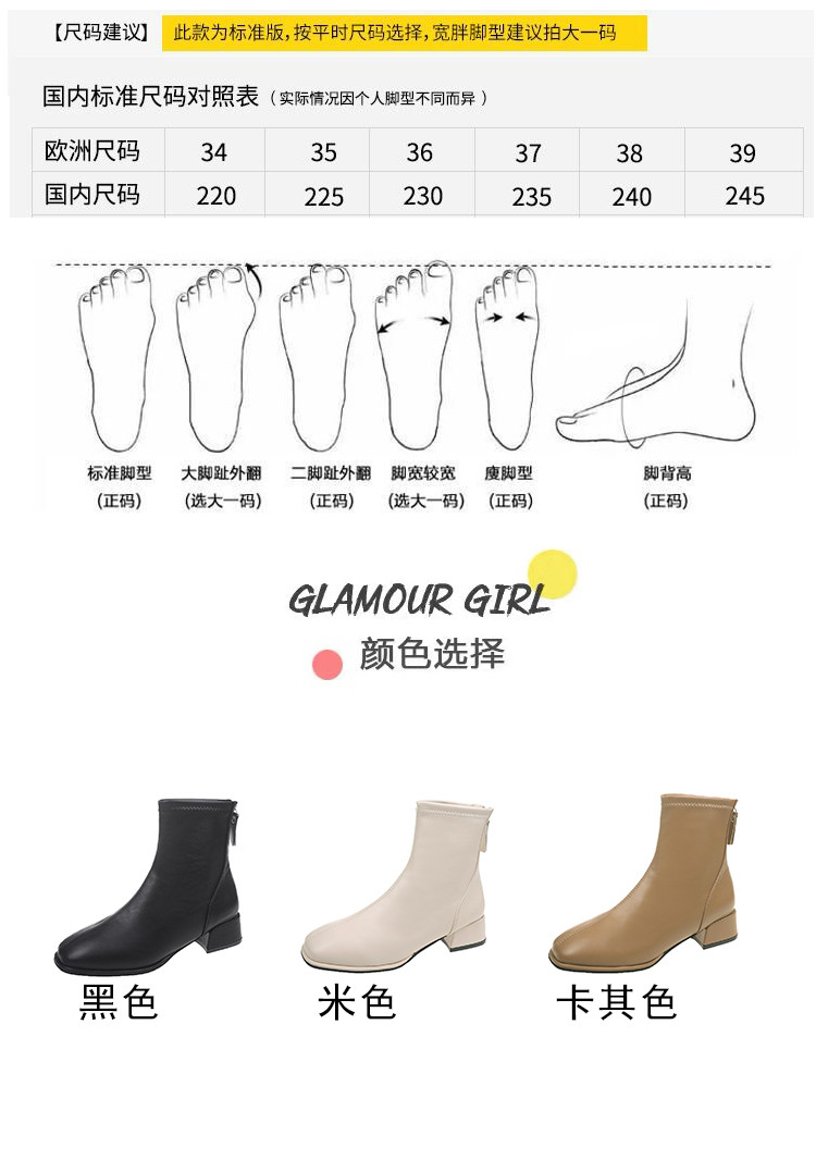 粗跟短靴子女2026新款秋冬季加絨法式白色瘦瘦靴韓系小踝靴馬丁靴