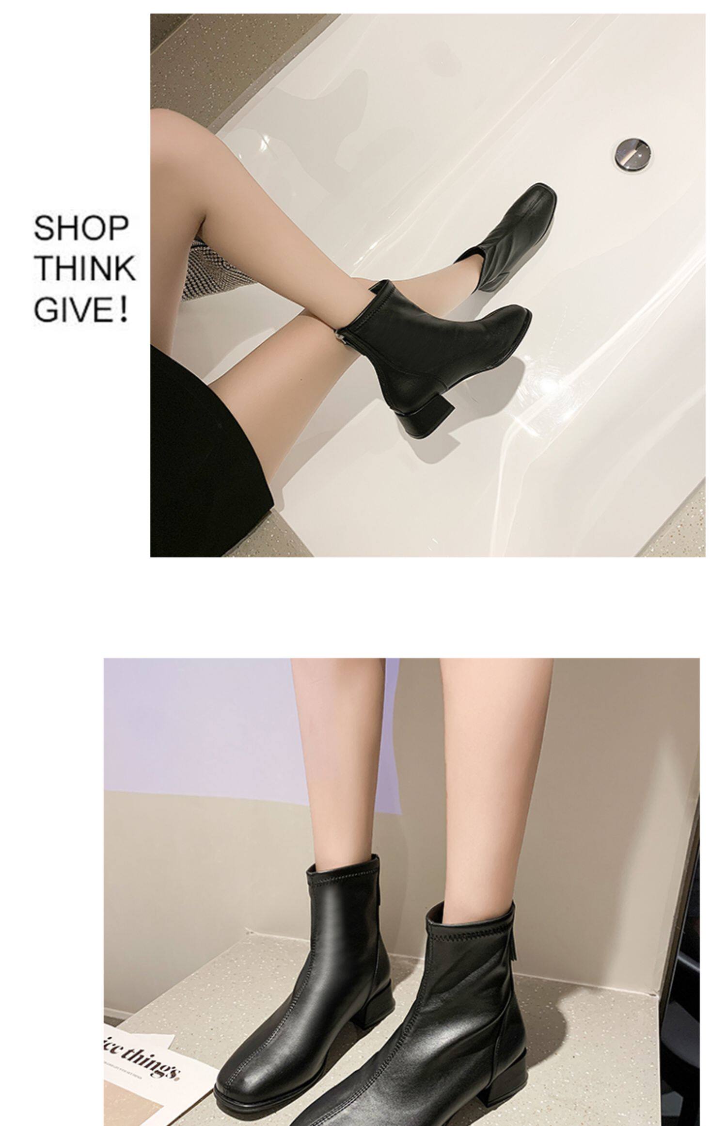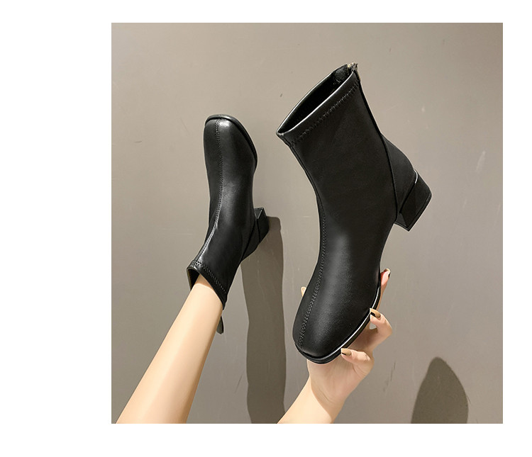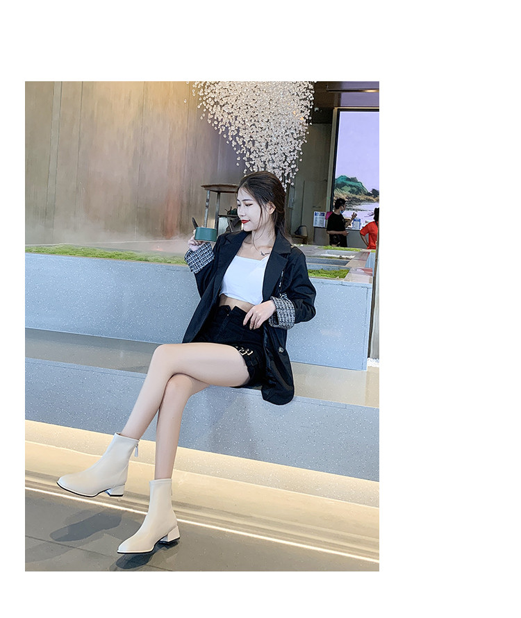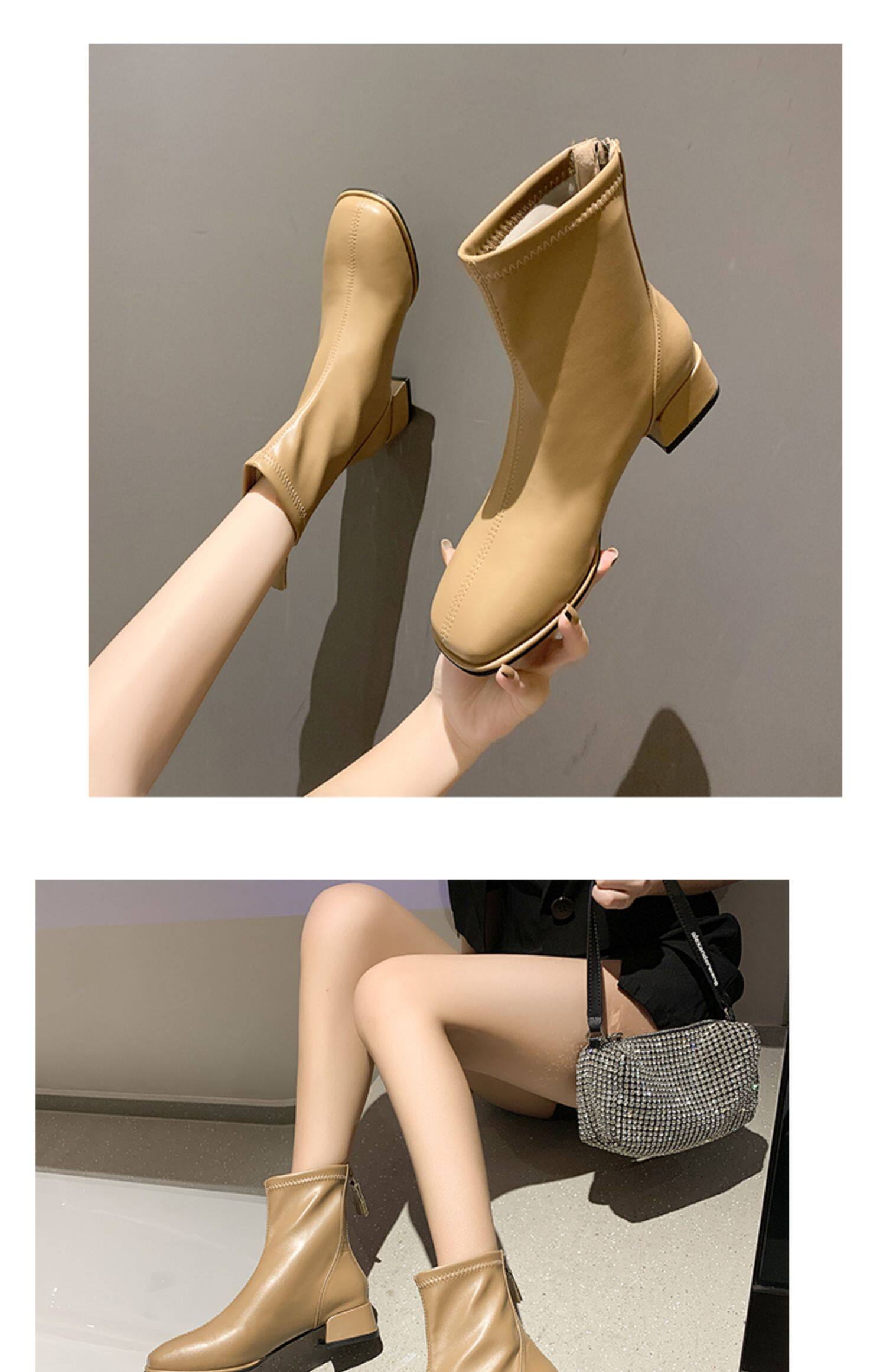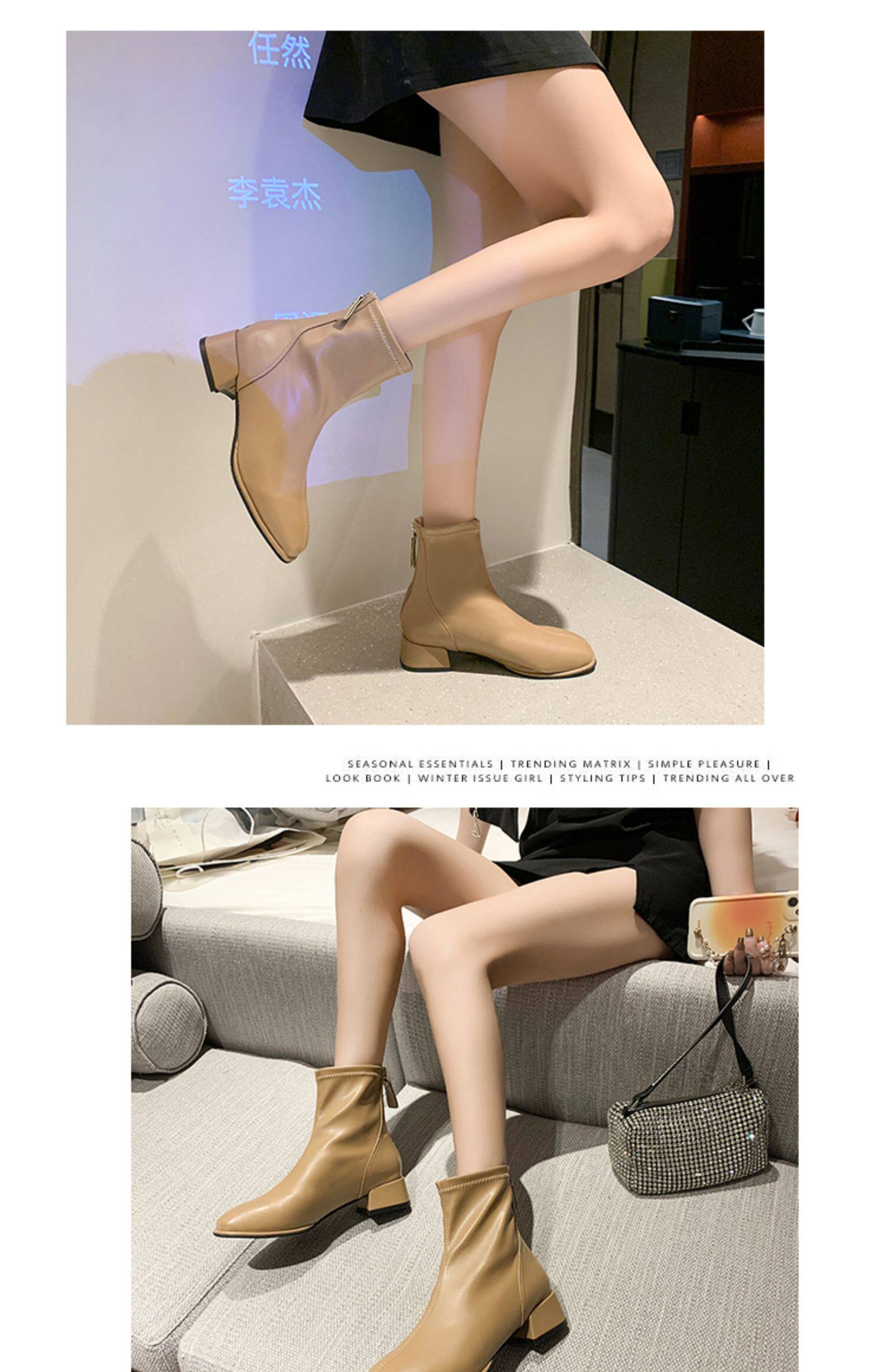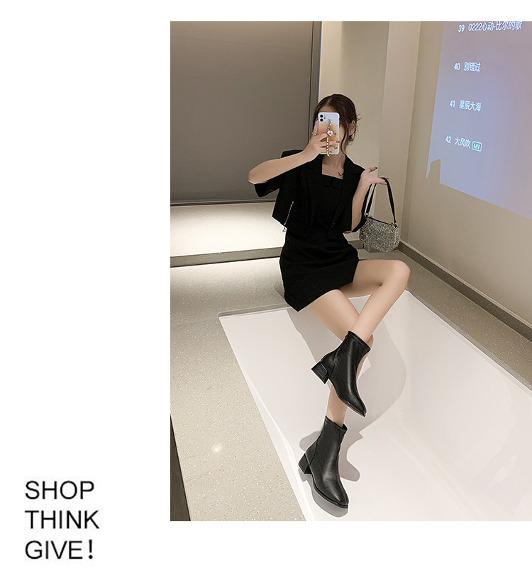 粗跟短靴子女2026新款秋冬季加絨法式白色瘦瘦靴韓系小踝靴馬丁靴