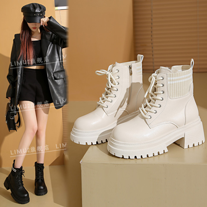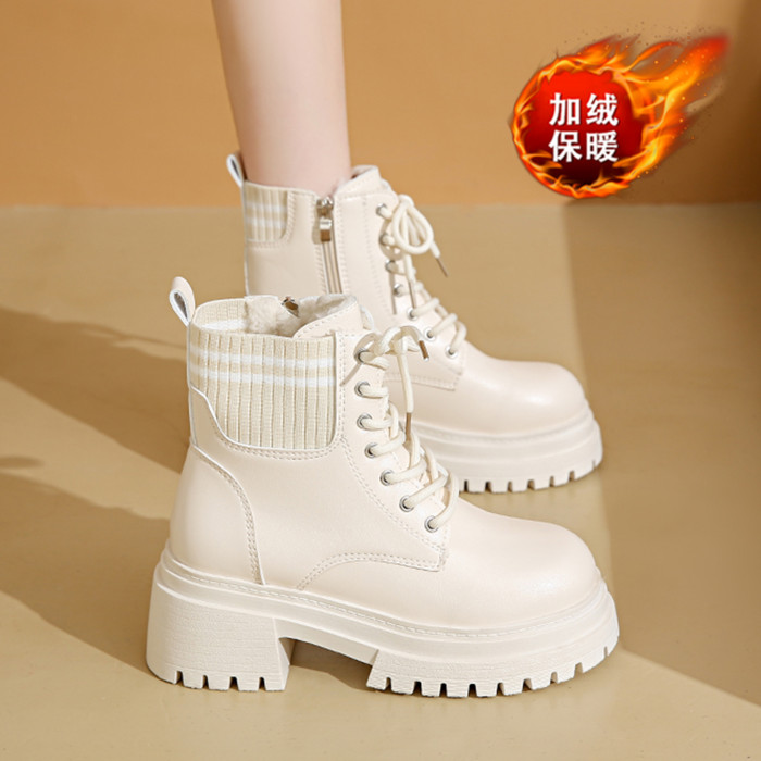 馬丁靴女2026新款秋冬季加絨保暖棉鞋小個子厚底白色短筒靴大碼42