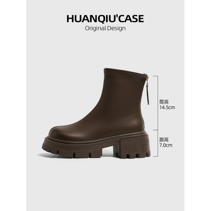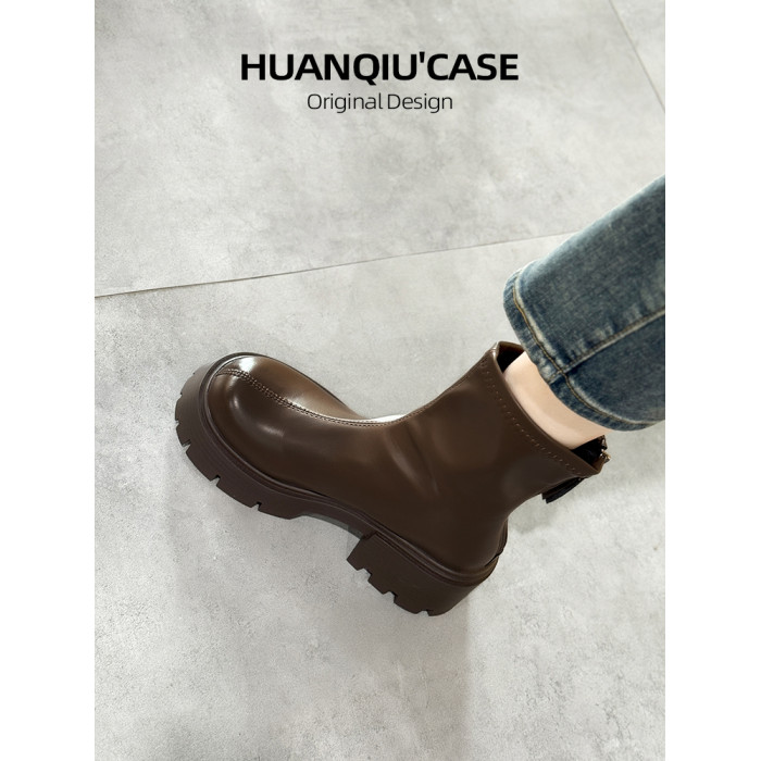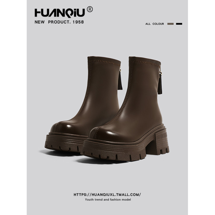 環球厚底馬丁靴女款2026春季新款英倫風黑色增高靴子女皮面短靴