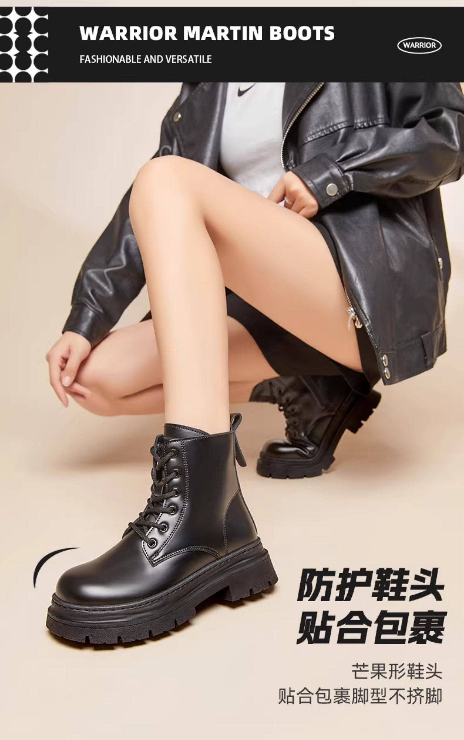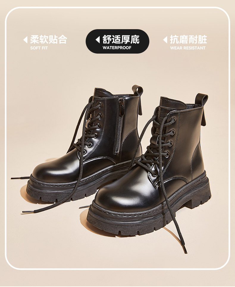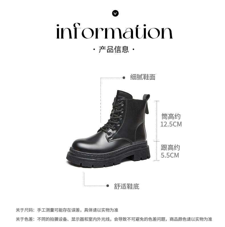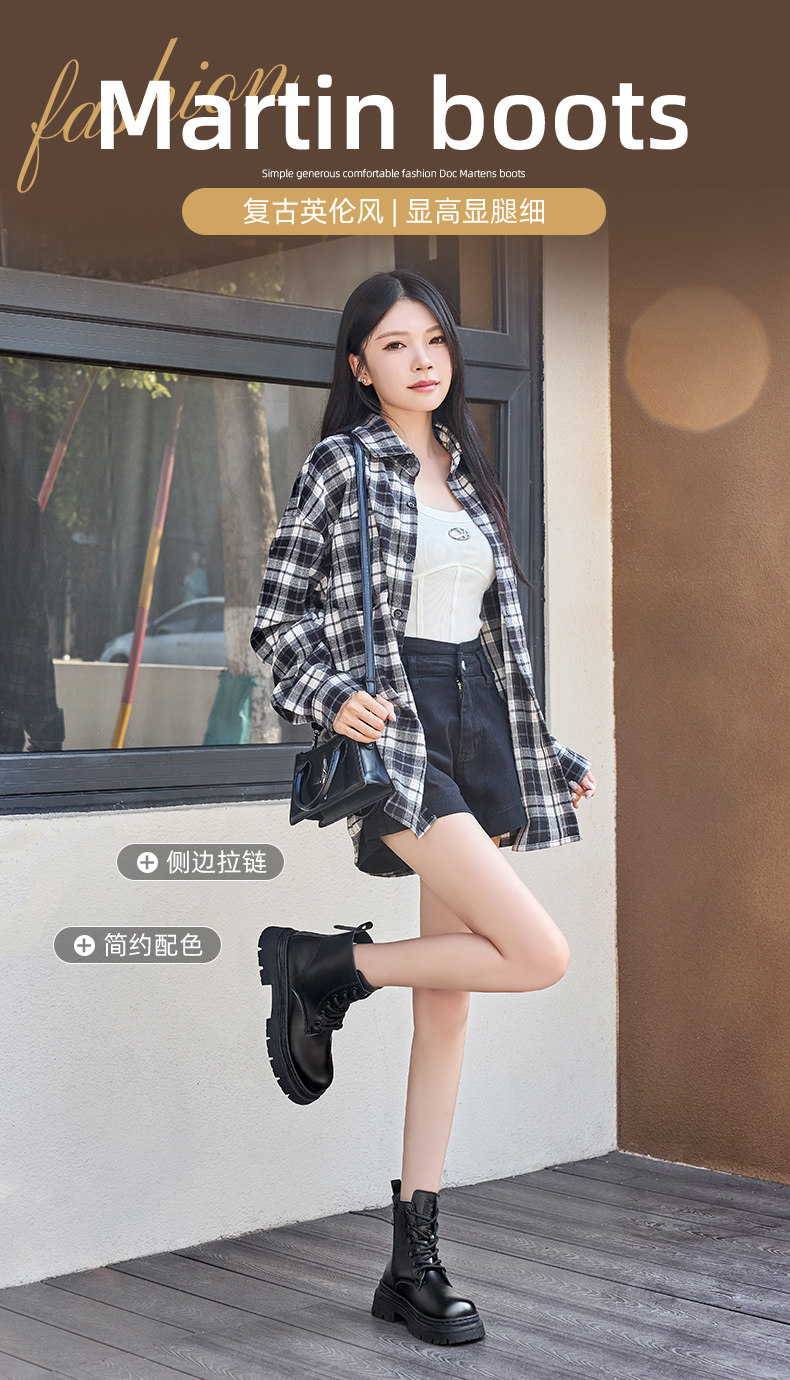 廻力馬丁靴女款2026新款春季皮鞋厚底短靴百搭黑色靴子英倫風女靴