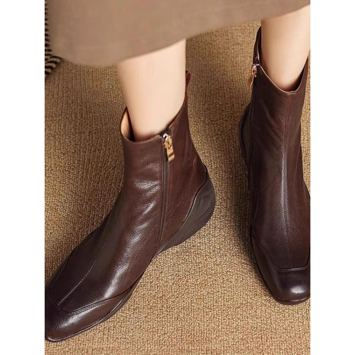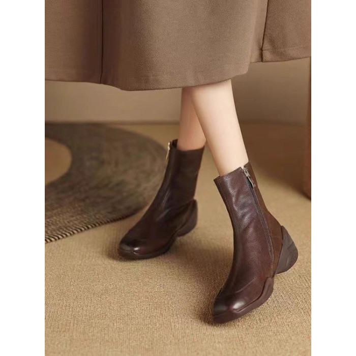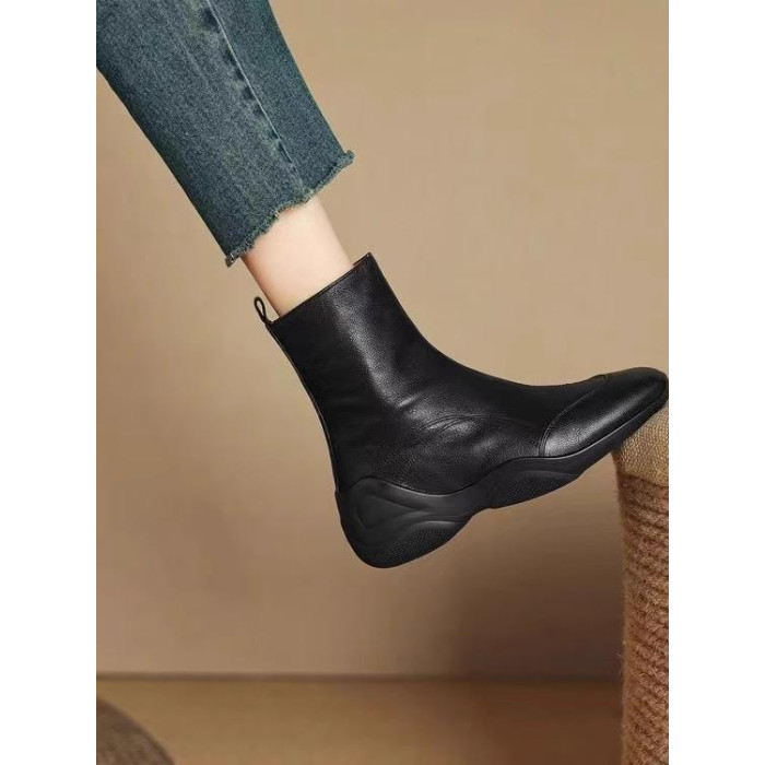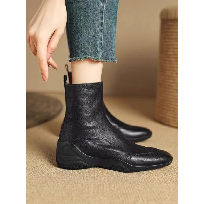 真皮復古加絨短靴2025秋冬新款英倫休閒運動軟底厚底馬丁靴側拉鍊