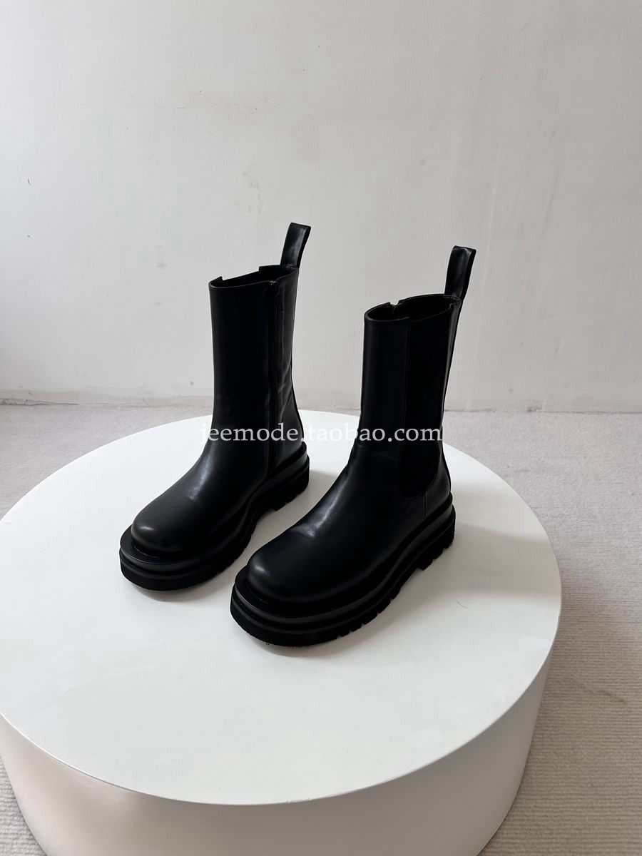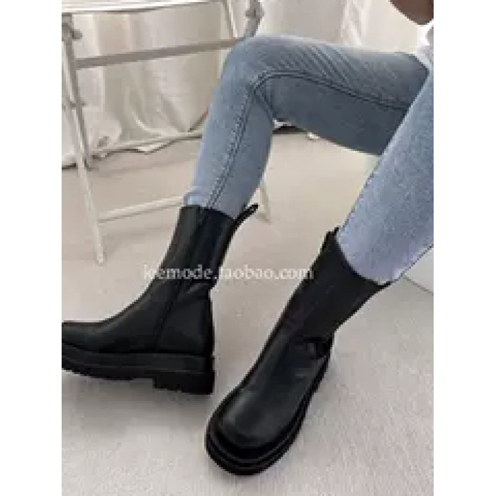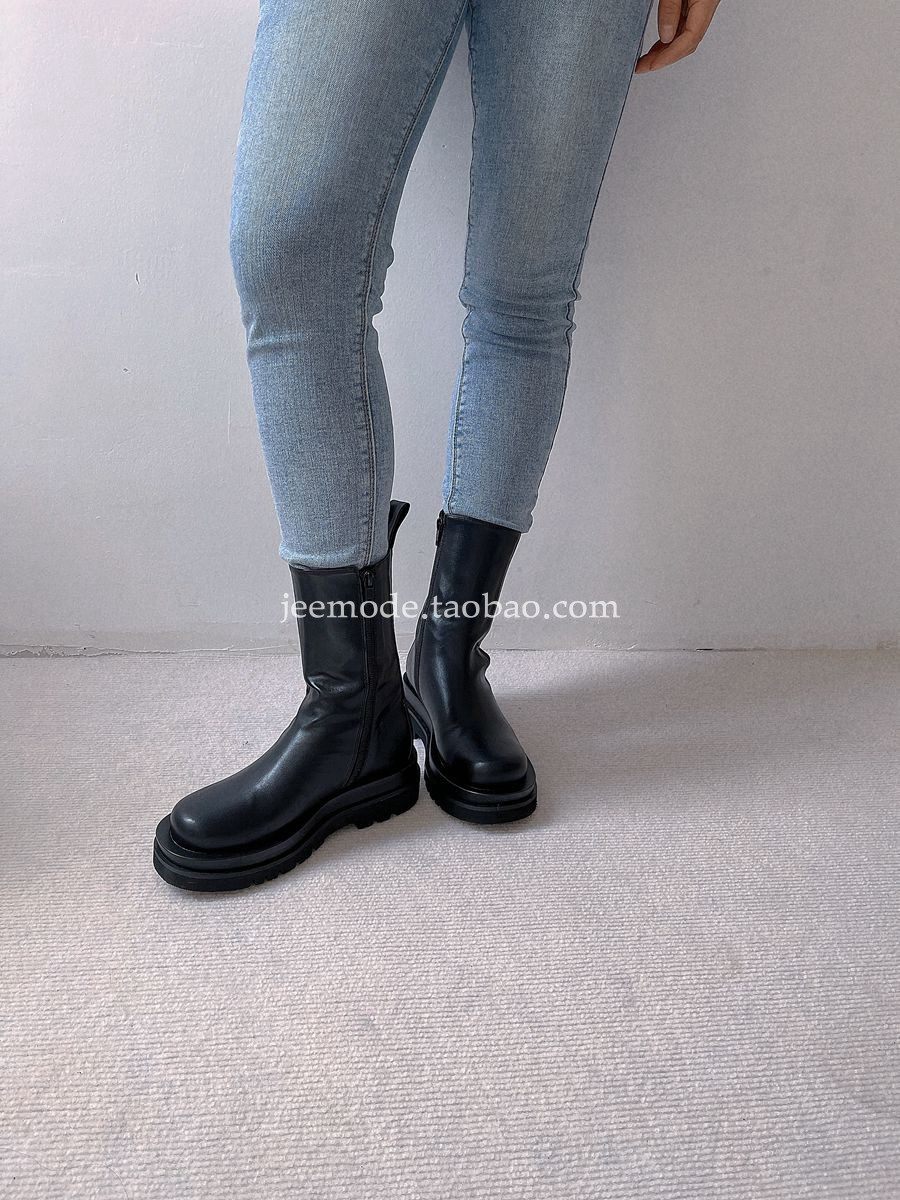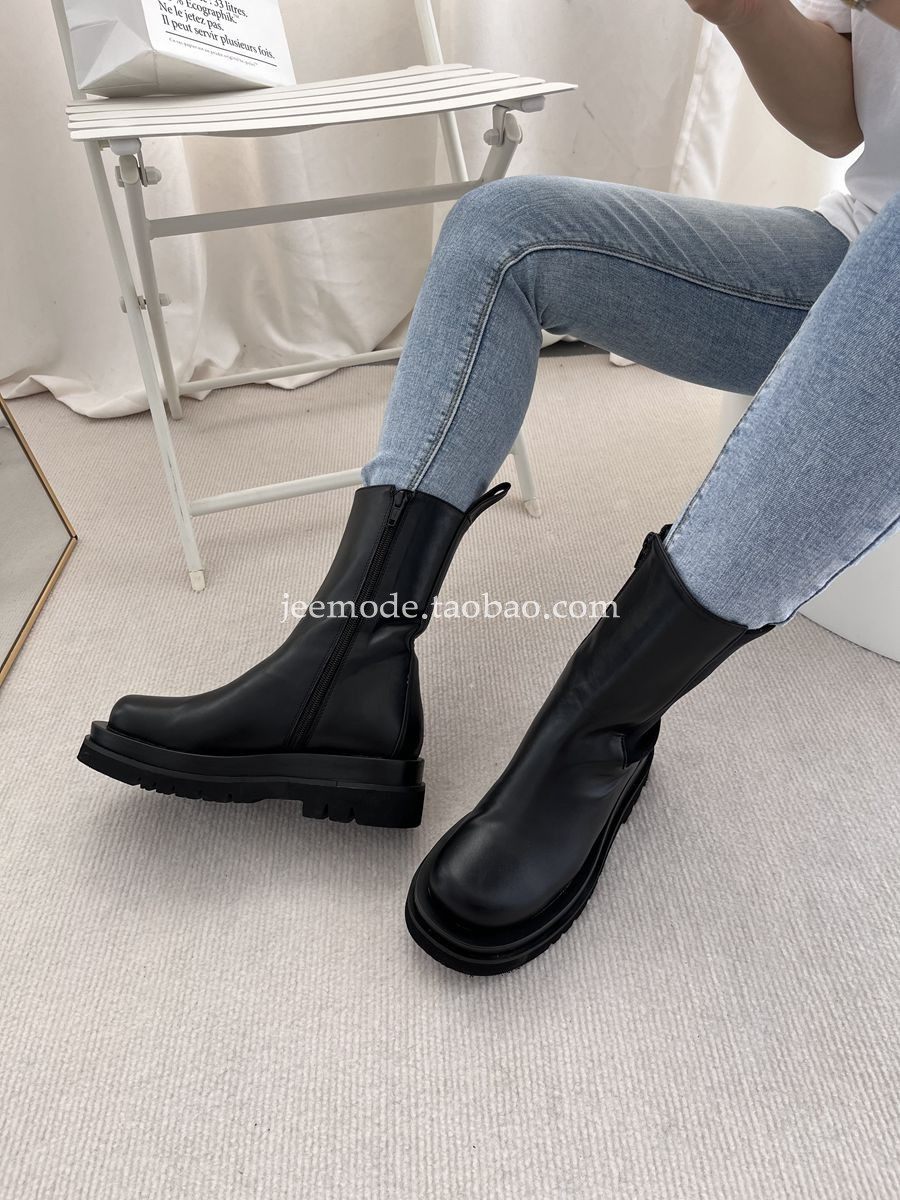 小池在首爾韓版潮鞋顯瘦厚底側拉鍊彈力菸筒靴切爾西靴短靴子女