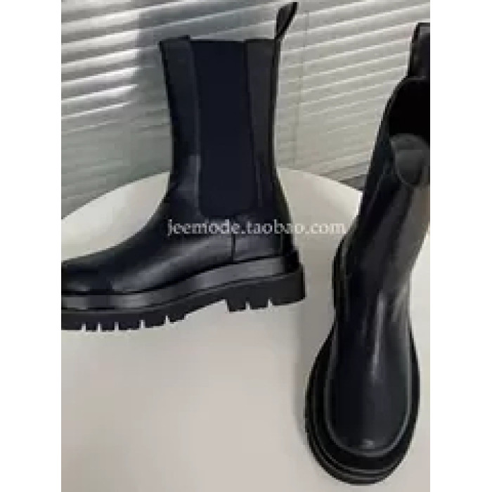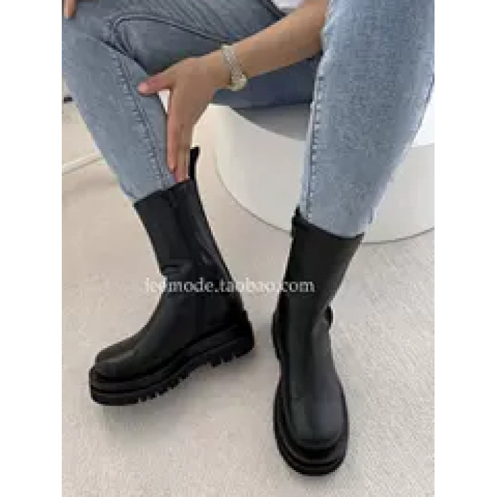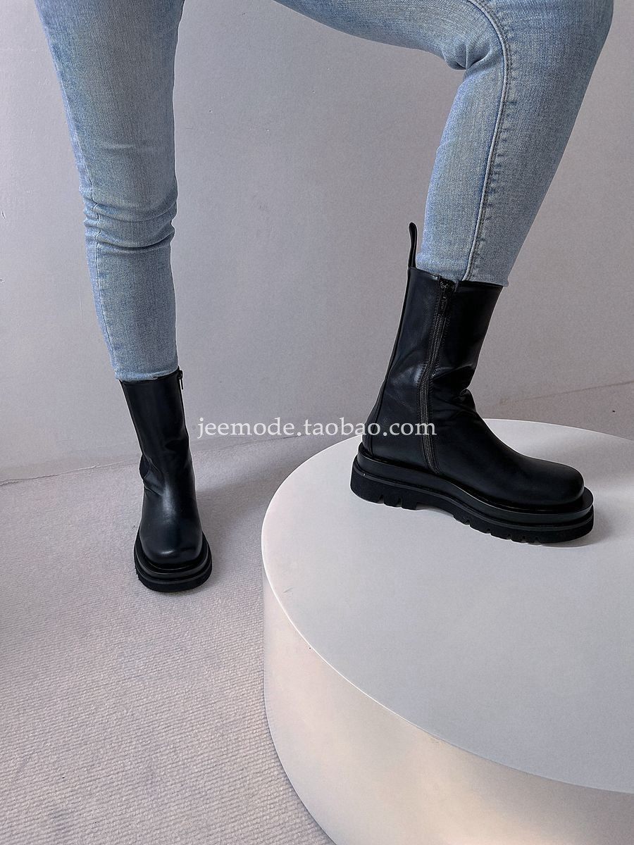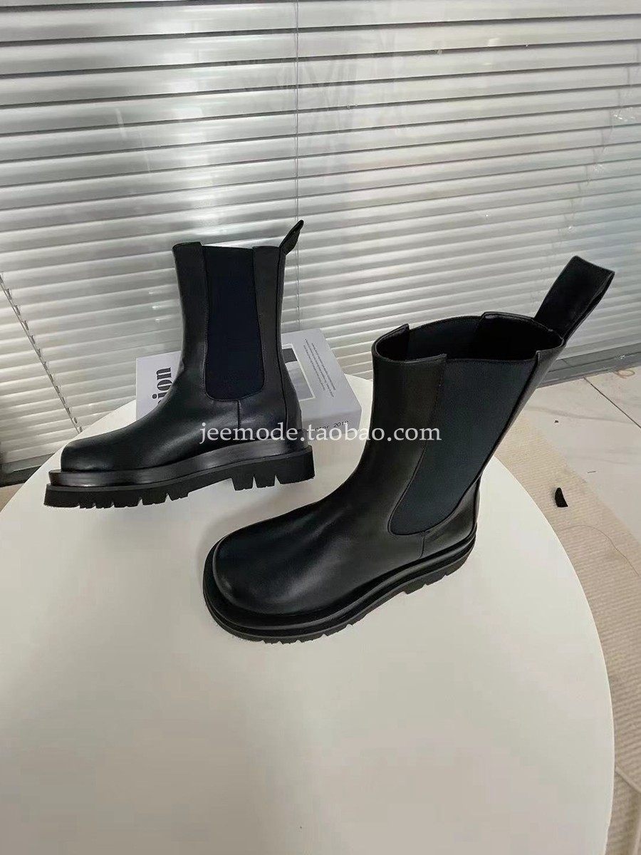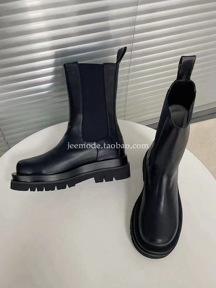 小池在首爾韓版潮鞋顯瘦厚底側拉鍊彈力菸筒靴切爾西靴短靴子女