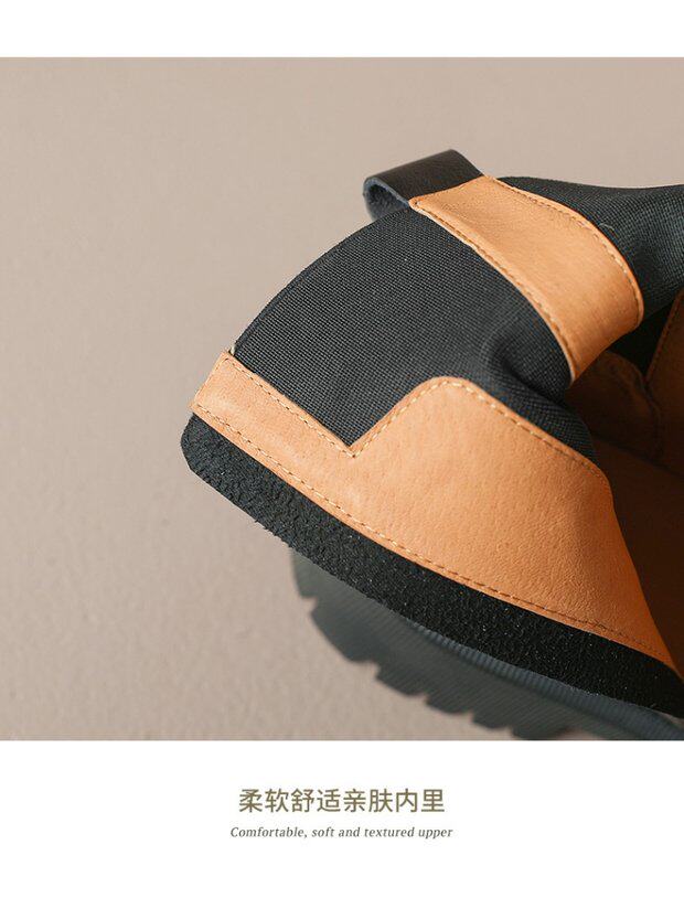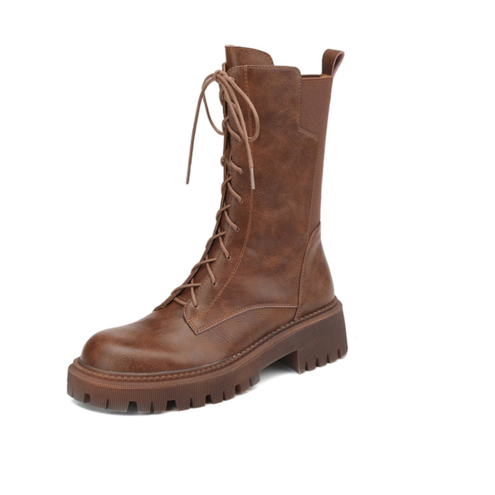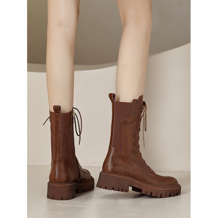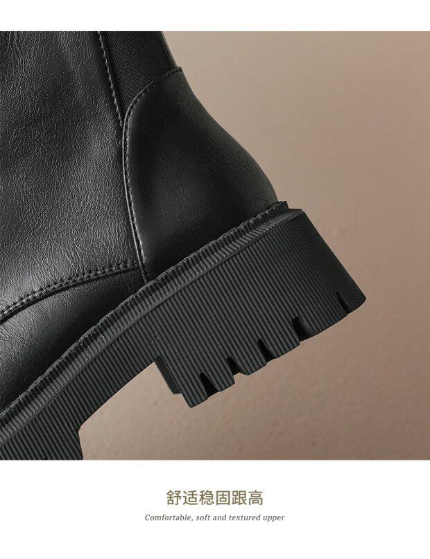 棕色真皮馬丁靴女彈力瘦瘦靴英倫厚底短靴中筒切爾西春秋單靴大碼
