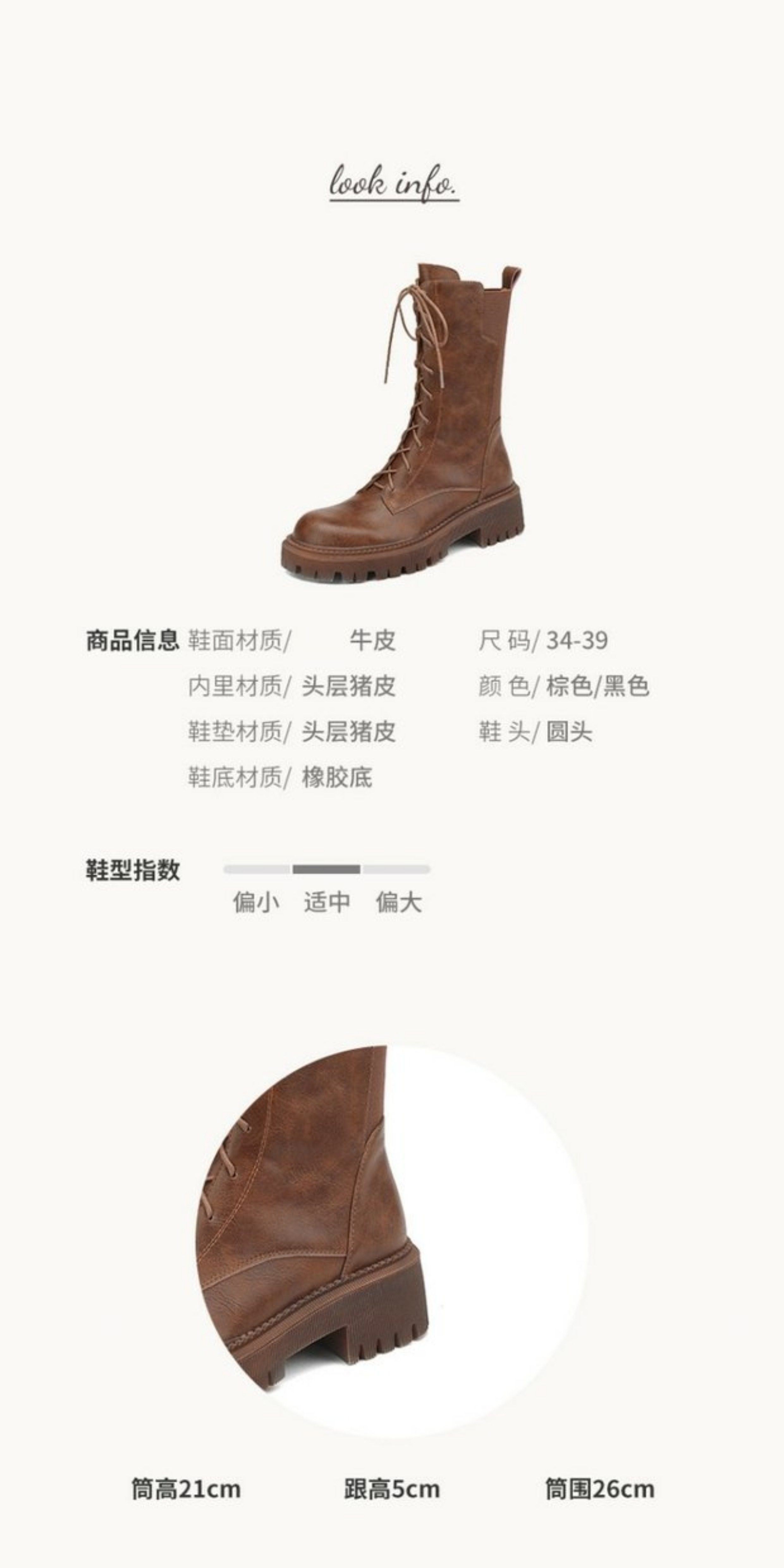 | 靴筒內裡材質 | 頭層豬皮 |