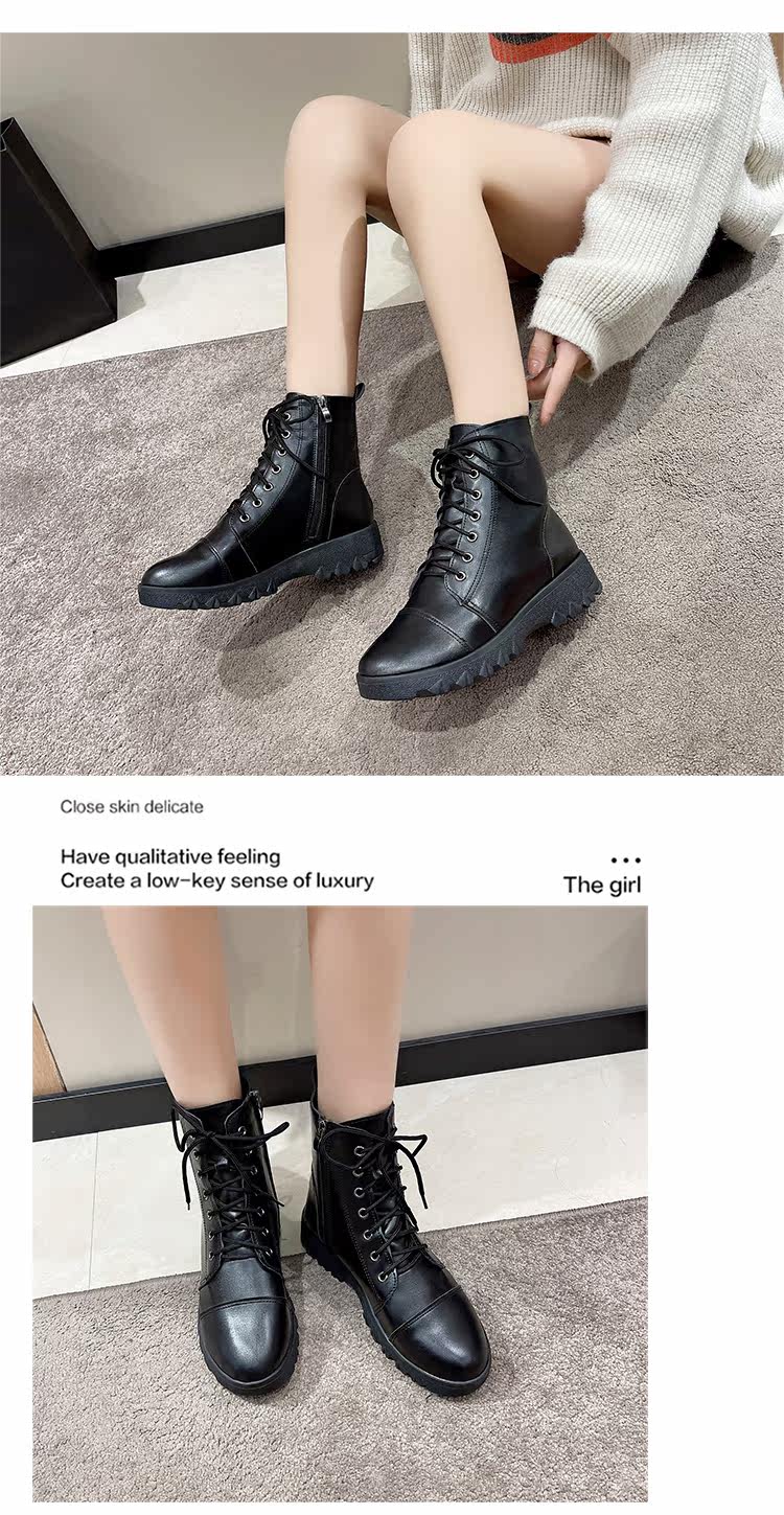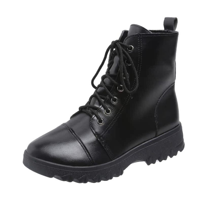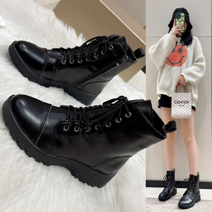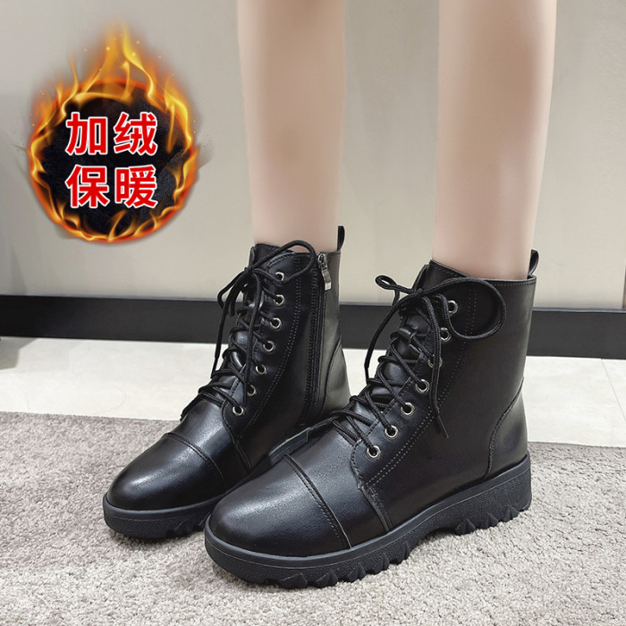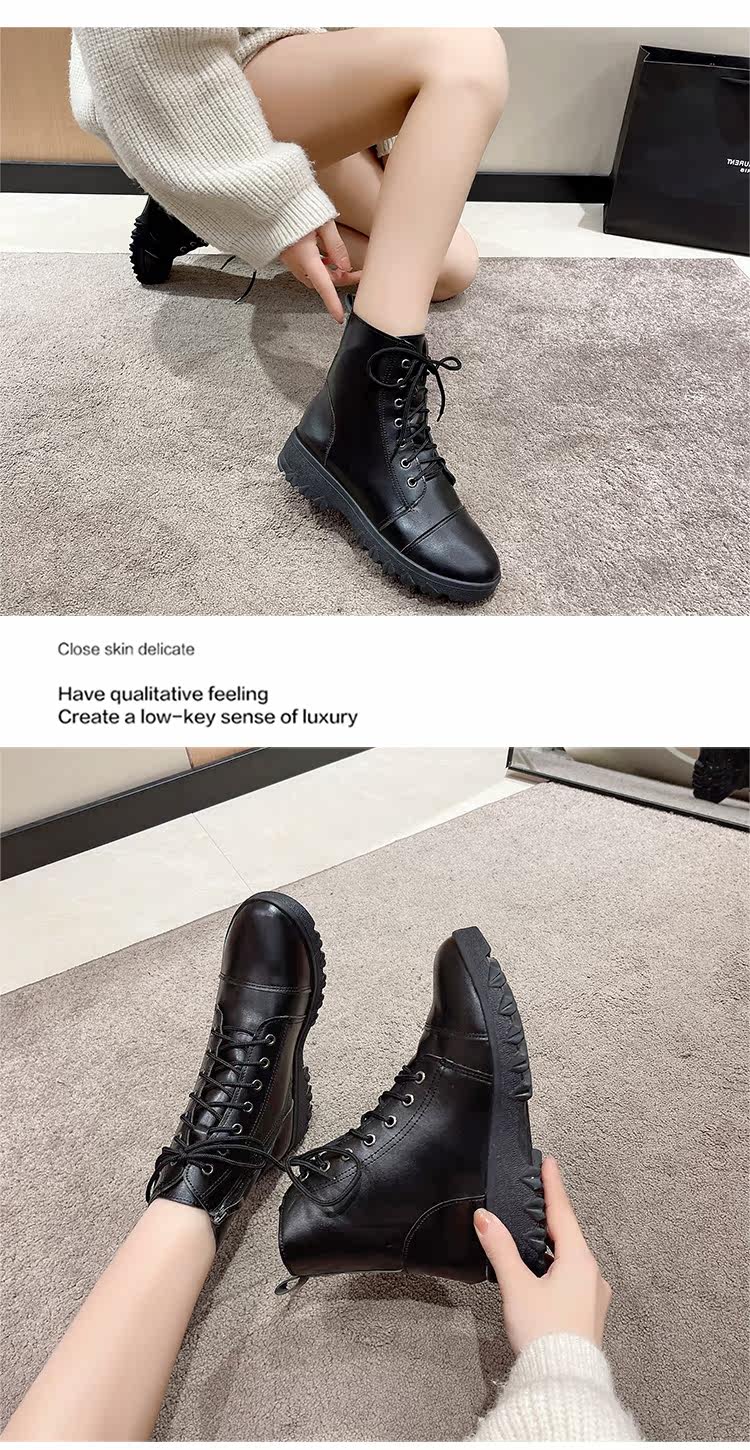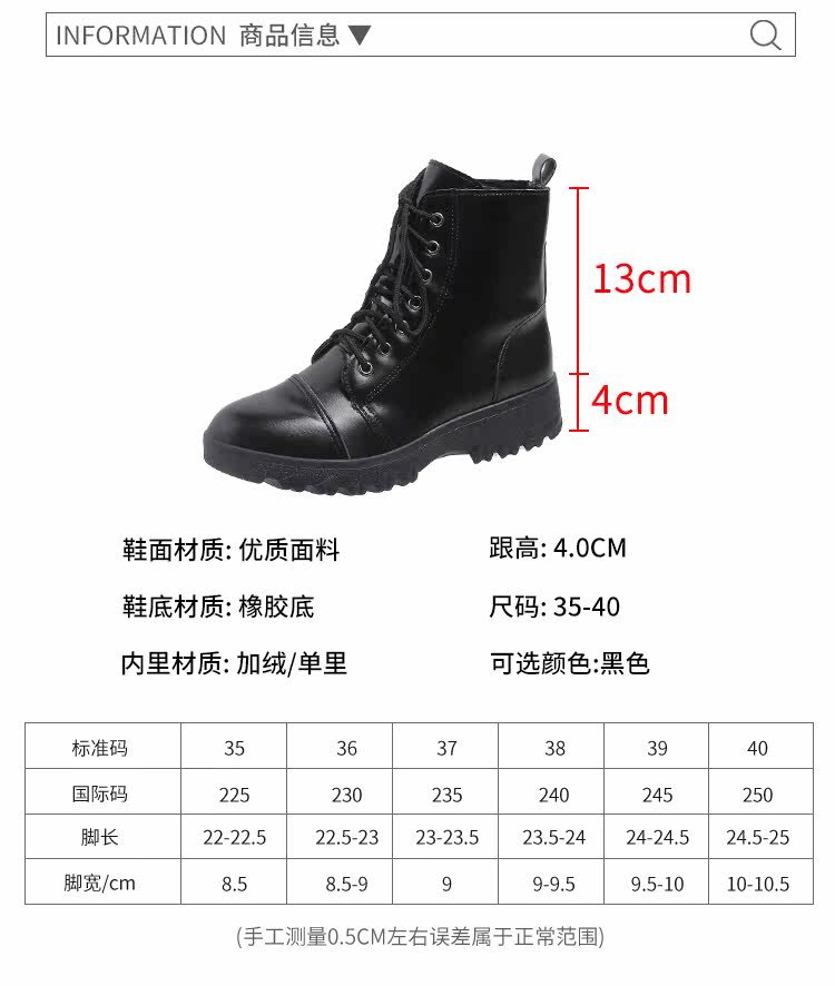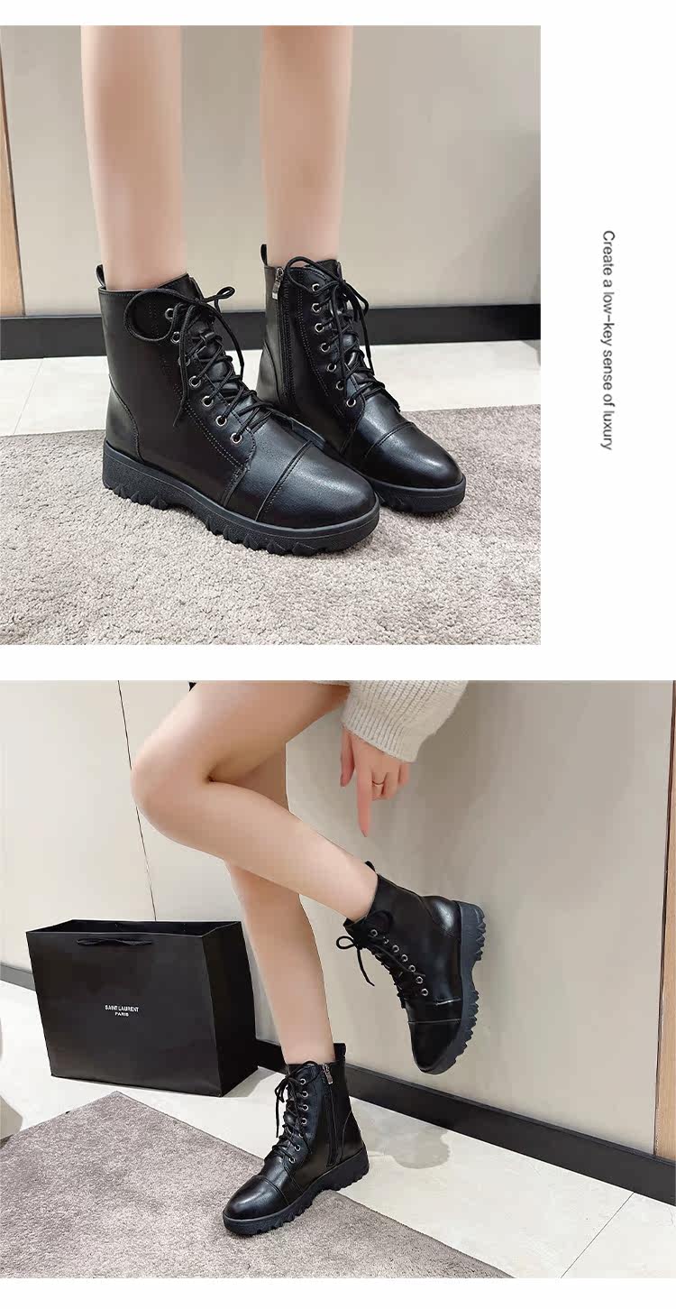 馬丁靴女秋冬季加絨棉鞋爆款英倫風大碼41短靴系帶黑色圓頭靴子