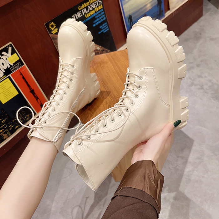 大碼女靴41一43馬丁靴女短靴英倫風女鞋子超火厚底顯腳小中筒靴子