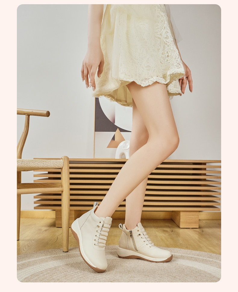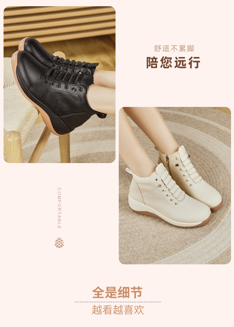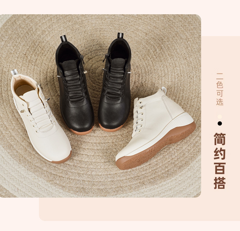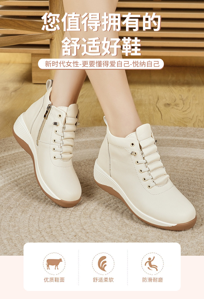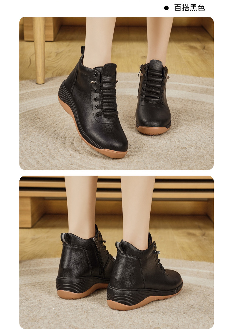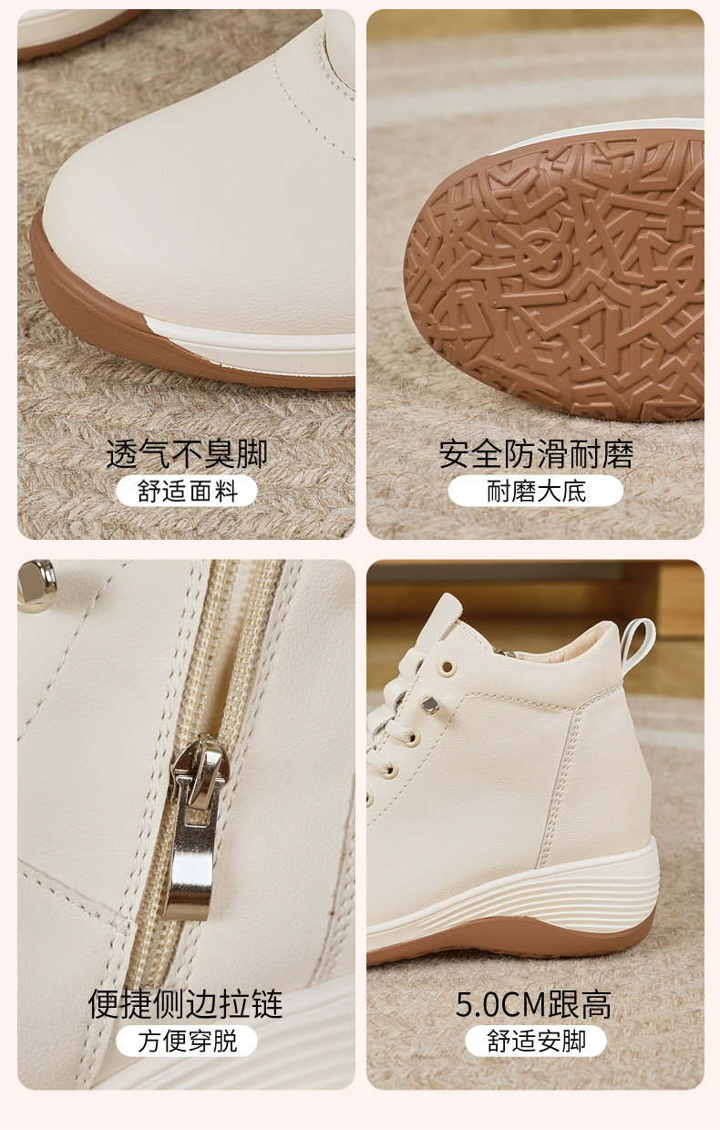 休閒側拉鍊鞋旅遊鞋2026秋冬新款厚底防滑女士馬丁靴坡跟真皮短靴
