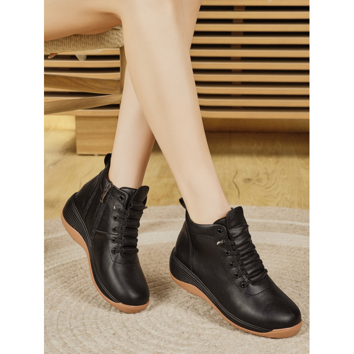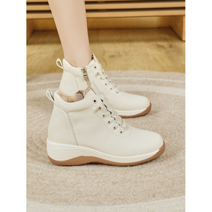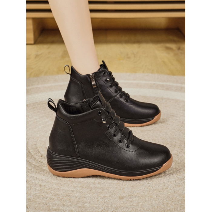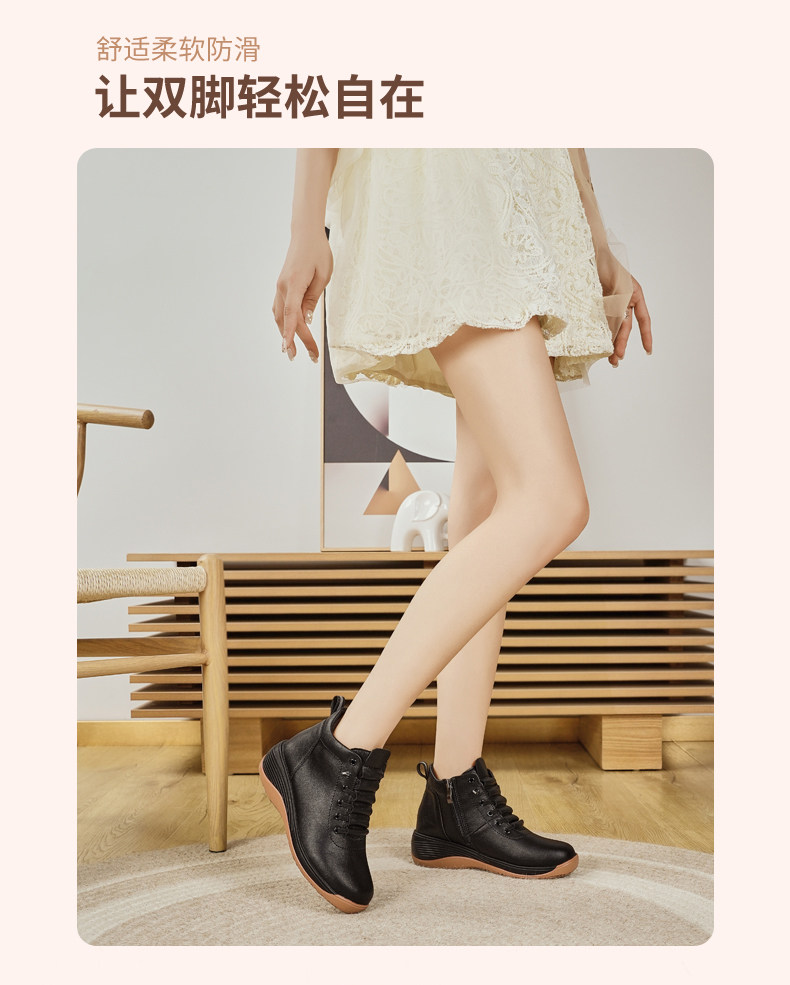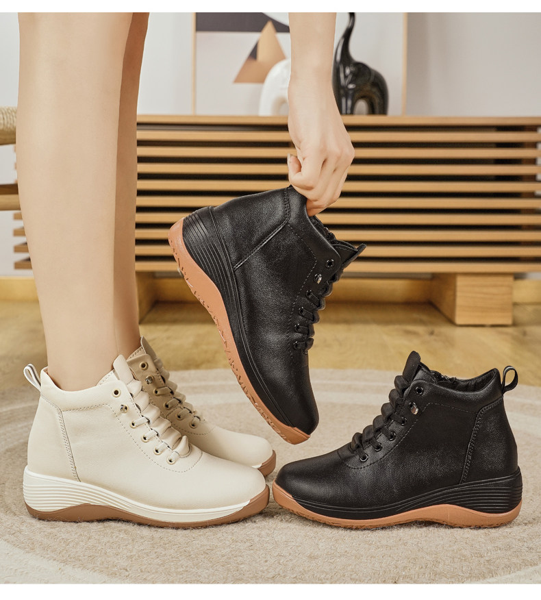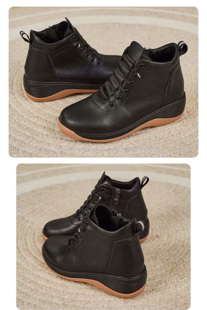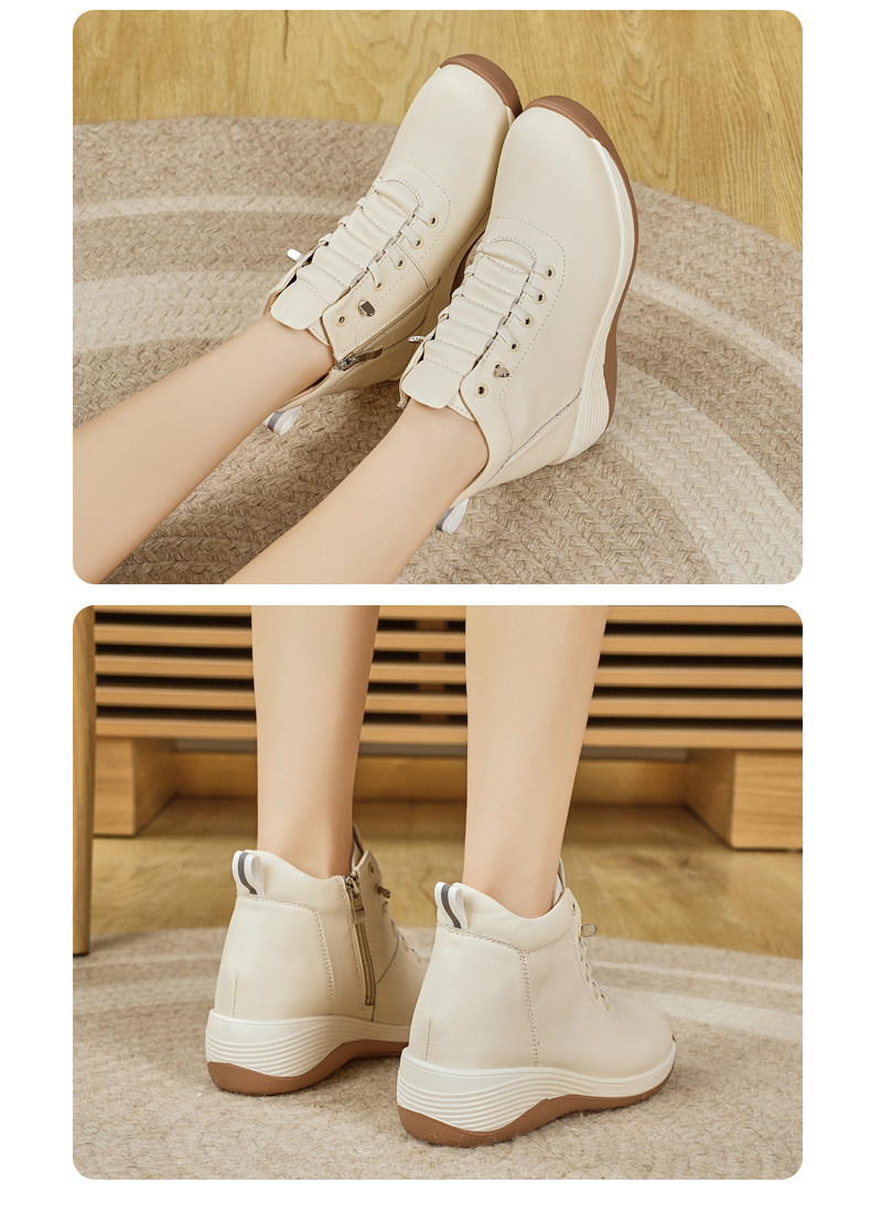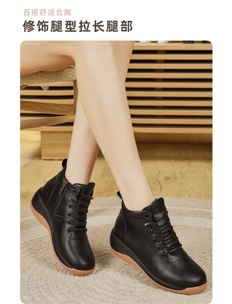 休閒側拉鍊鞋旅遊鞋2026秋冬新款厚底防滑女士馬丁靴坡跟真皮短靴