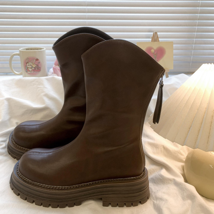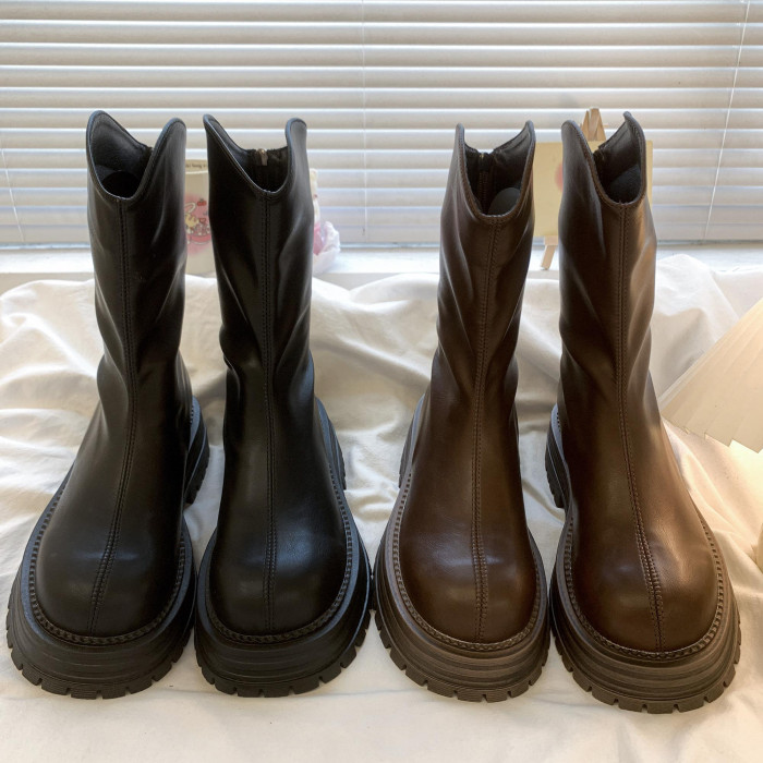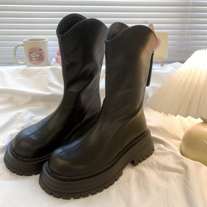 真皮厚底粗跟馬丁靴女2025秋冬新款短靴復古瘦瘦靴英倫風高筒單靴