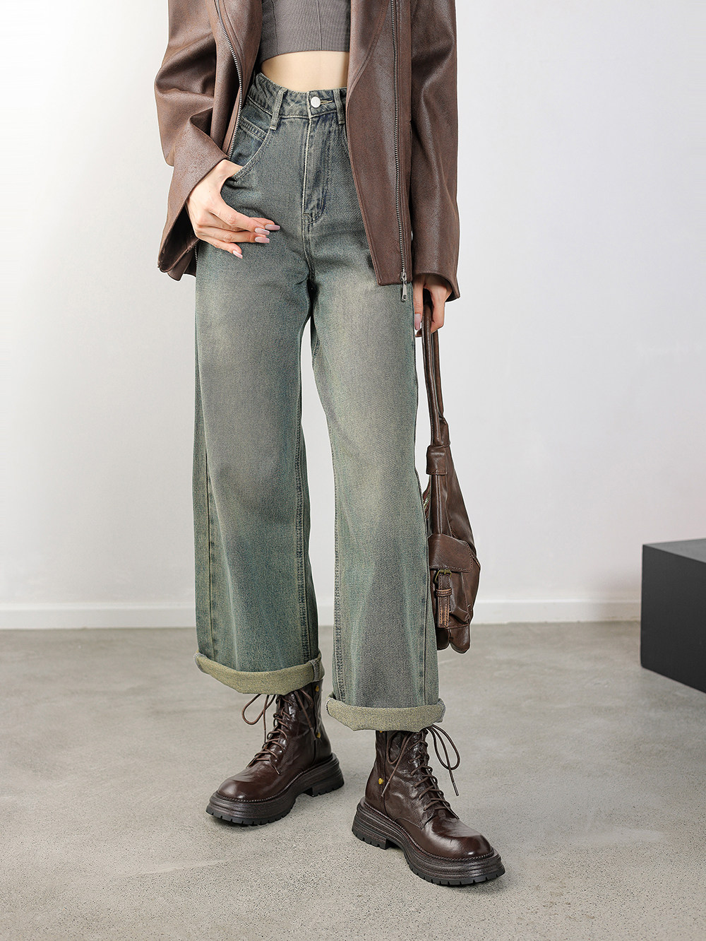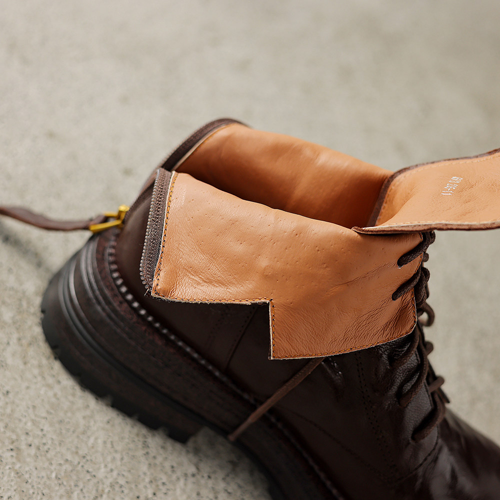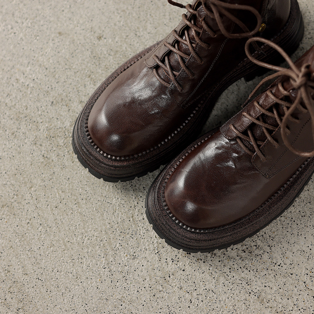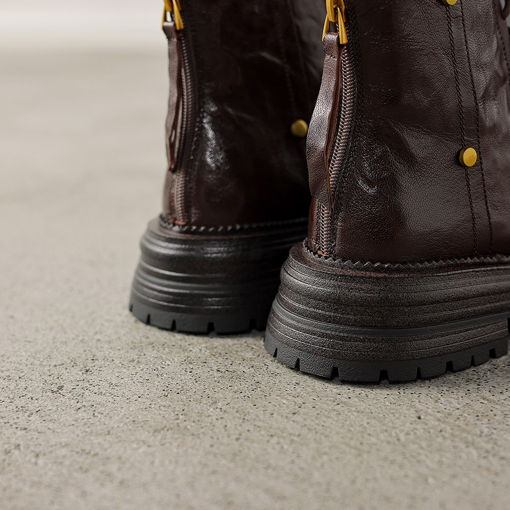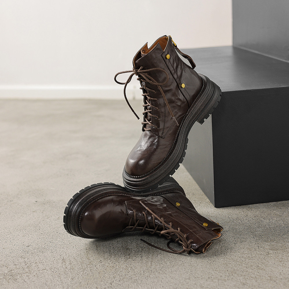 軟羊皮棕色厚底真皮短靴女2025初秋冬新款圓頭復古英倫風馬丁靴潮