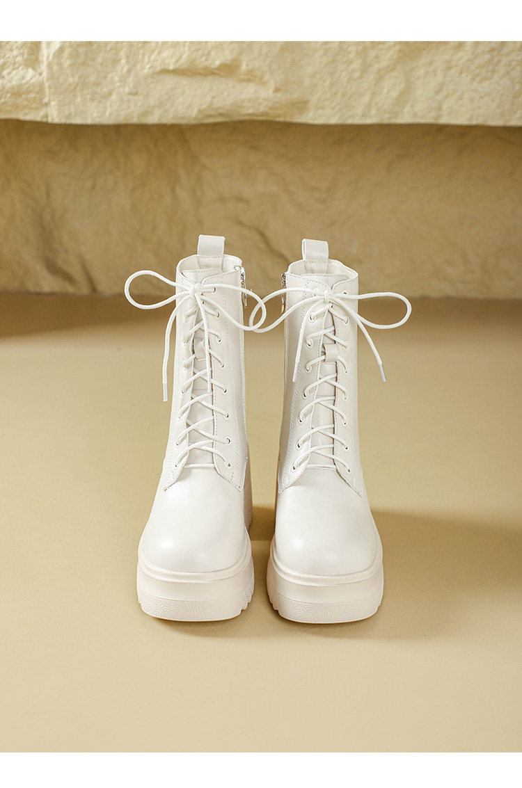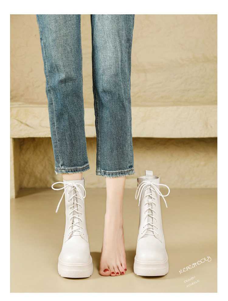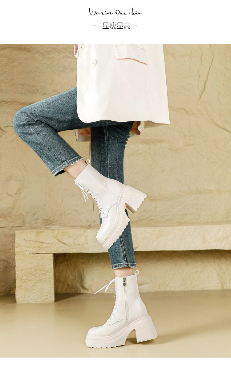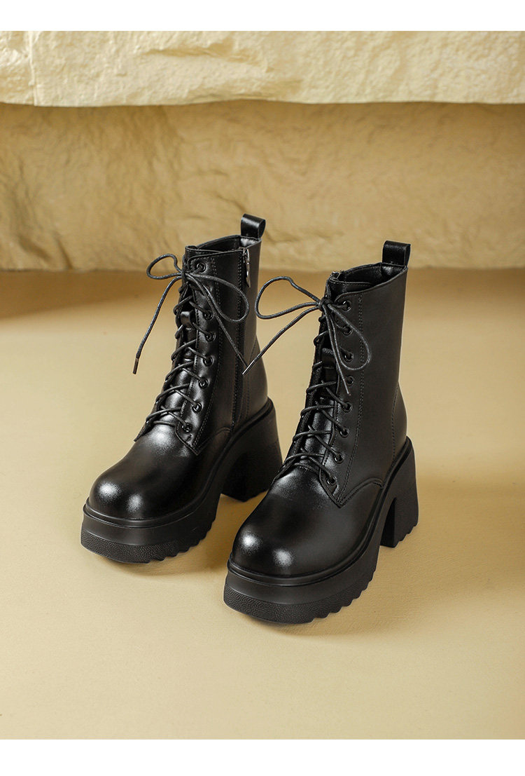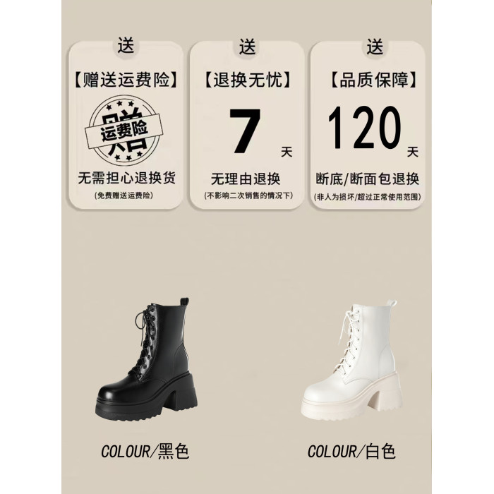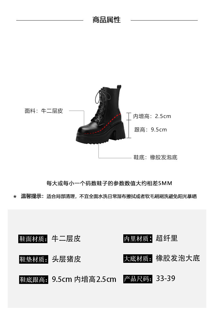 超高跟12cm馬丁靴女粗跟小個子2025新款圓頭系帶厚底內增高短靴子