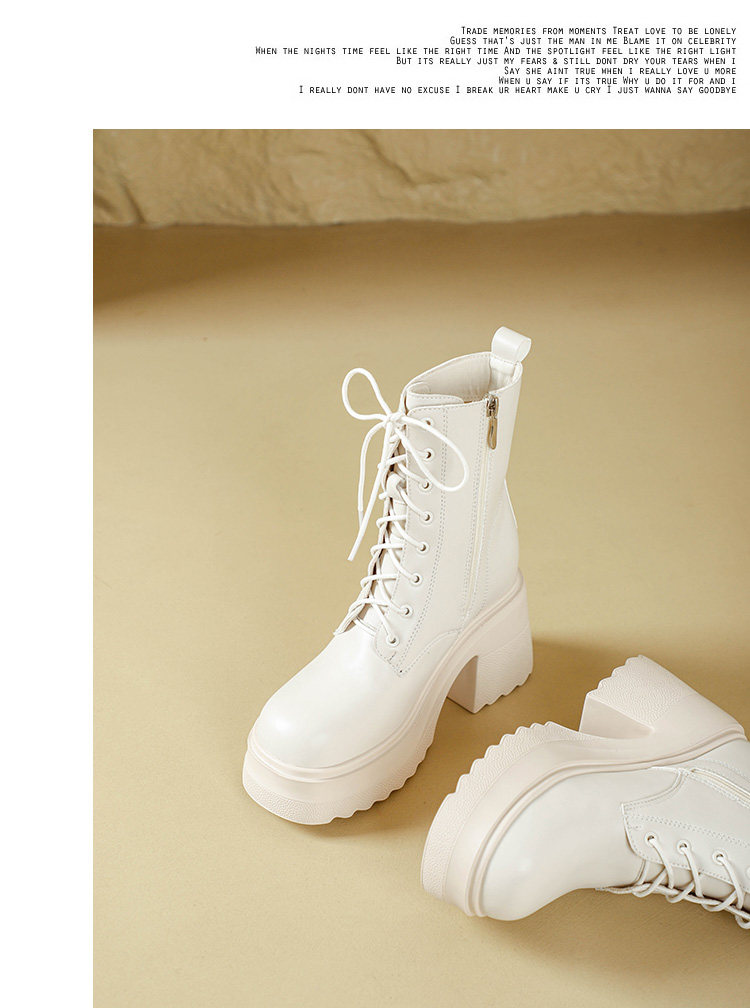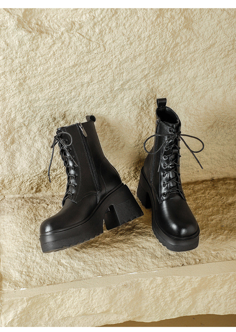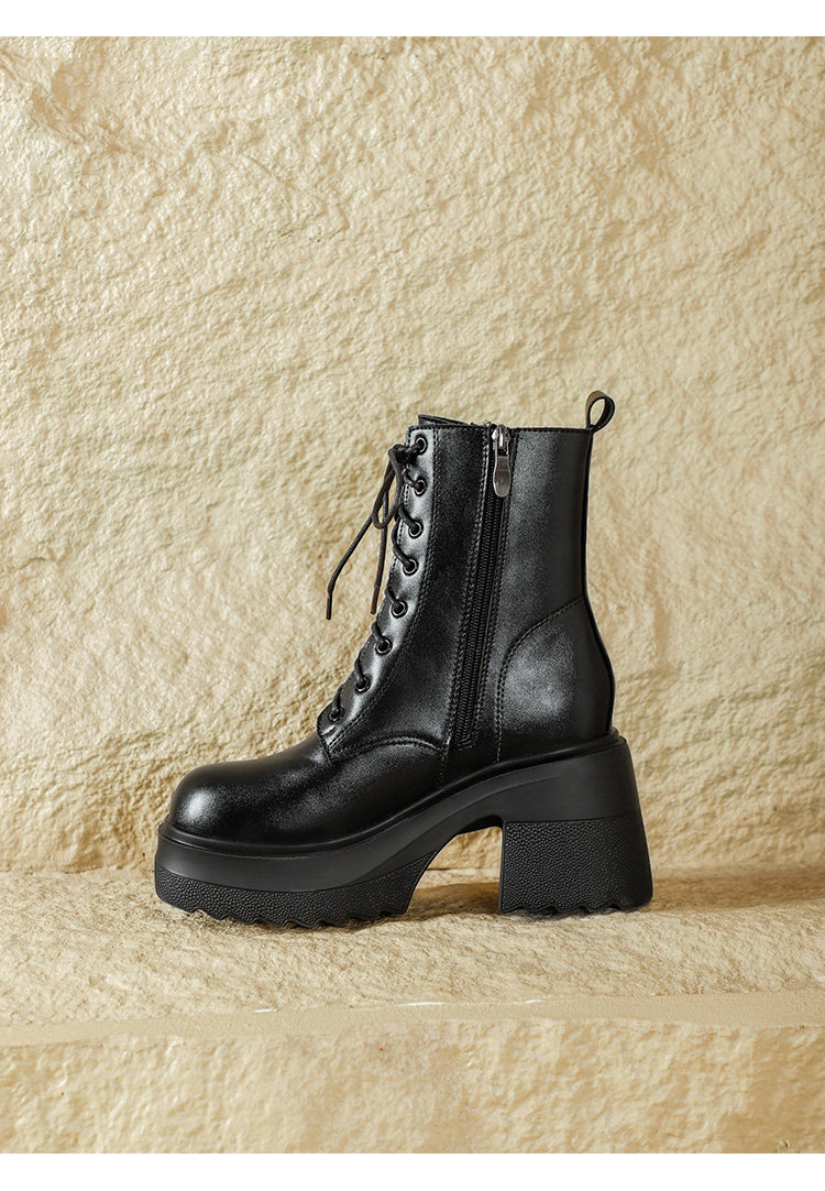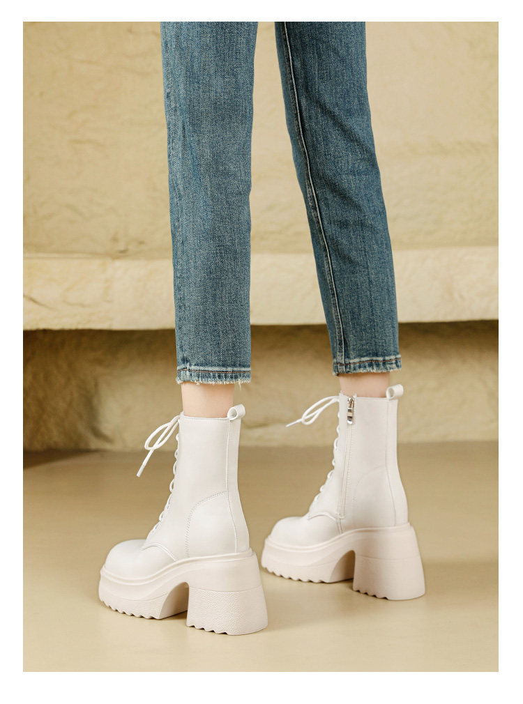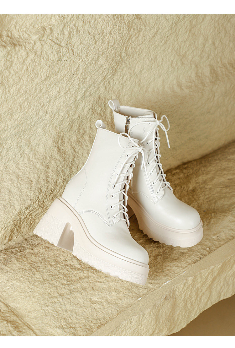 超高跟12cm馬丁靴女粗跟小個子2025新款圓頭系帶厚底內增高短靴子