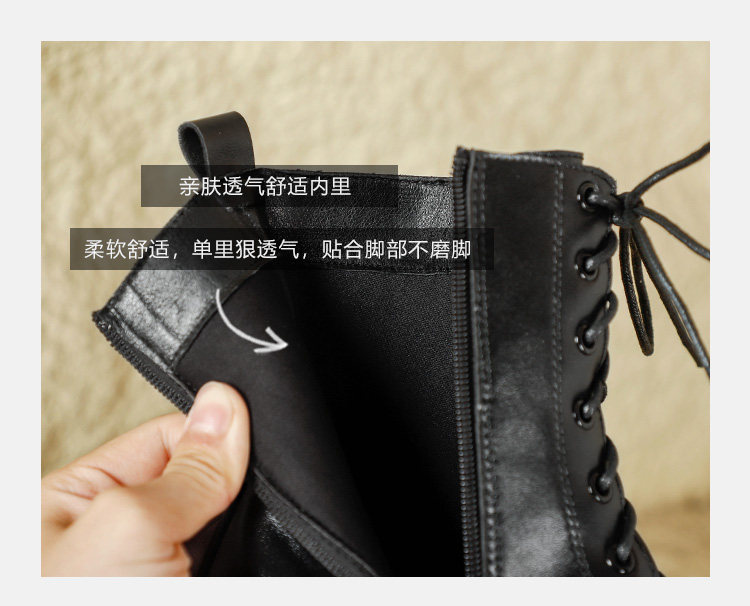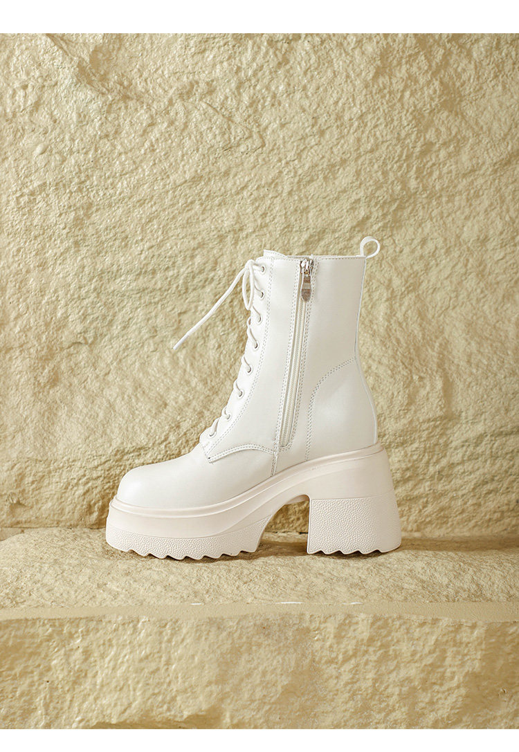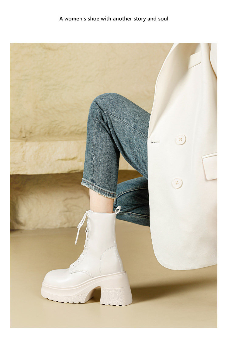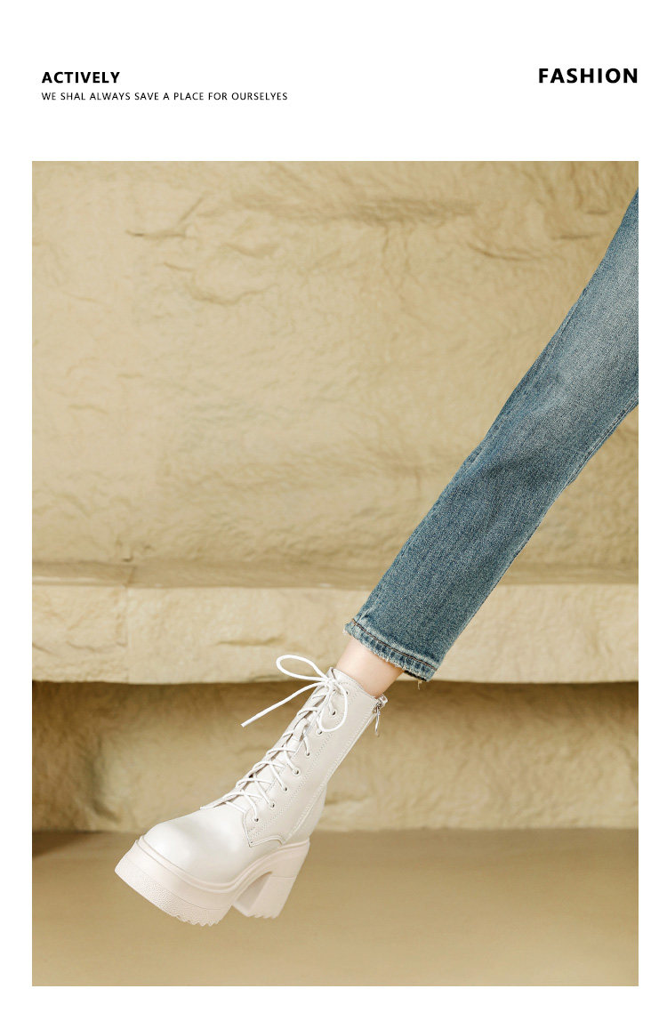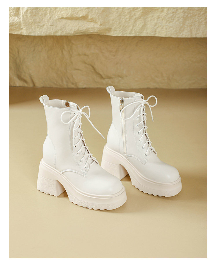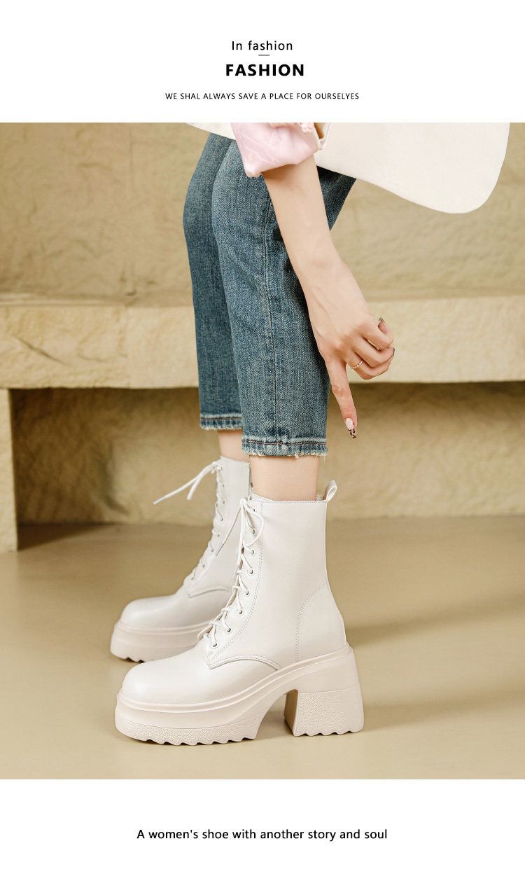 超高跟12cm馬丁靴女粗跟小個子2025新款圓頭系帶厚底內增高短靴子
