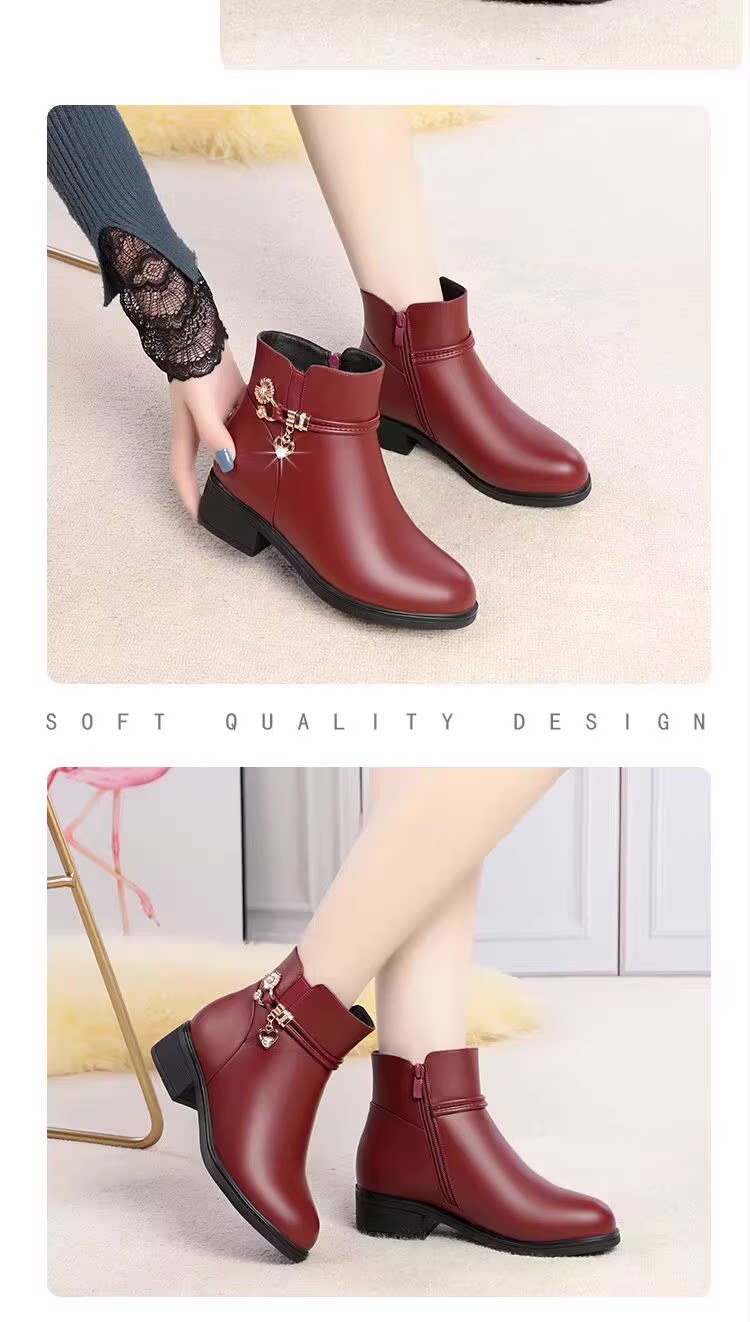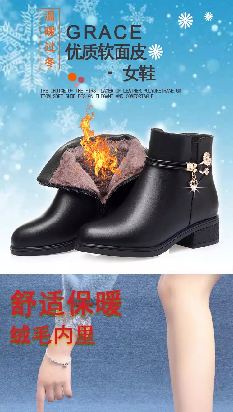舒適媽媽棉鞋軟皮女鞋短靴2025爆款秋冬季女靴子保暖中老年皮鞋女