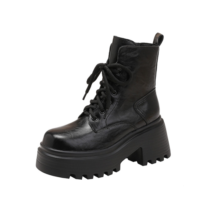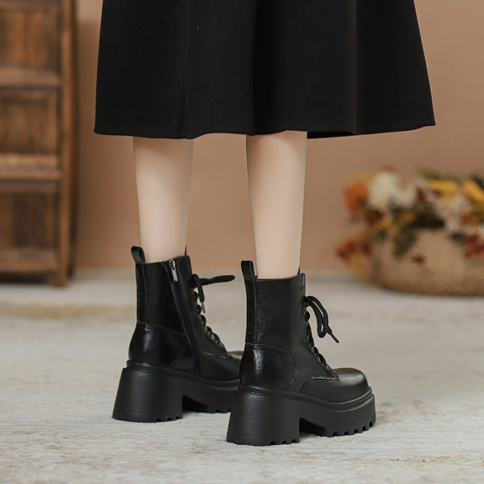 小個子真皮馬丁靴女秋冬季加絨厚底內增高女靴棕色爆款英倫風短靴