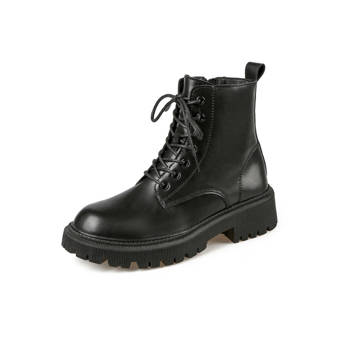 2025秋冬真皮靴子女軟底馬丁靴厚底英倫風短靴時尚舒適加絨騎士靴