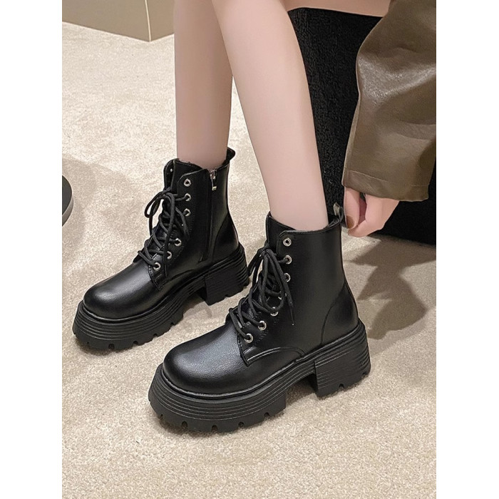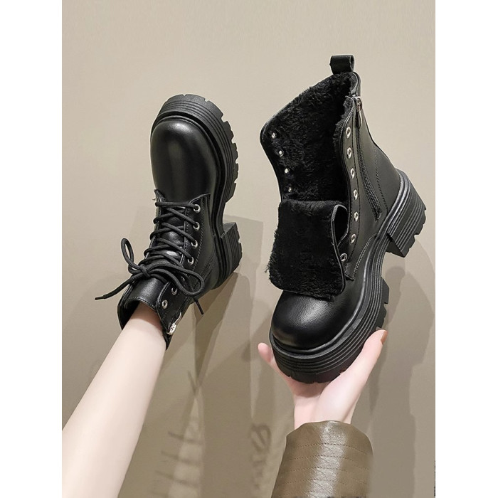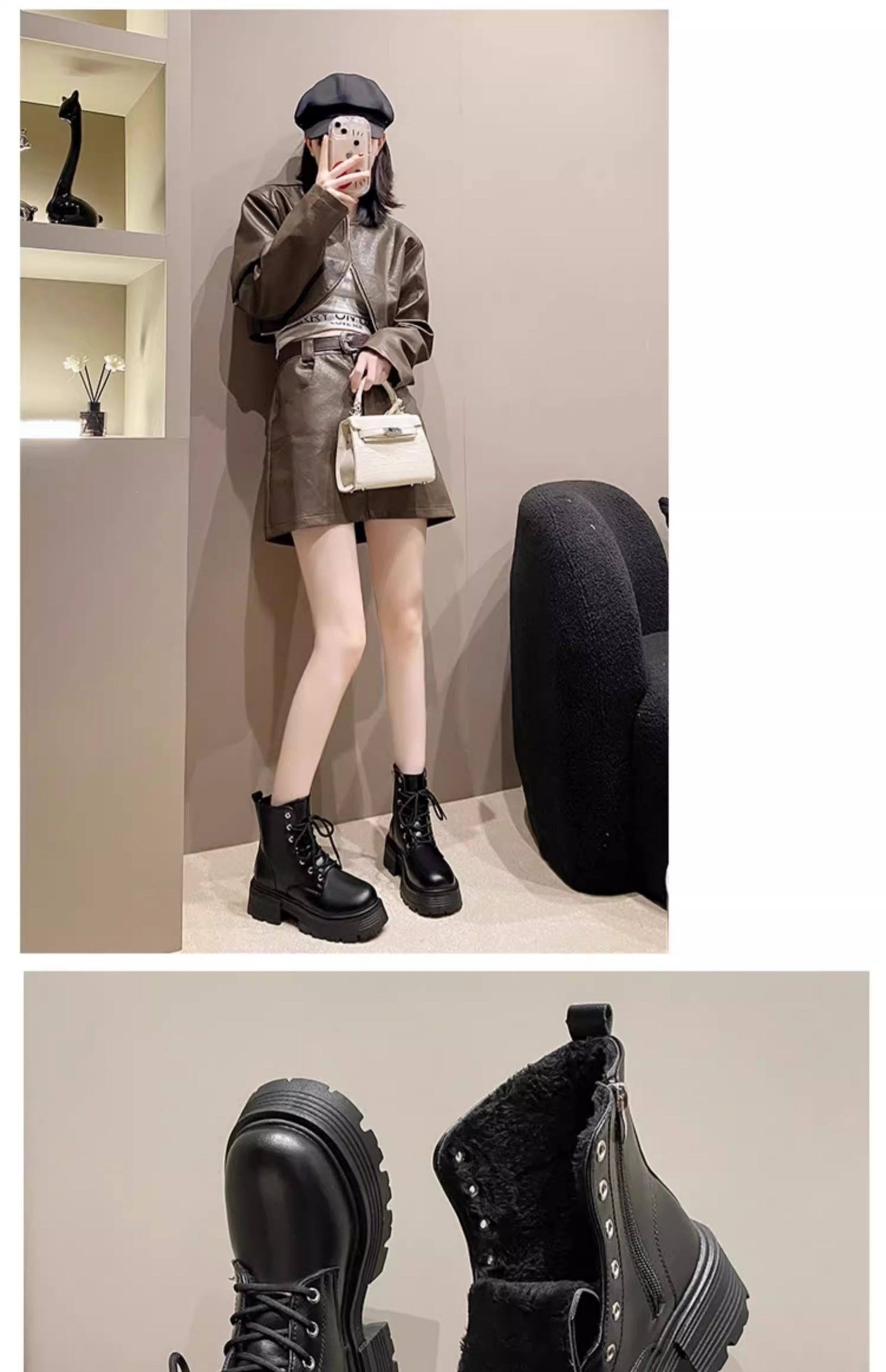 厚底馬丁靴女款2026新款秋冬加絨棉靴英倫風短靴軟底防滑瘦瘦靴