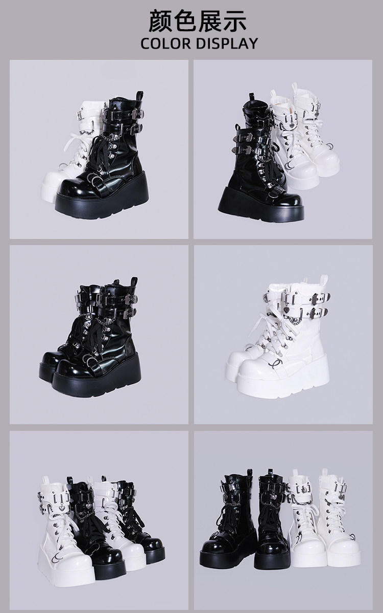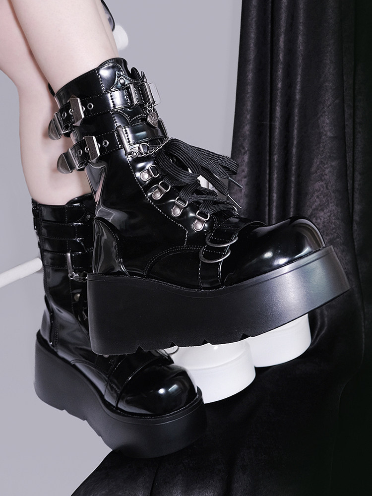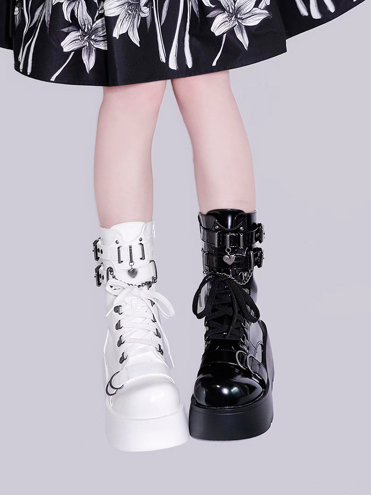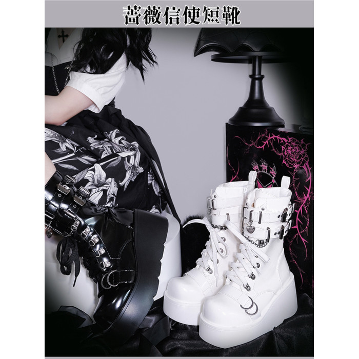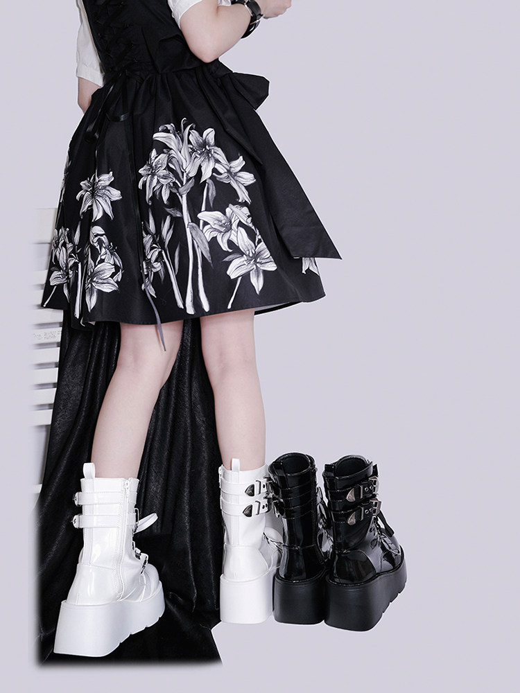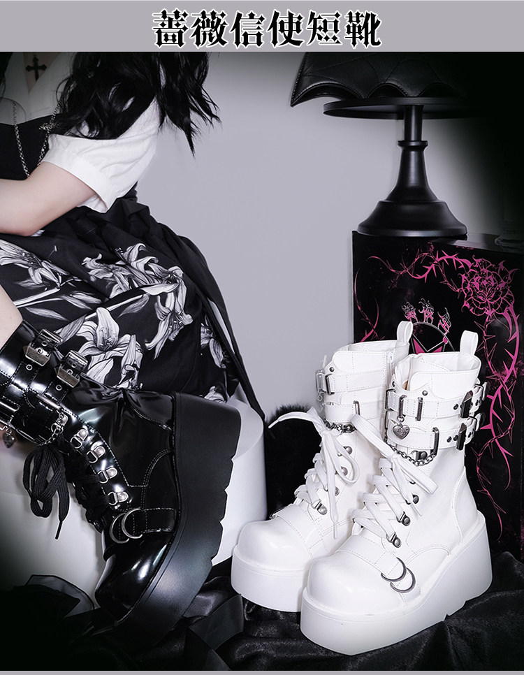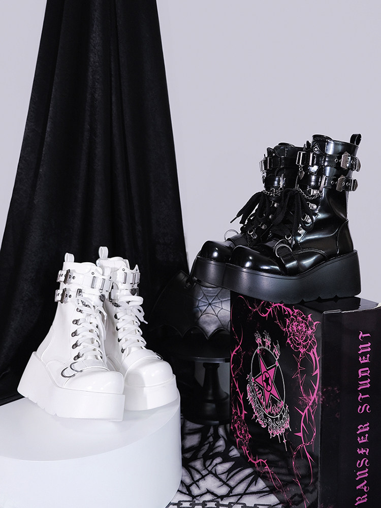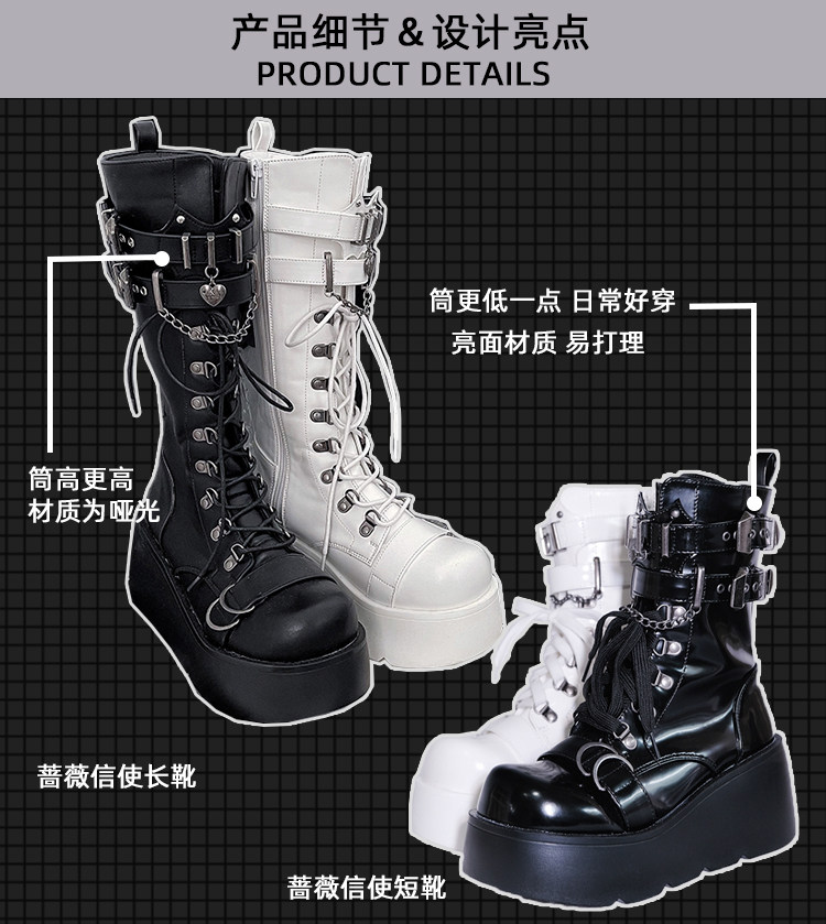 轉校生 薔薇短靴 aespa同款原創亞文化騎士短靴松糕底馬丁靴短靴