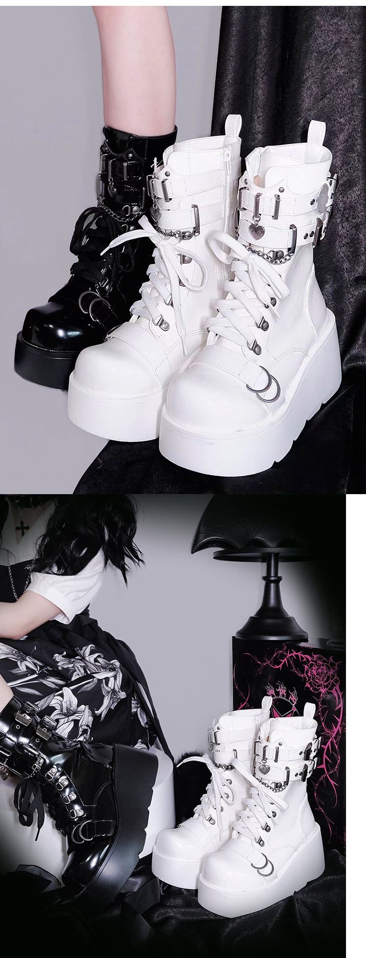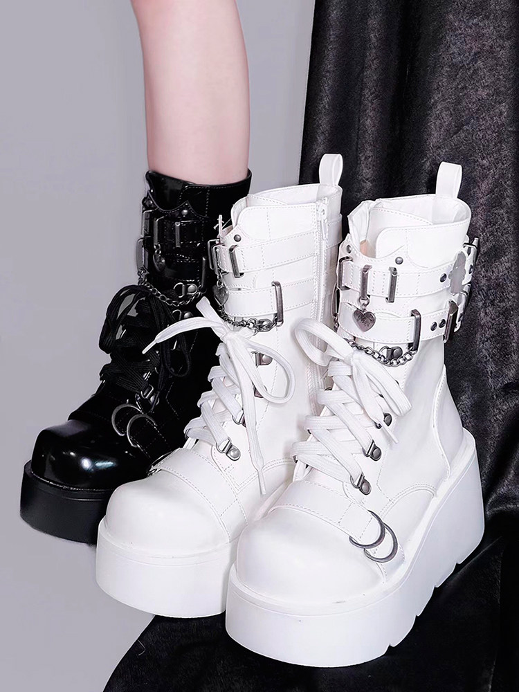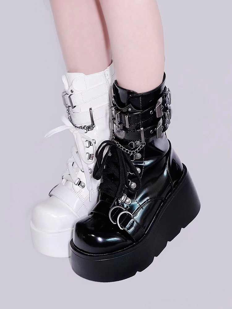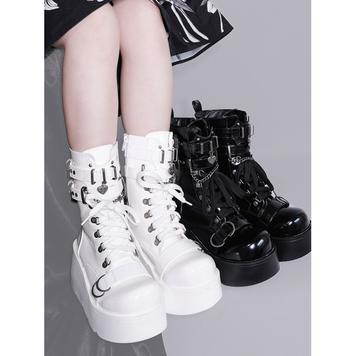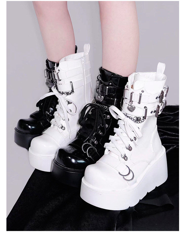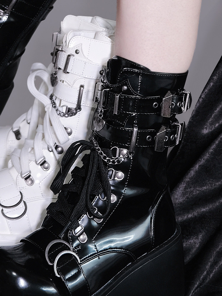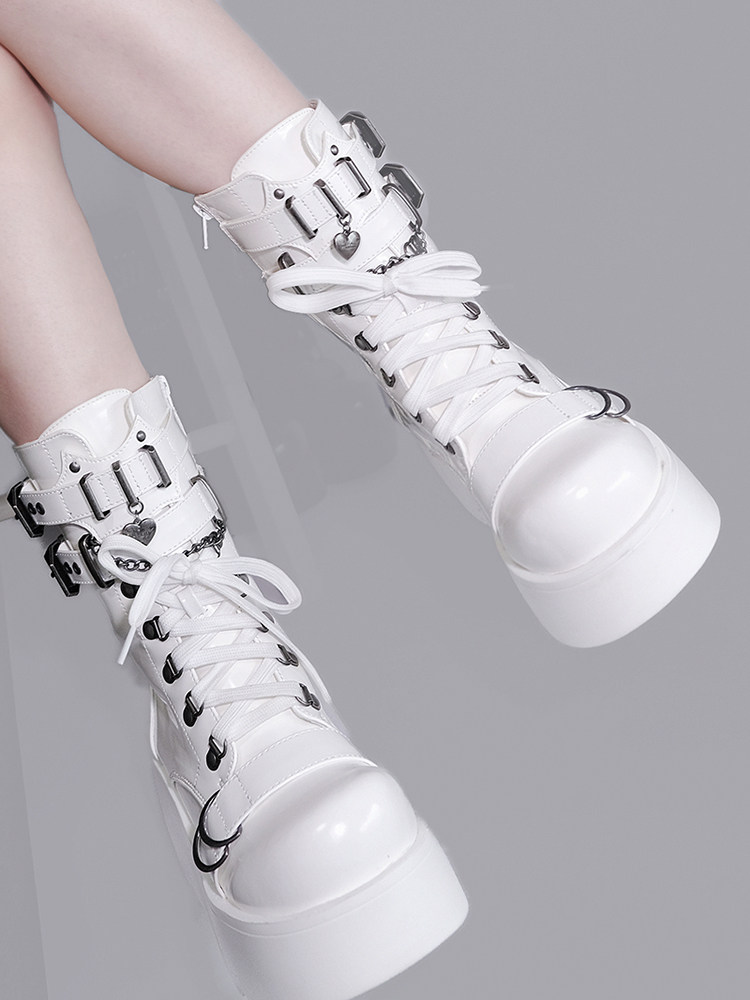 轉校生 薔薇短靴 aespa同款原創亞文化騎士短靴松糕底馬丁靴短靴
