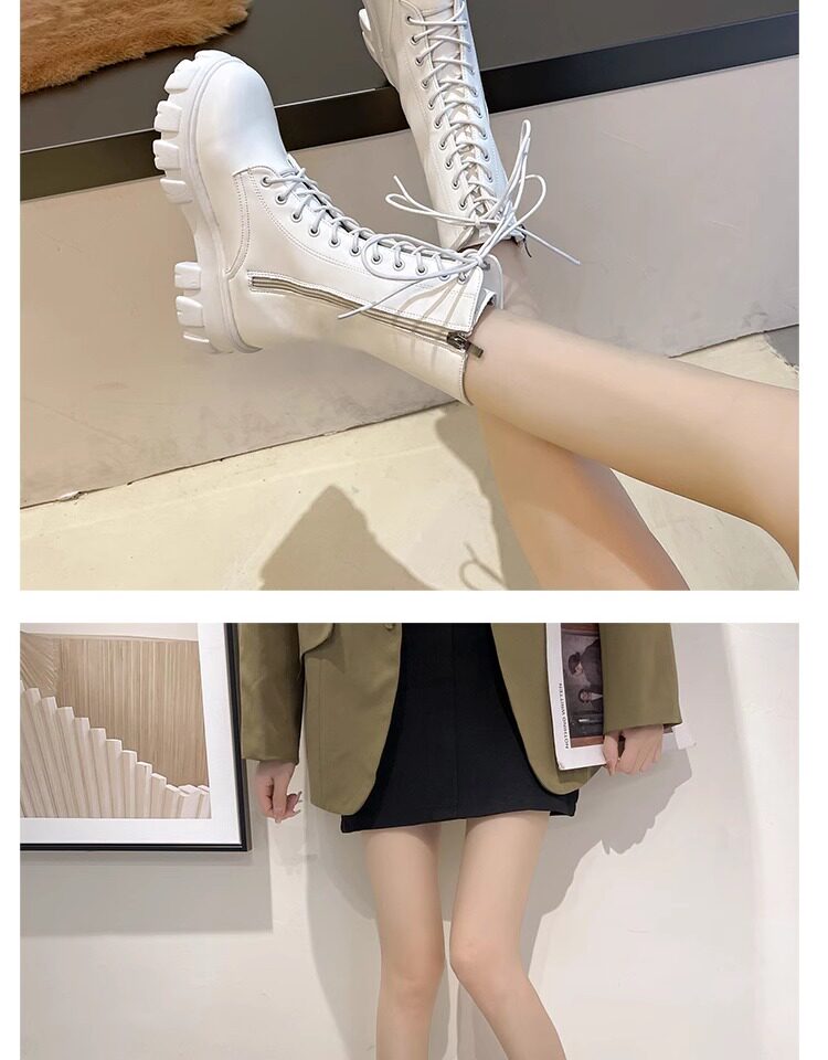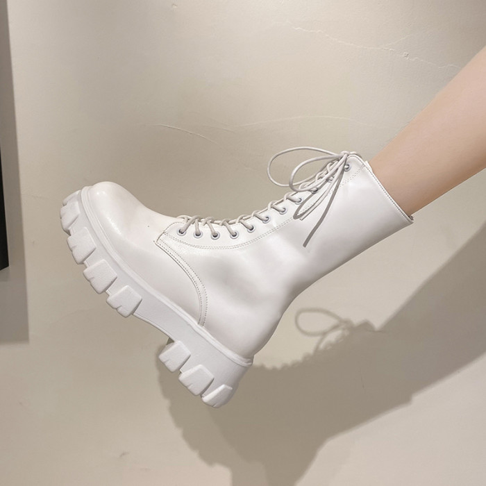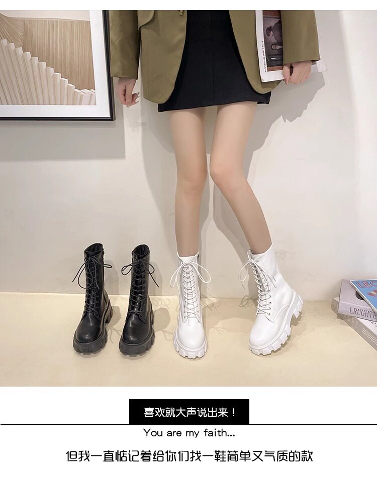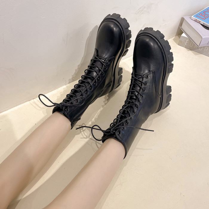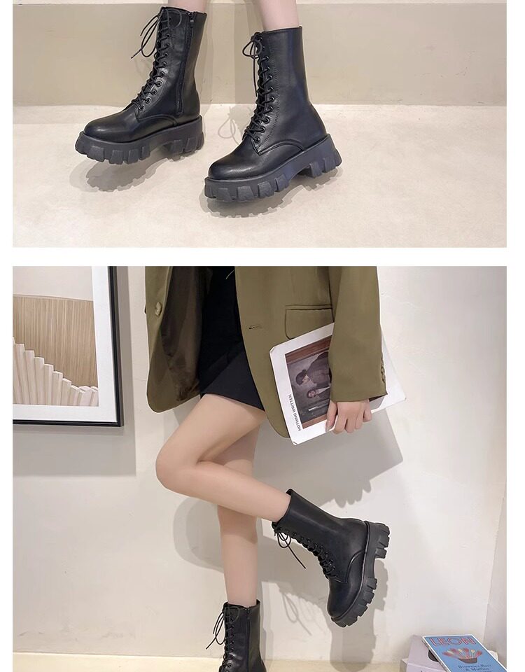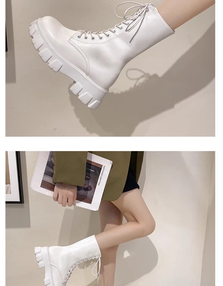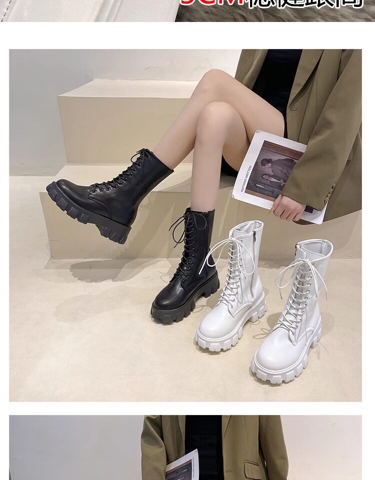 英倫風時尚百搭馬丁靴女2025年春季小個子厚底增高系帶休閒中筒靴