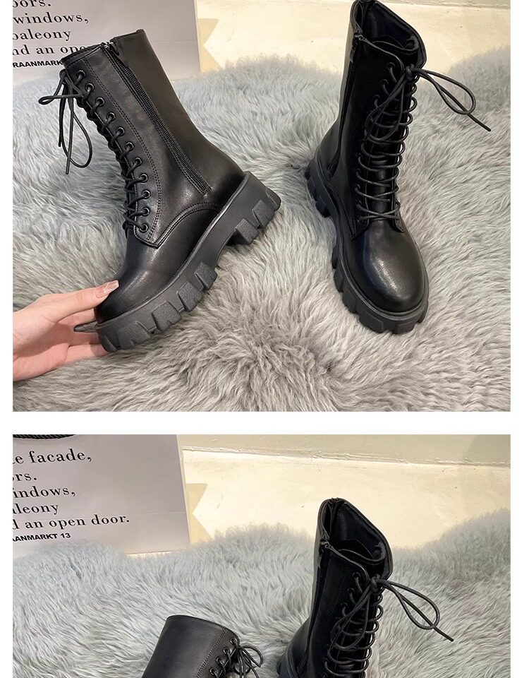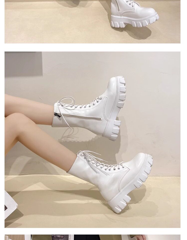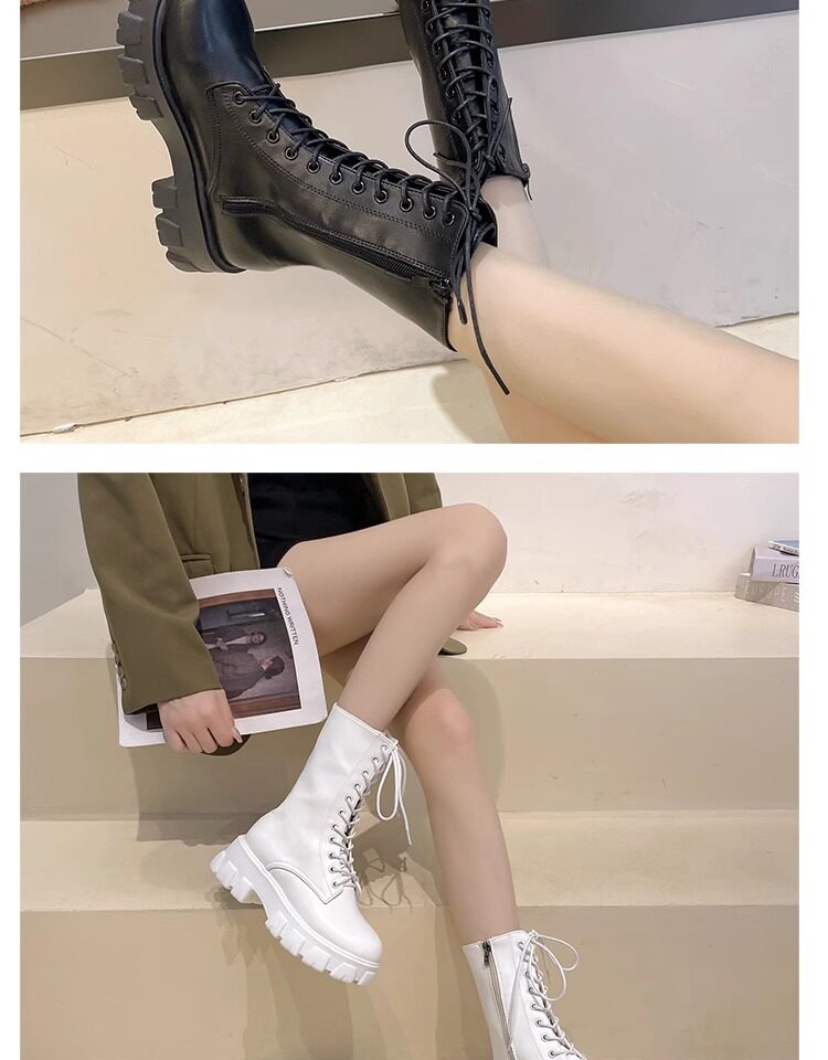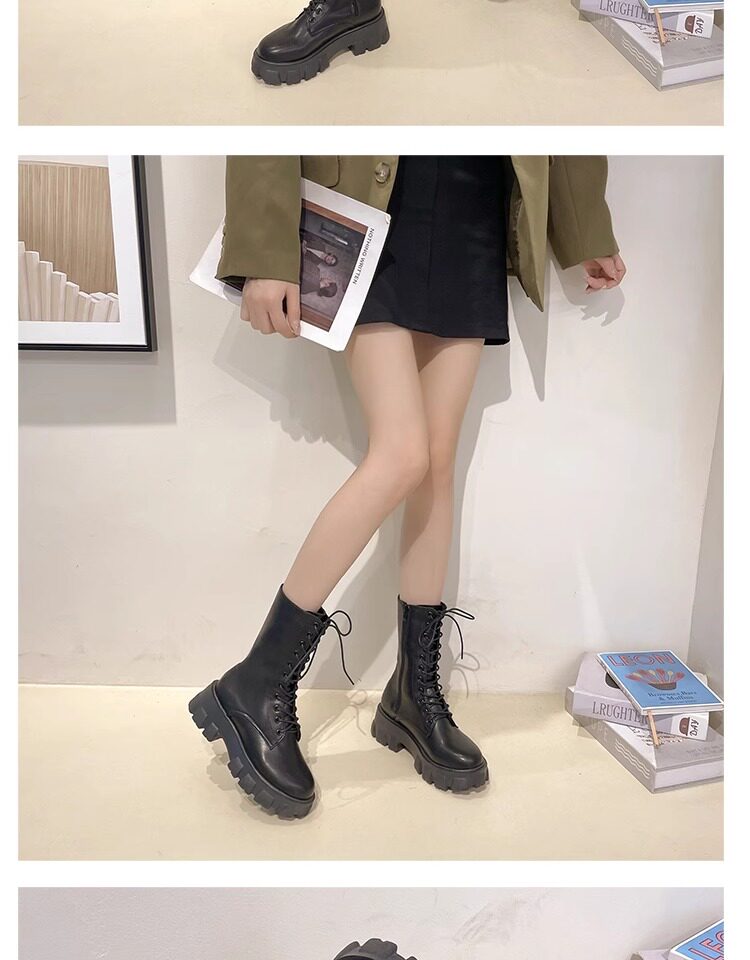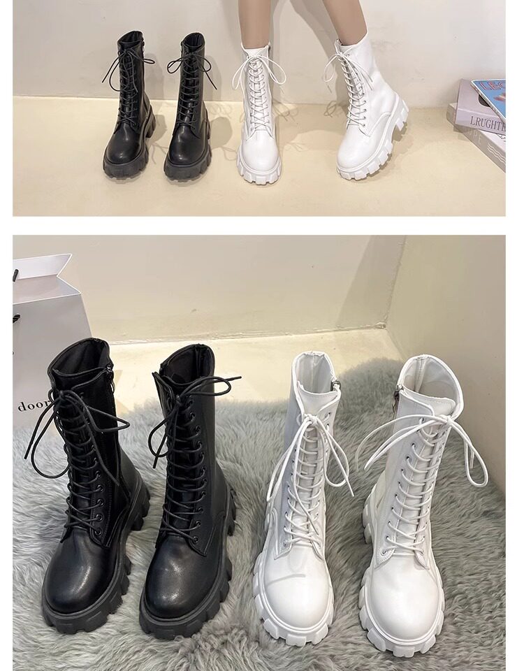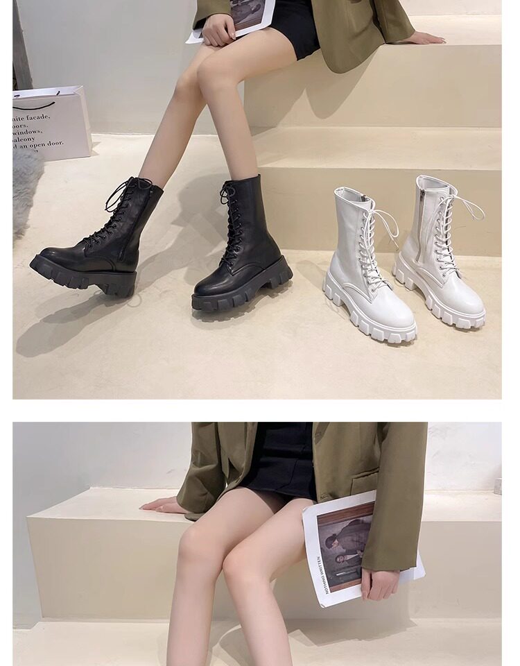 英倫風時尚百搭馬丁靴女2025年春季小個子厚底增高系帶休閒中筒靴