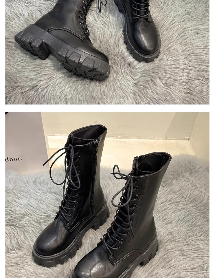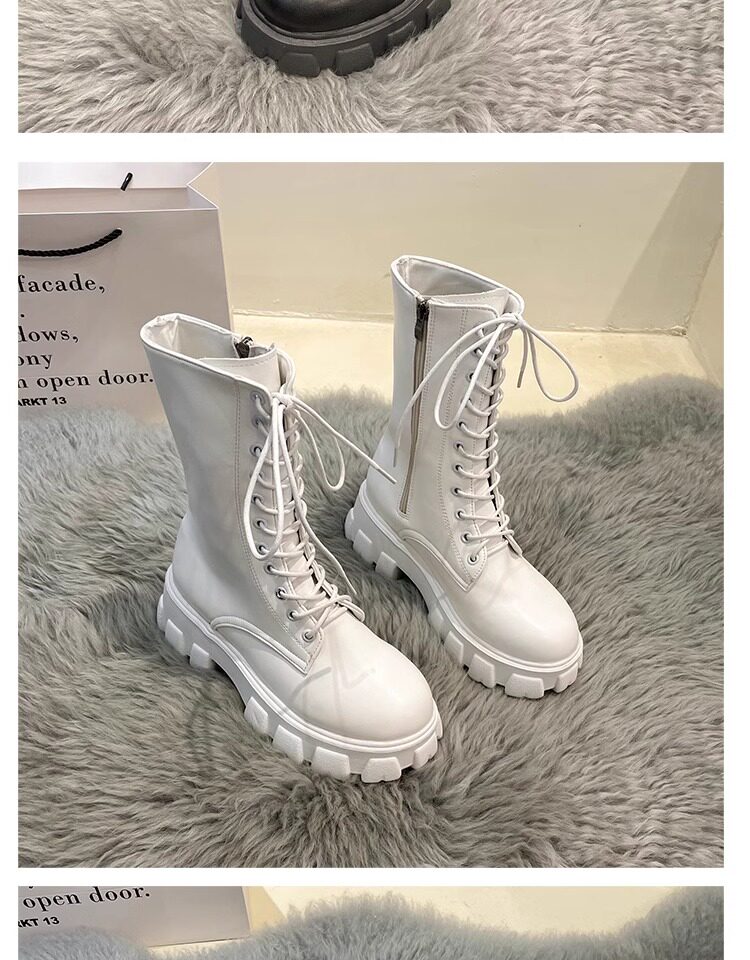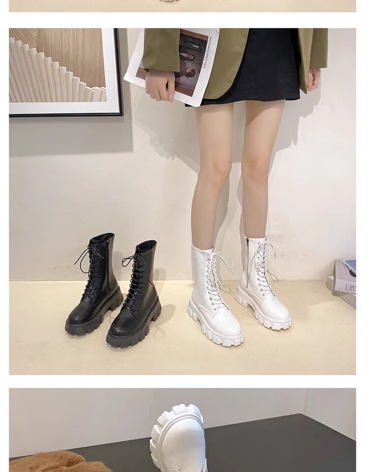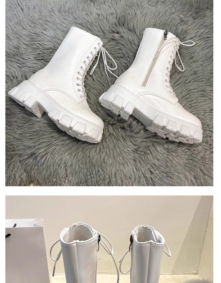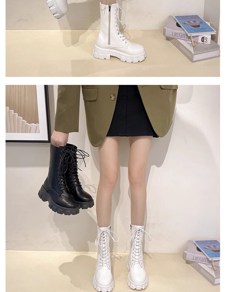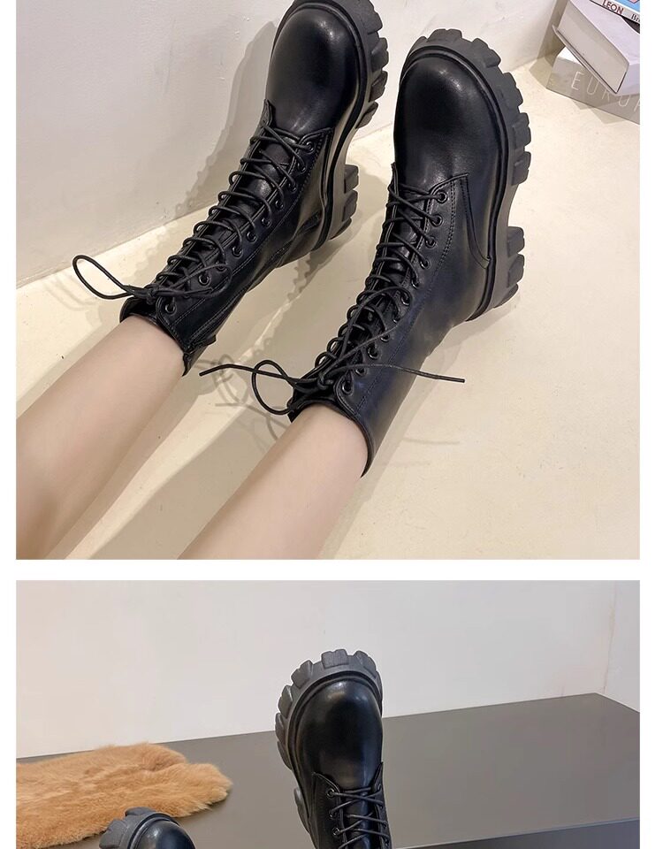 英倫風時尚百搭馬丁靴女2025年春季小個子厚底增高系帶休閒中筒靴