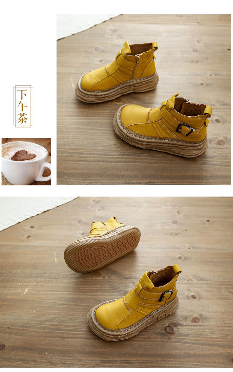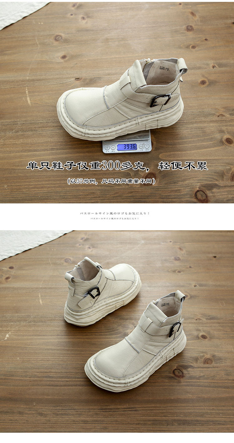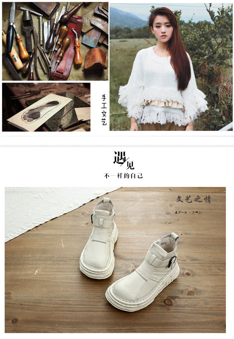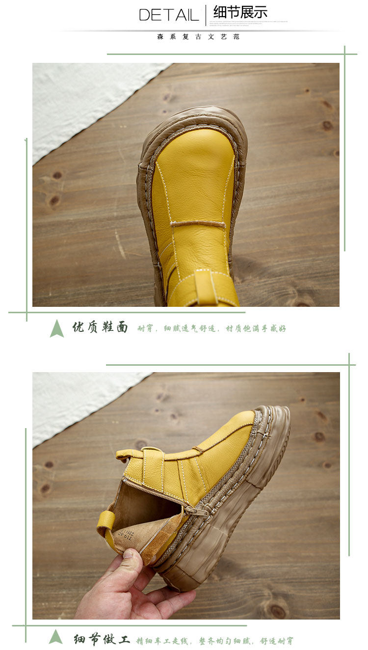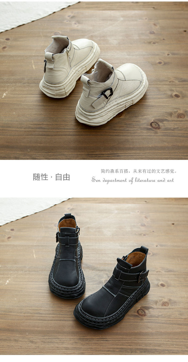 森女系復古文藝牛皮切爾西靴厚底保暖拉鍊大頭馬丁靴手工顯瘦短靴