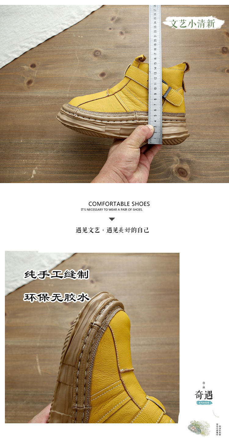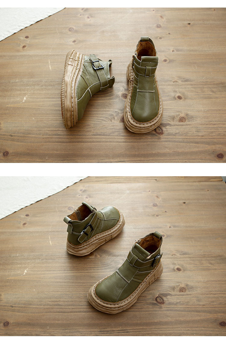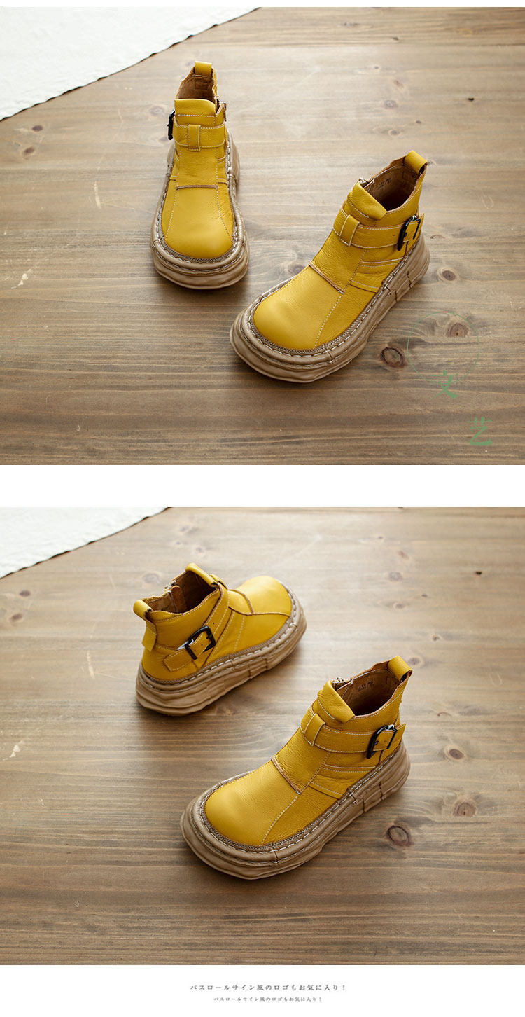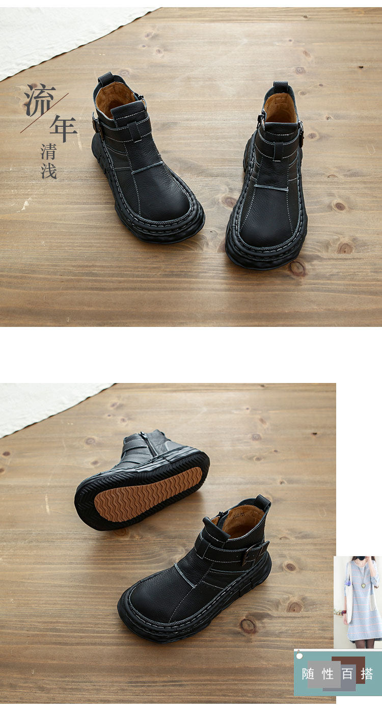 森女系復古文藝牛皮切爾西靴厚底保暖拉鍊大頭馬丁靴手工顯瘦短靴