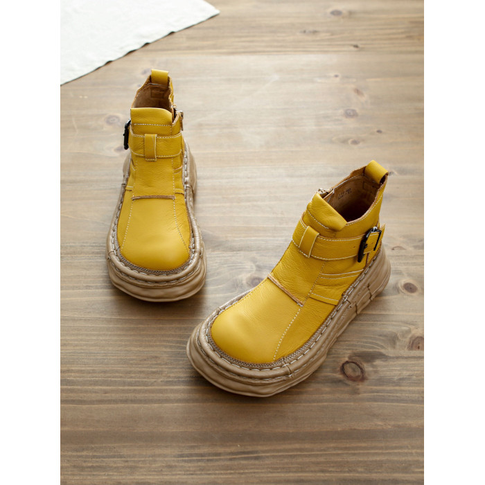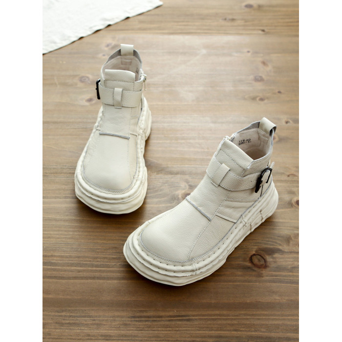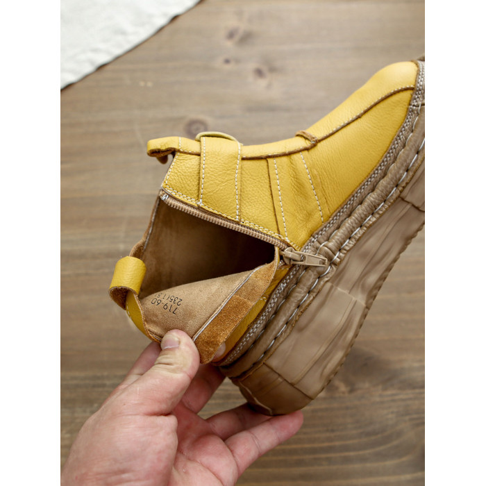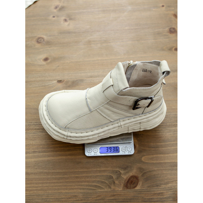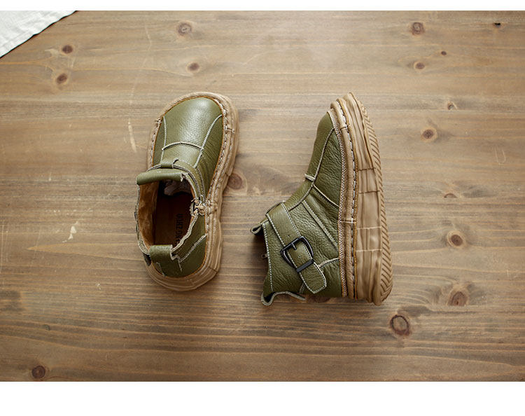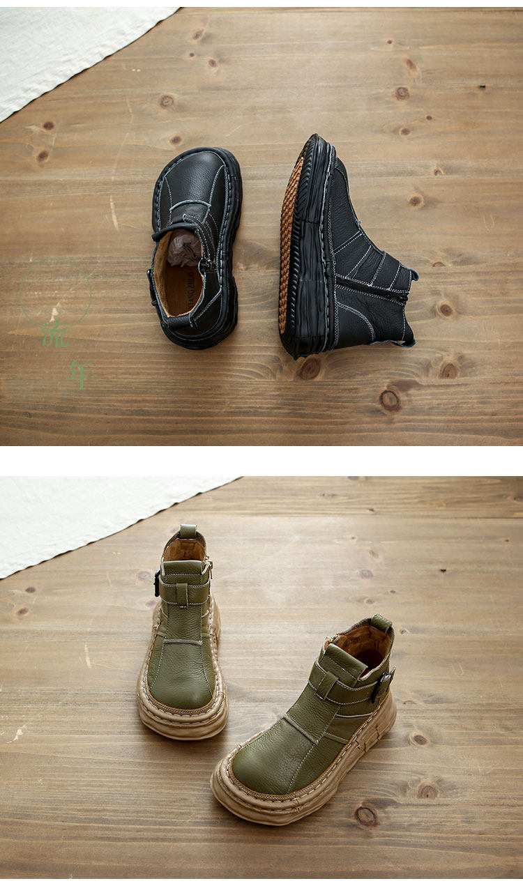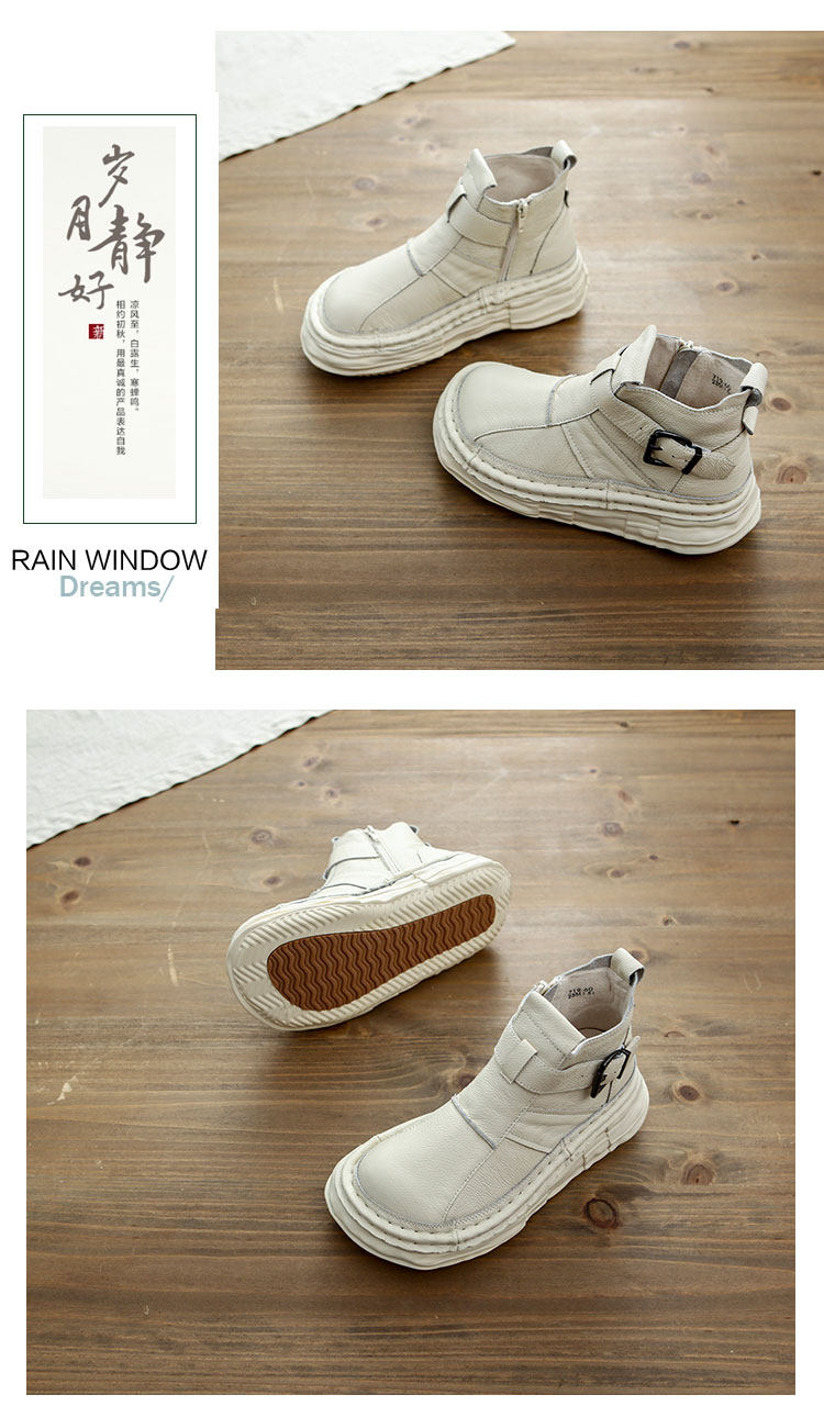森女系復古文藝牛皮切爾西靴厚底保暖拉鍊大頭馬丁靴手工顯瘦短靴
