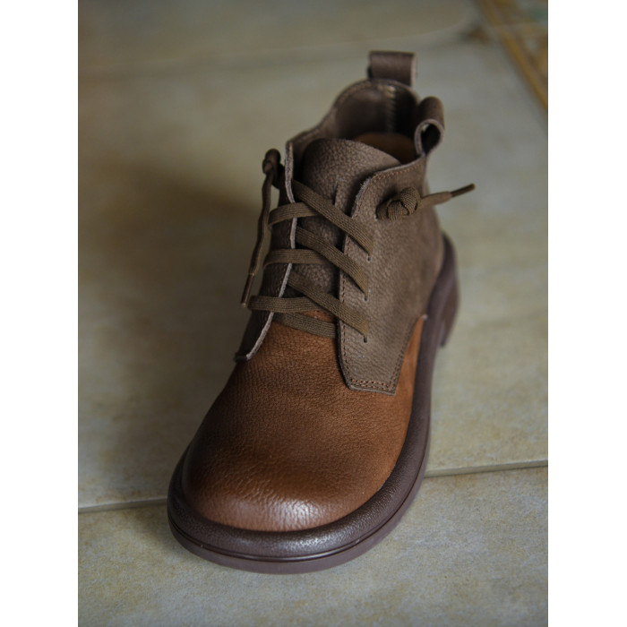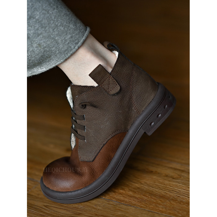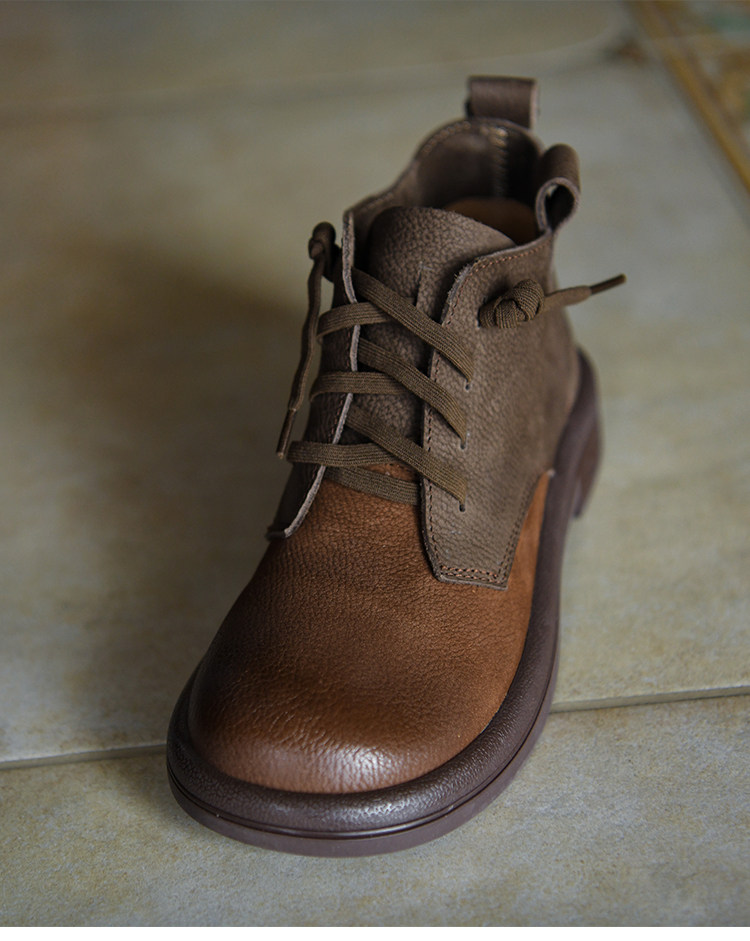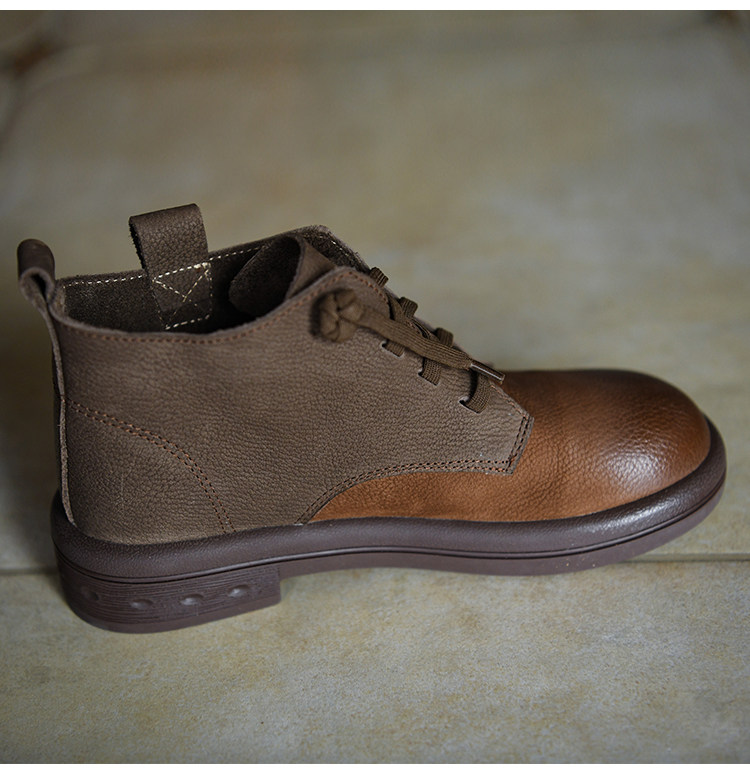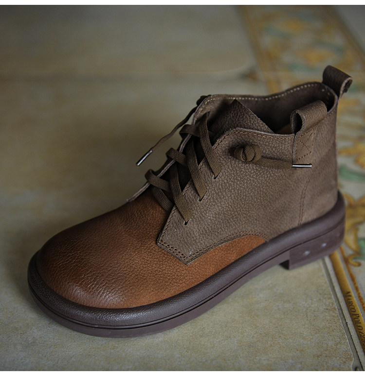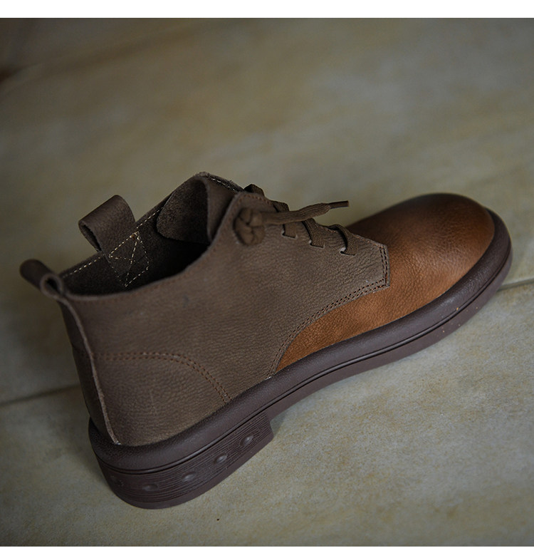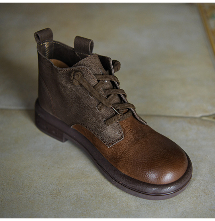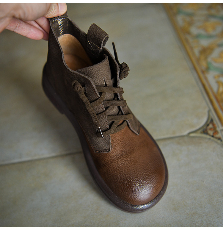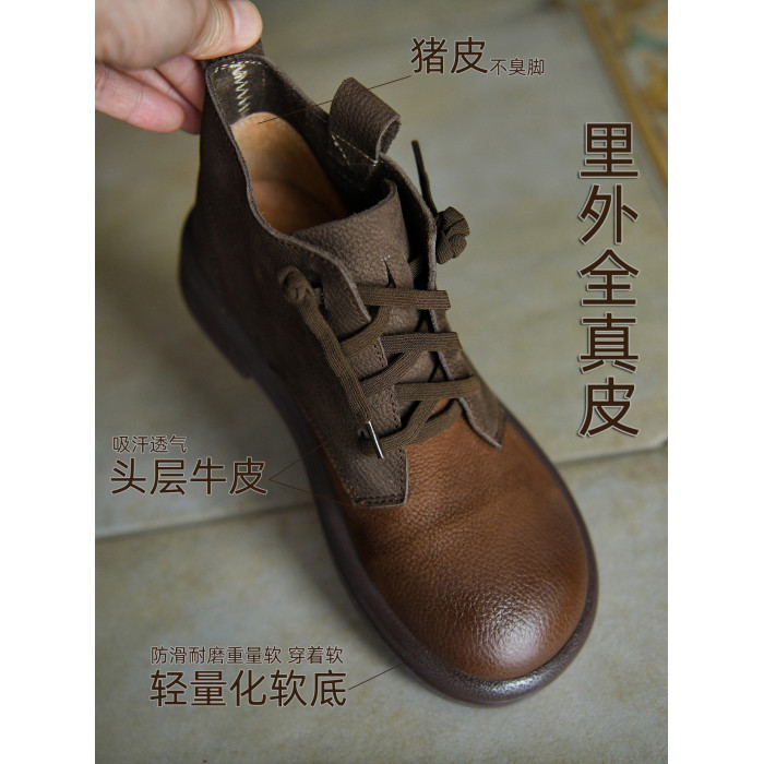 何其醜 頭層牛皮系帶馬丁靴女平底女靴真皮短靴2025新款秋冬女鞋