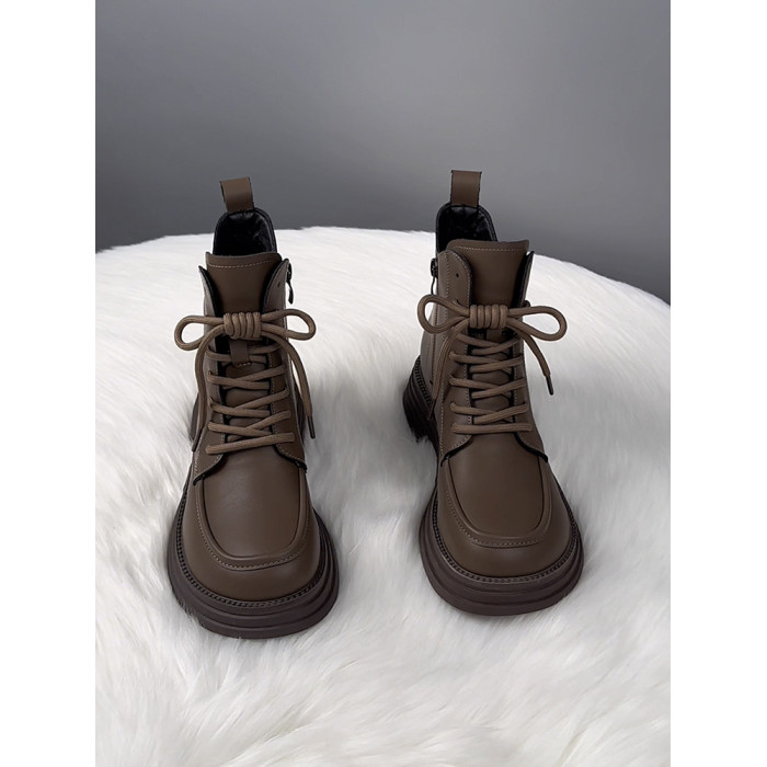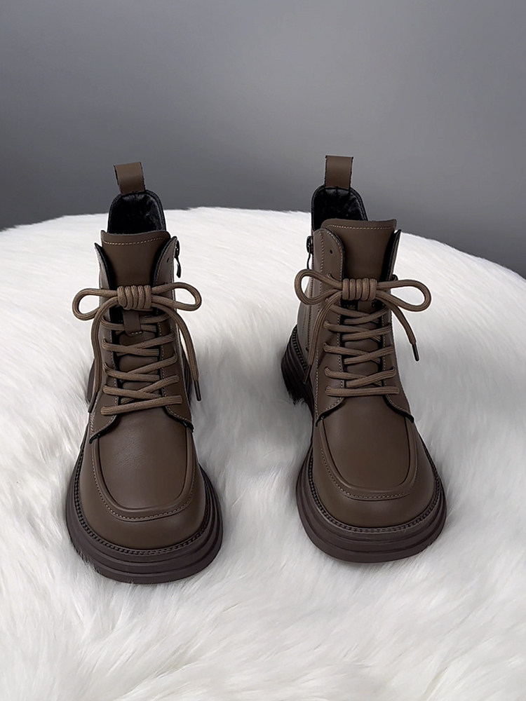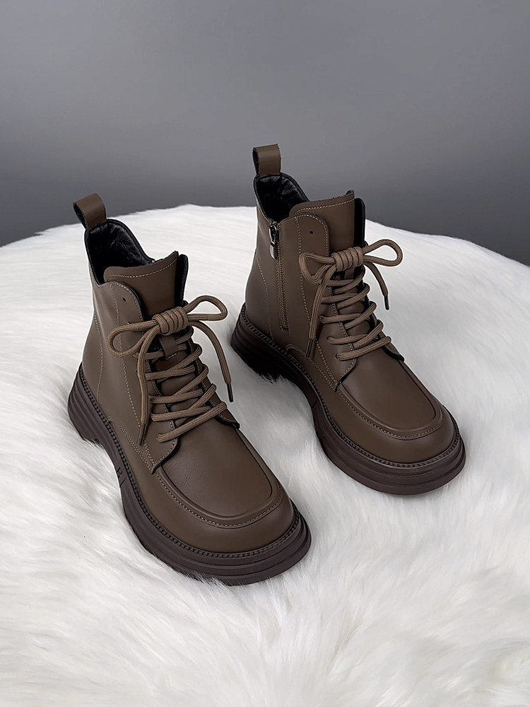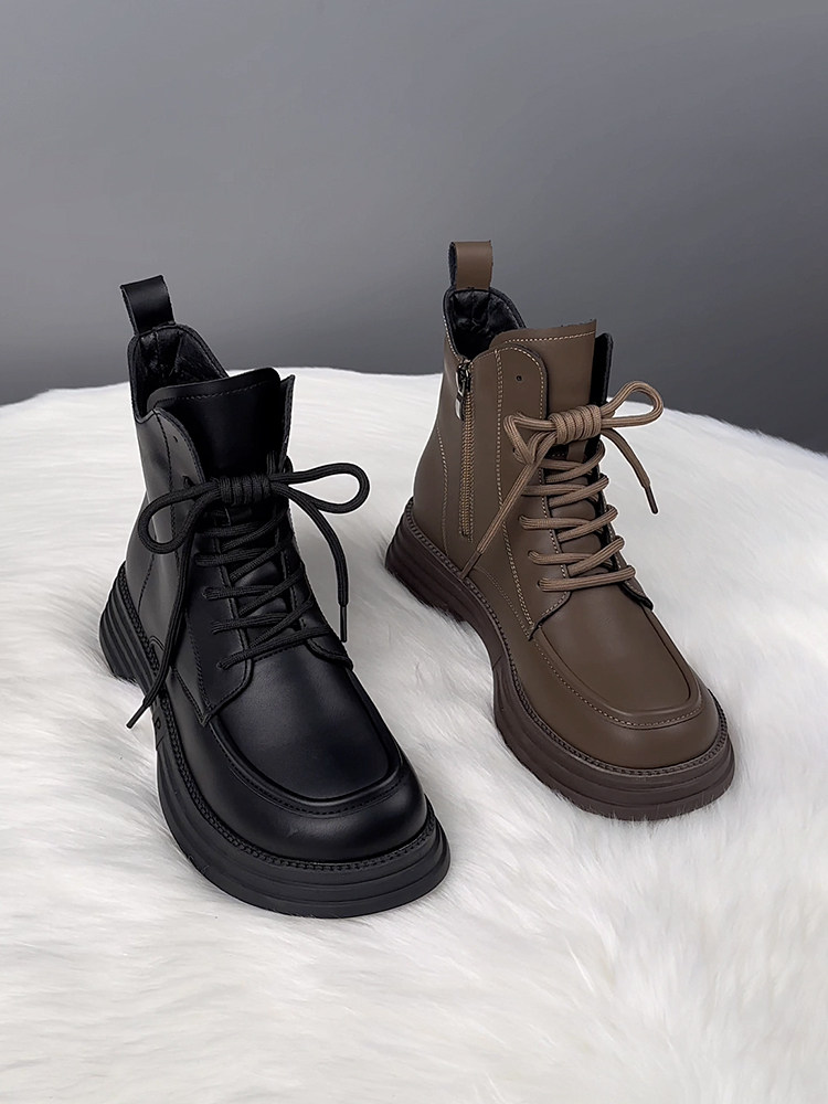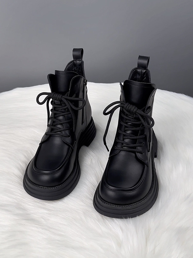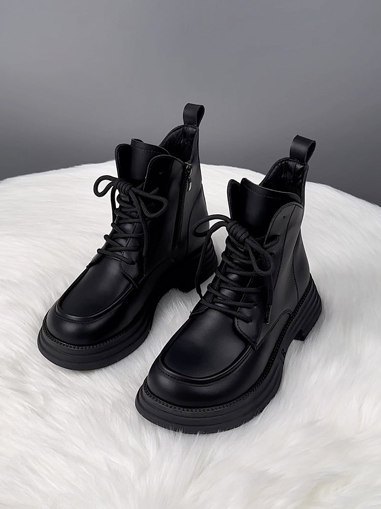 萬達品牌撤櫃真皮馬丁靴女2025新款春季英倫風厚底短靴女百搭單靴