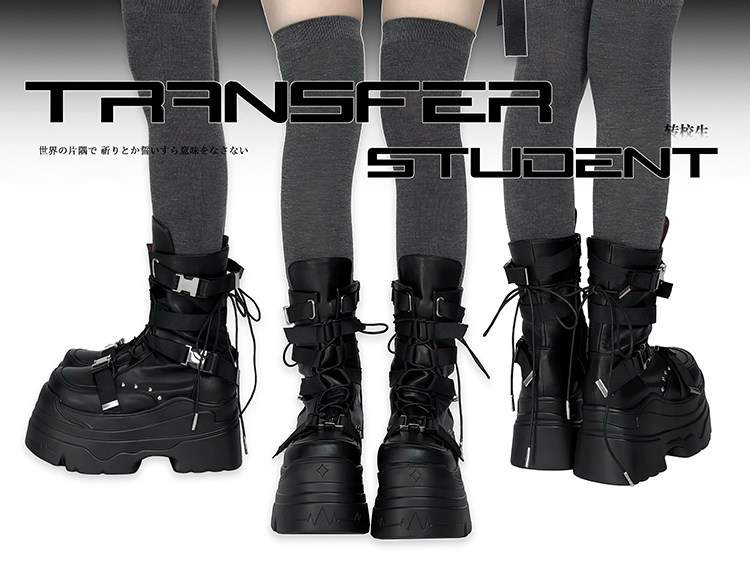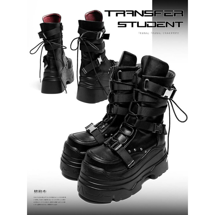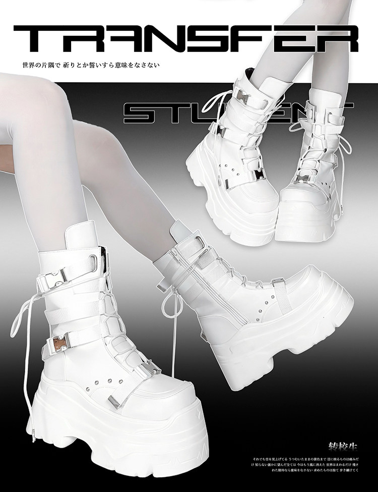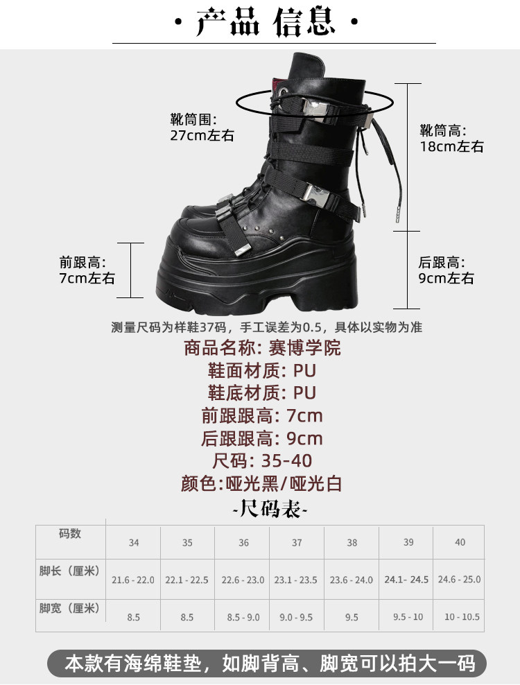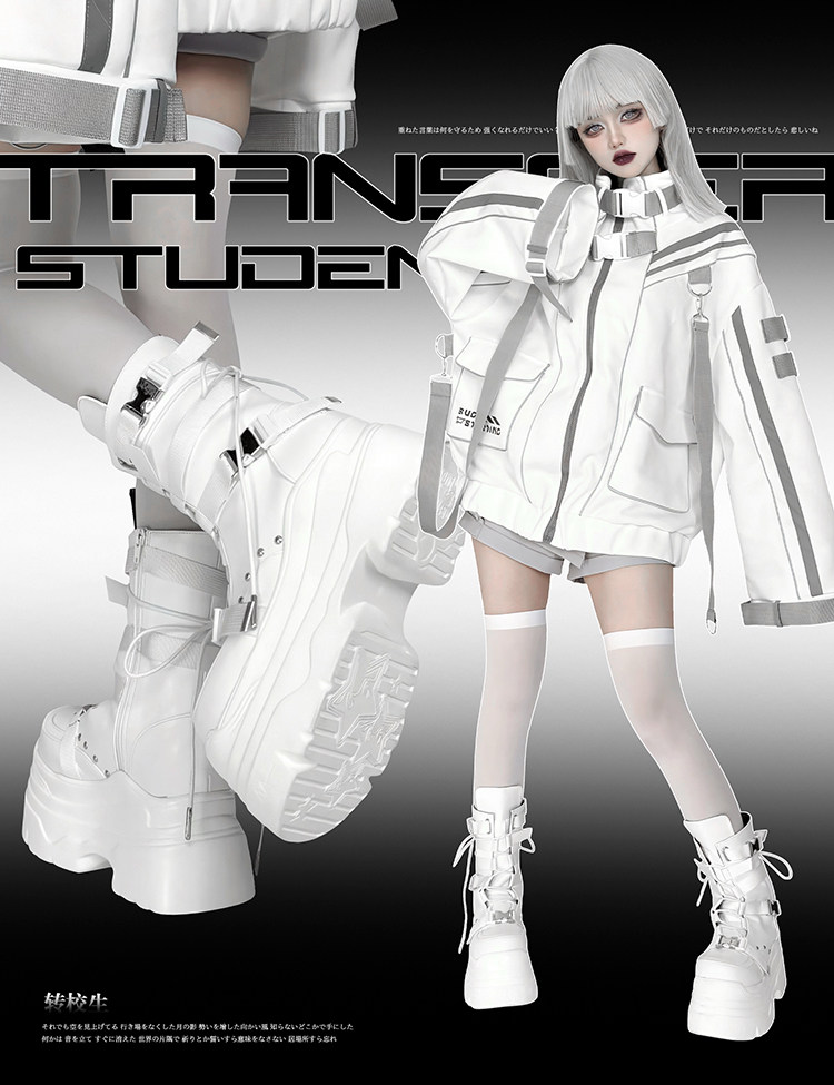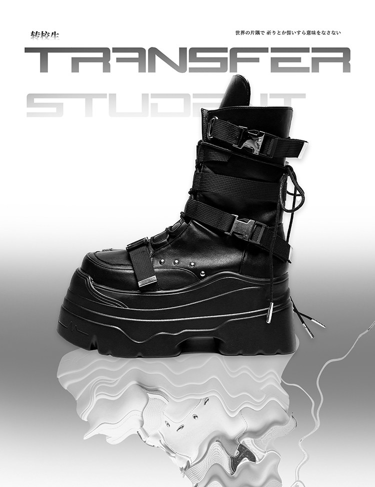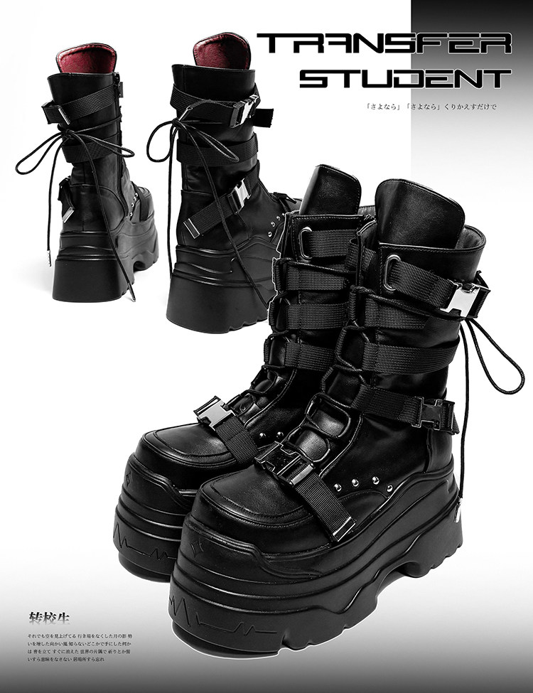 轉校生 賽博學院 原創亞文化厚底馬丁靴龐克風辣妹短靴機能風靴子