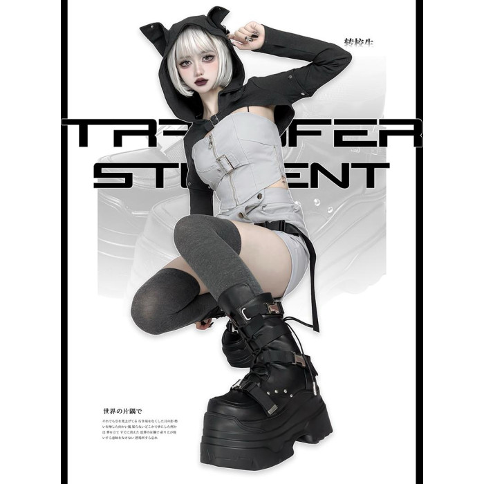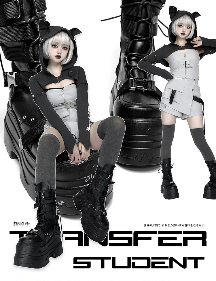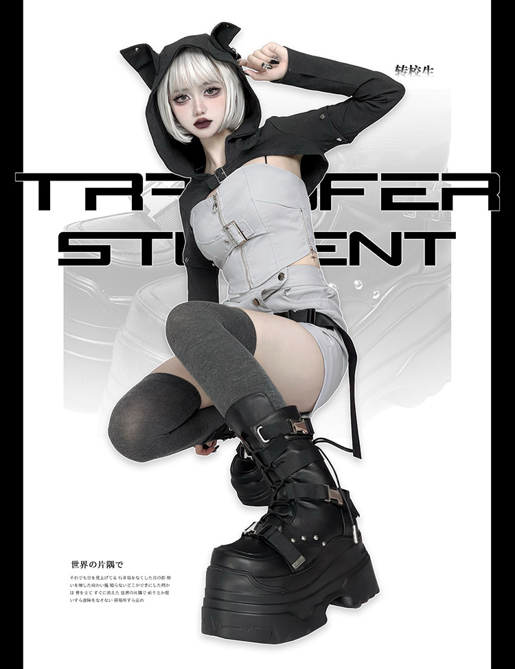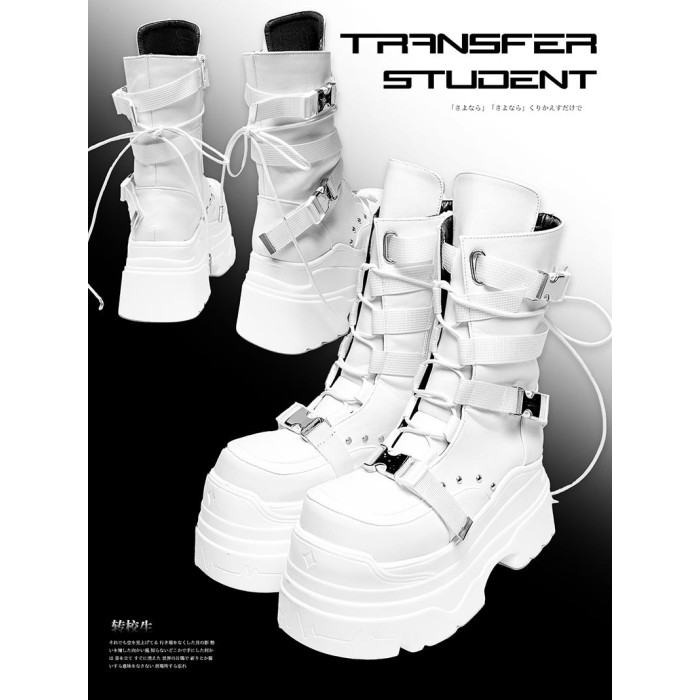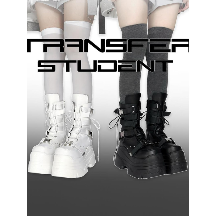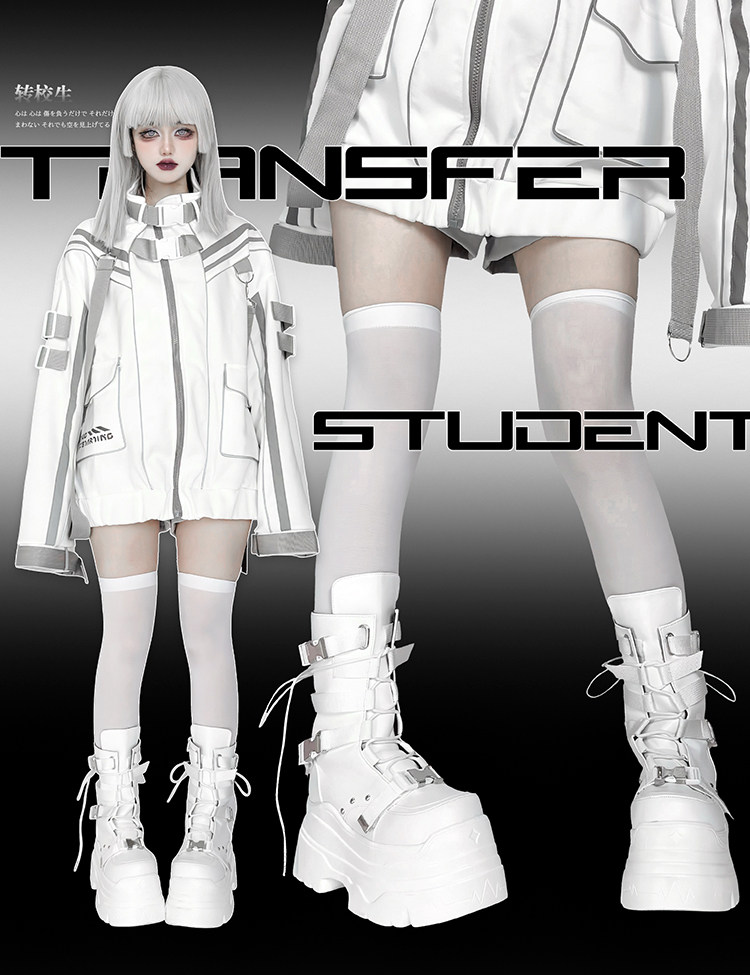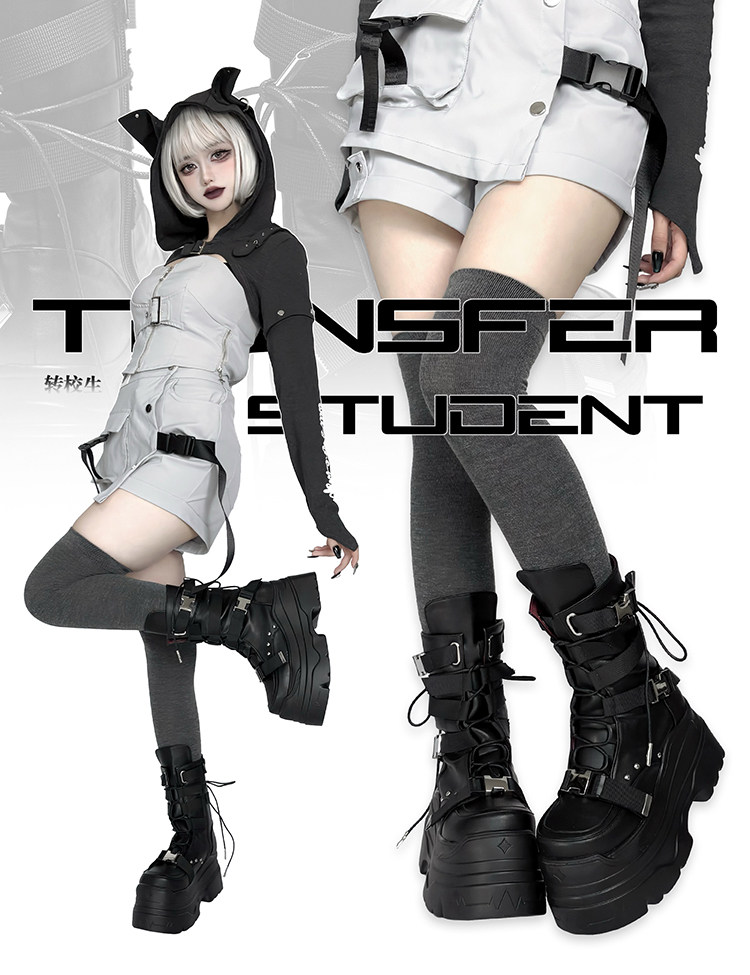 轉校生 賽博學院 原創亞文化厚底馬丁靴龐克風辣妹短靴機能風靴子