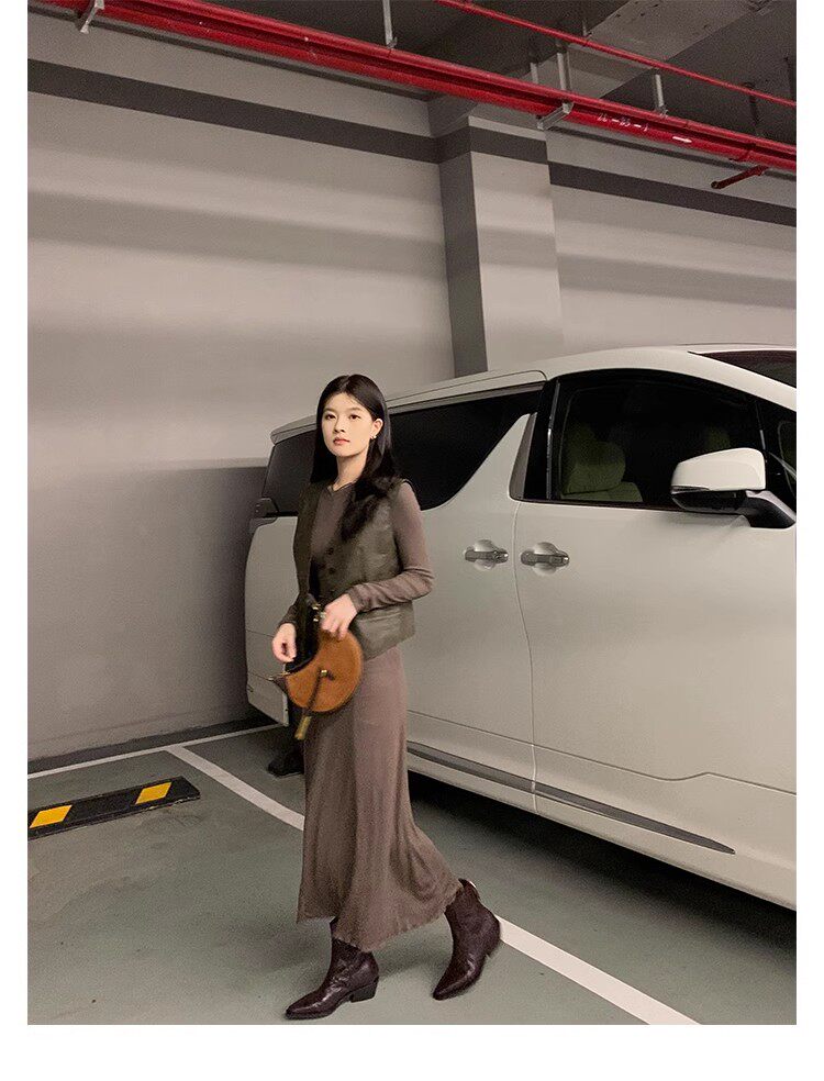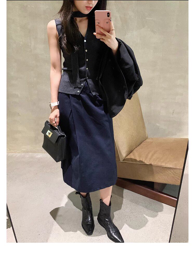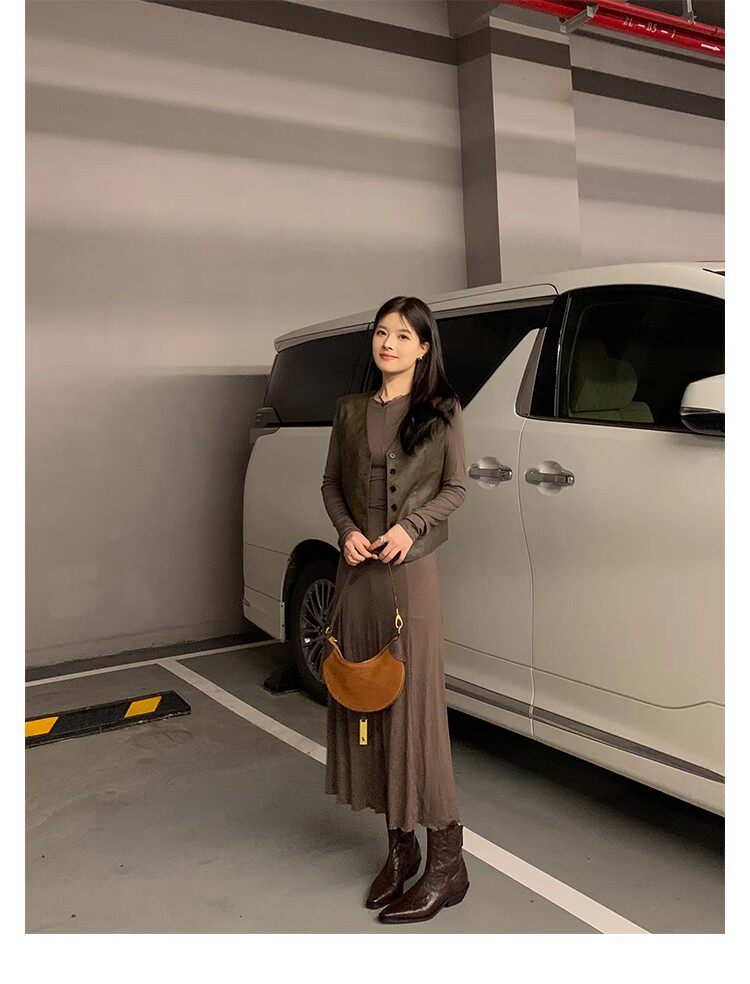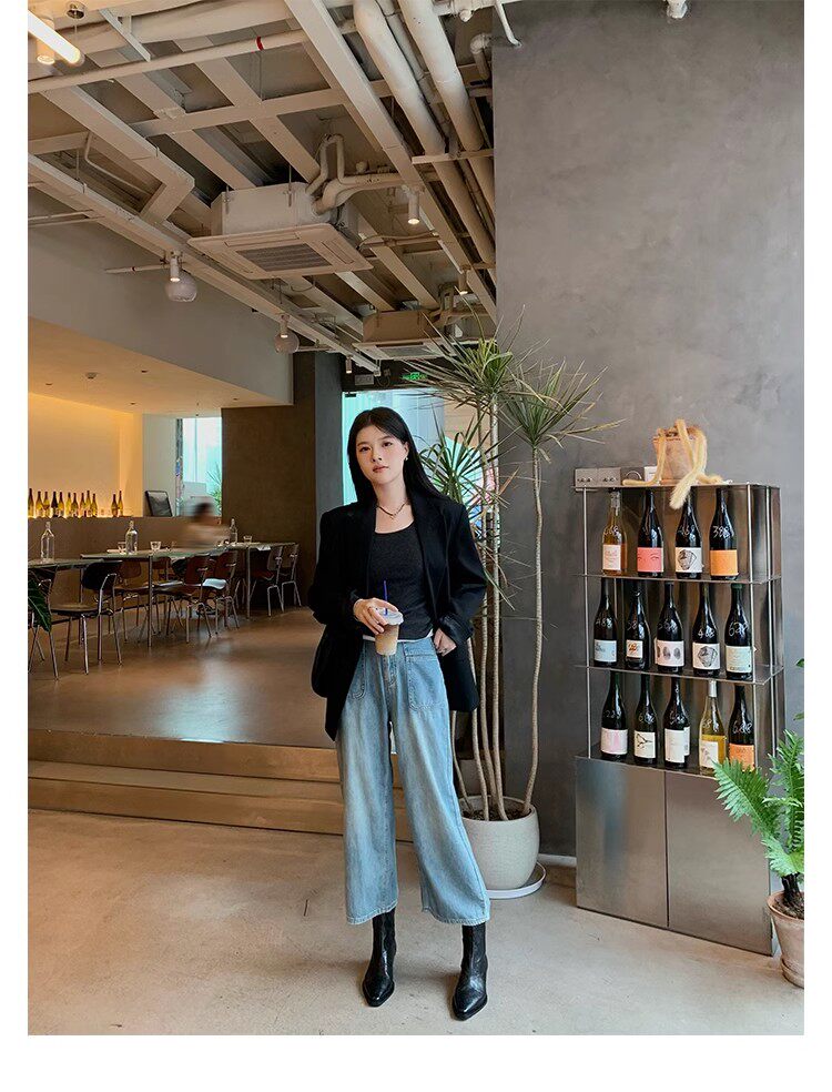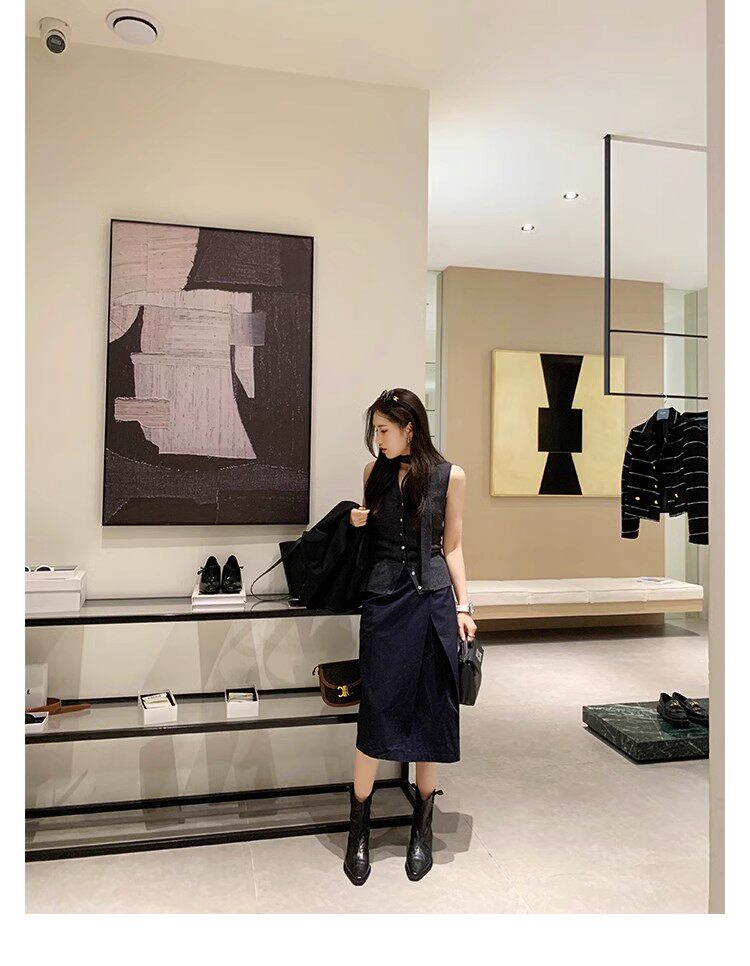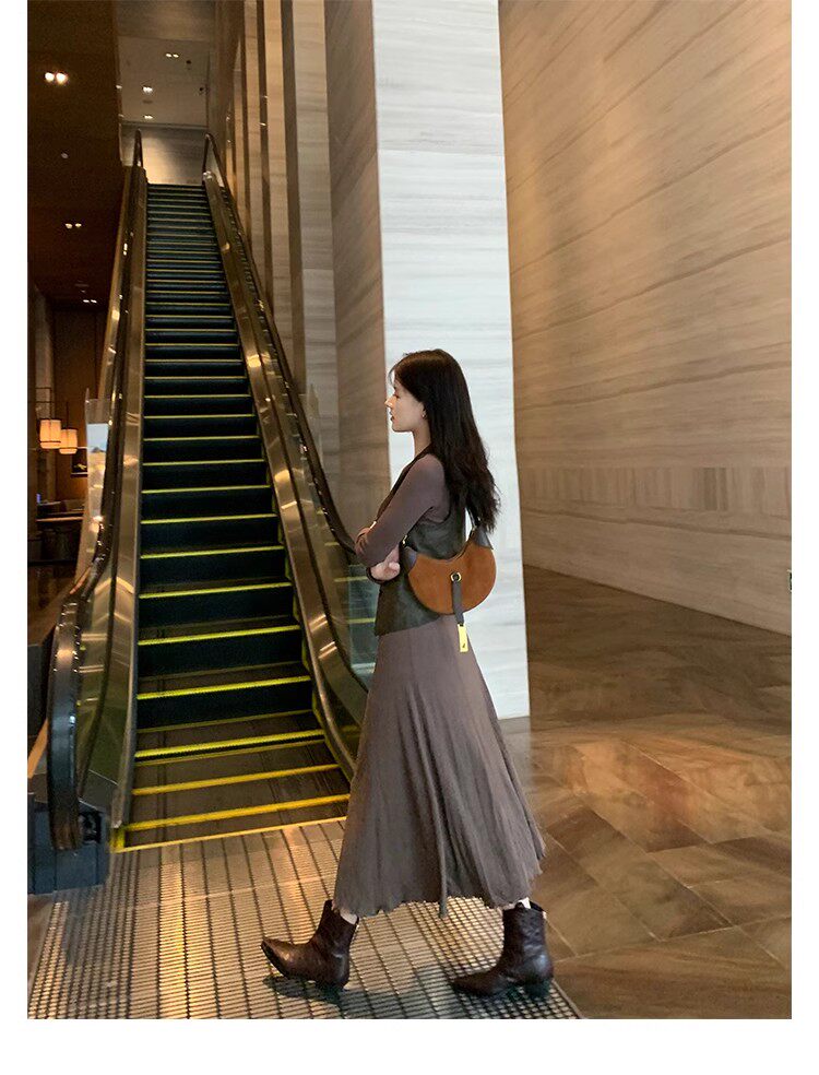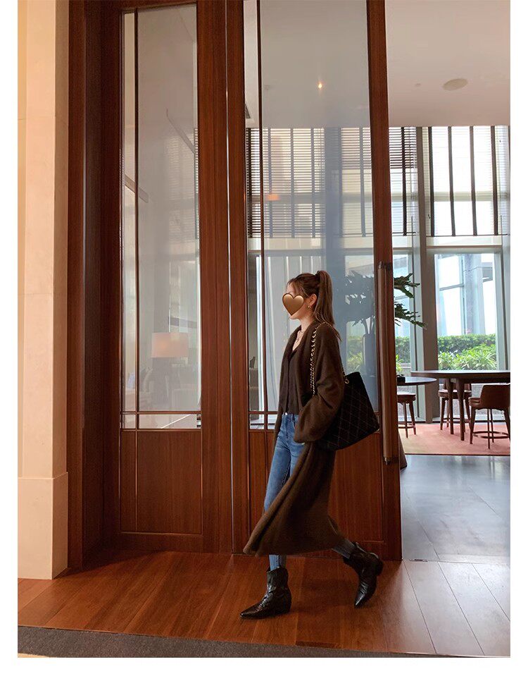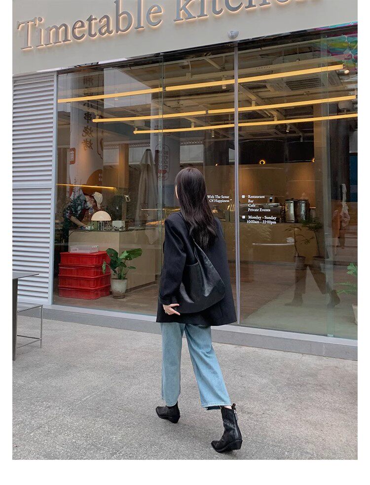 牛皮版~時髦尖頭V口顯瘦粗跟皺感西部短靴女真皮馬丁靴單靴小踝靴