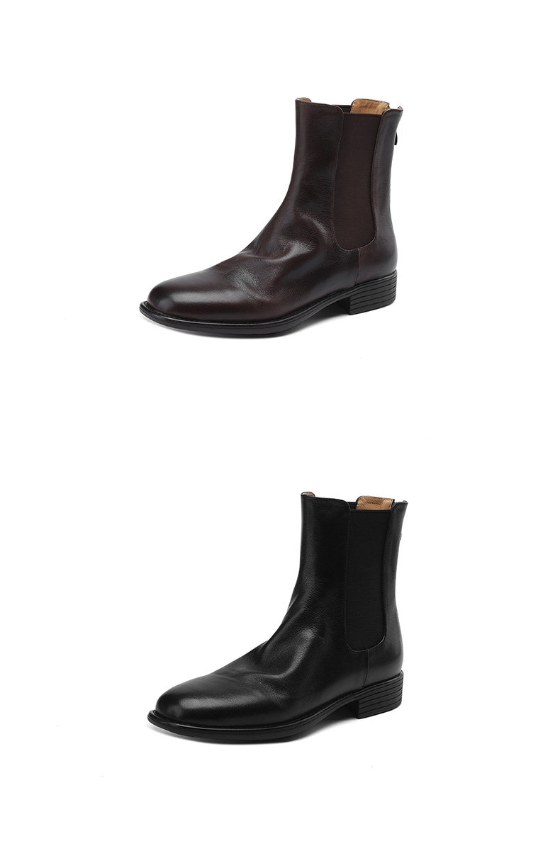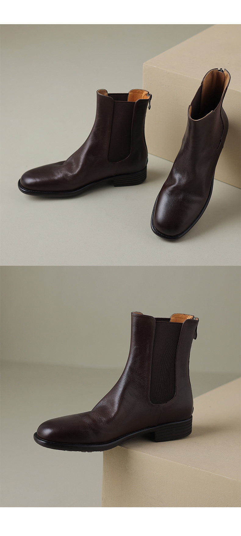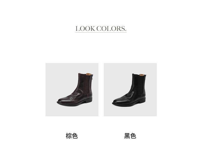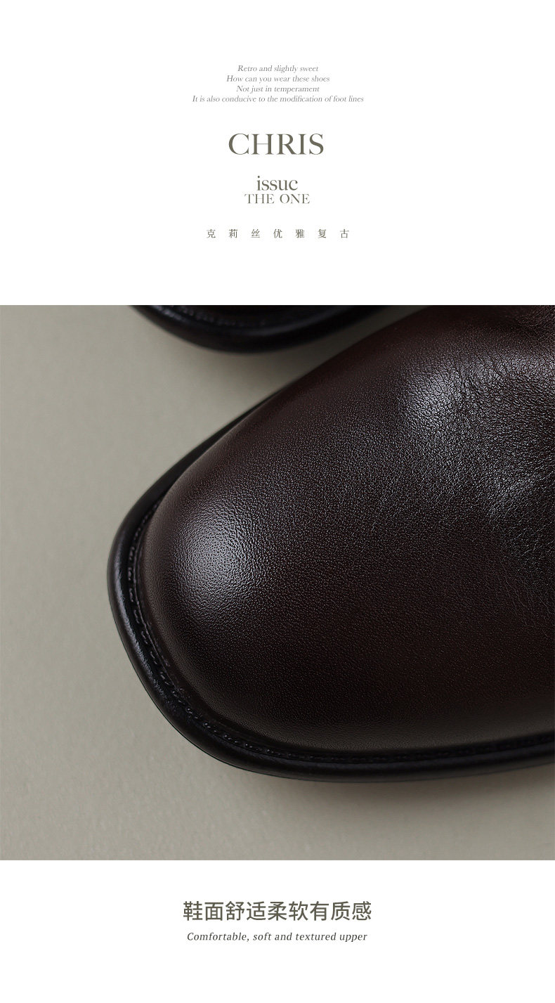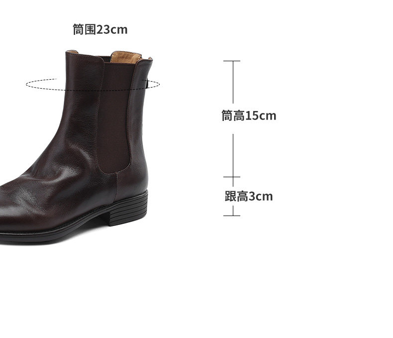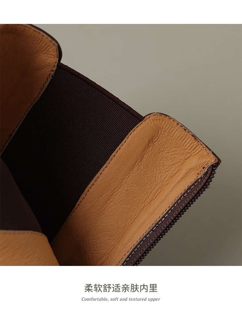 全牛皮圓頭切爾西靴女2024秋季新款粗跟短靴軟底加絨棉靴