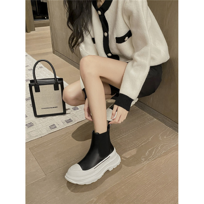 麥崑馬丁靴女切爾西短靴女2025年冬季新款真皮厚底短筒靴瘦瘦單靴
