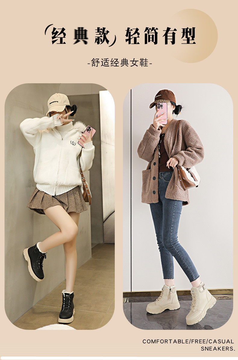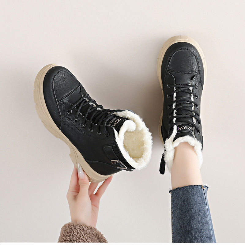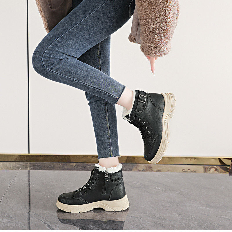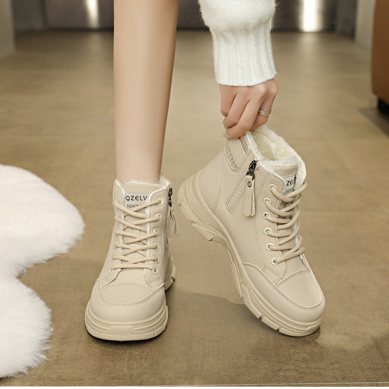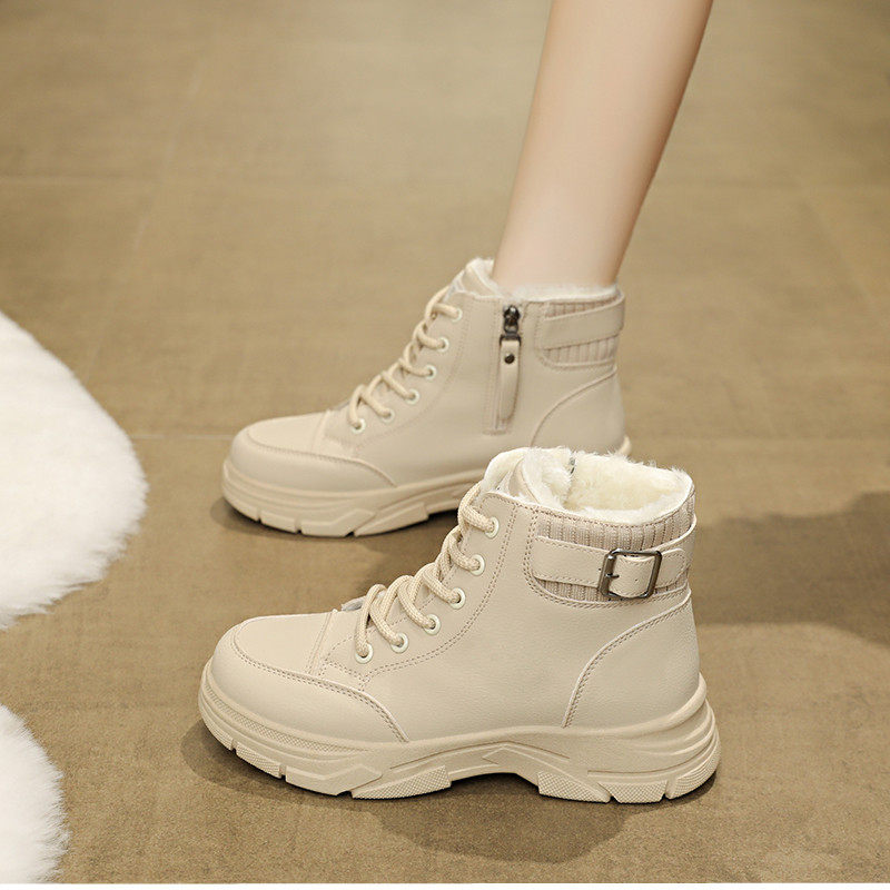 加絨保暖馬丁靴女2025新款冬季短靴輕便軟底防滑防水雪地靴大棉鞋