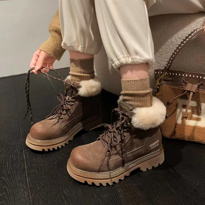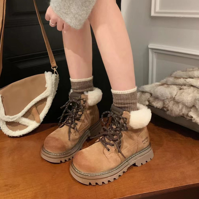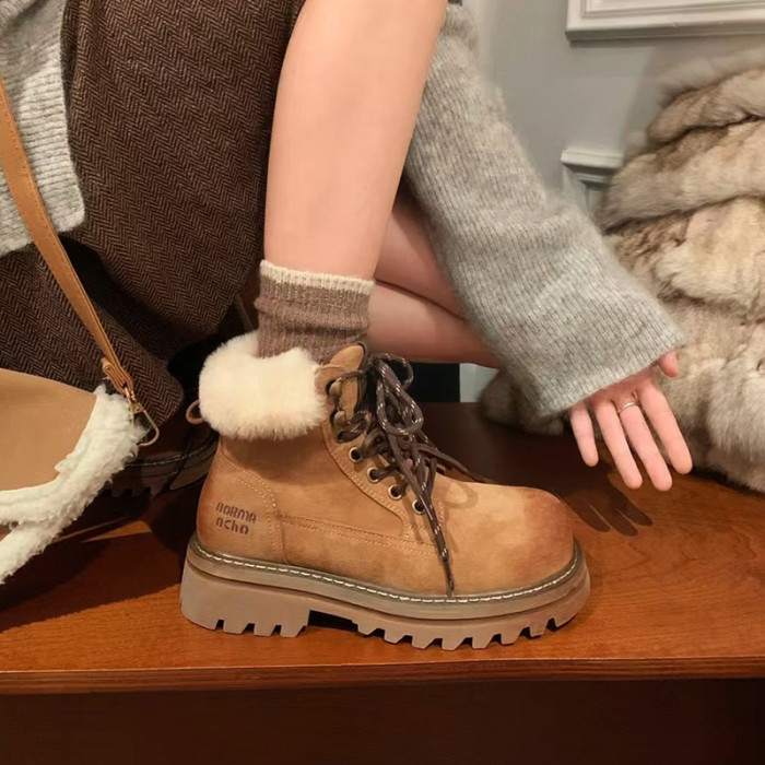 擦色復古腮紅馬丁靴女短靴2025冬季新款加絨厚底大黃靴戶外工裝靴